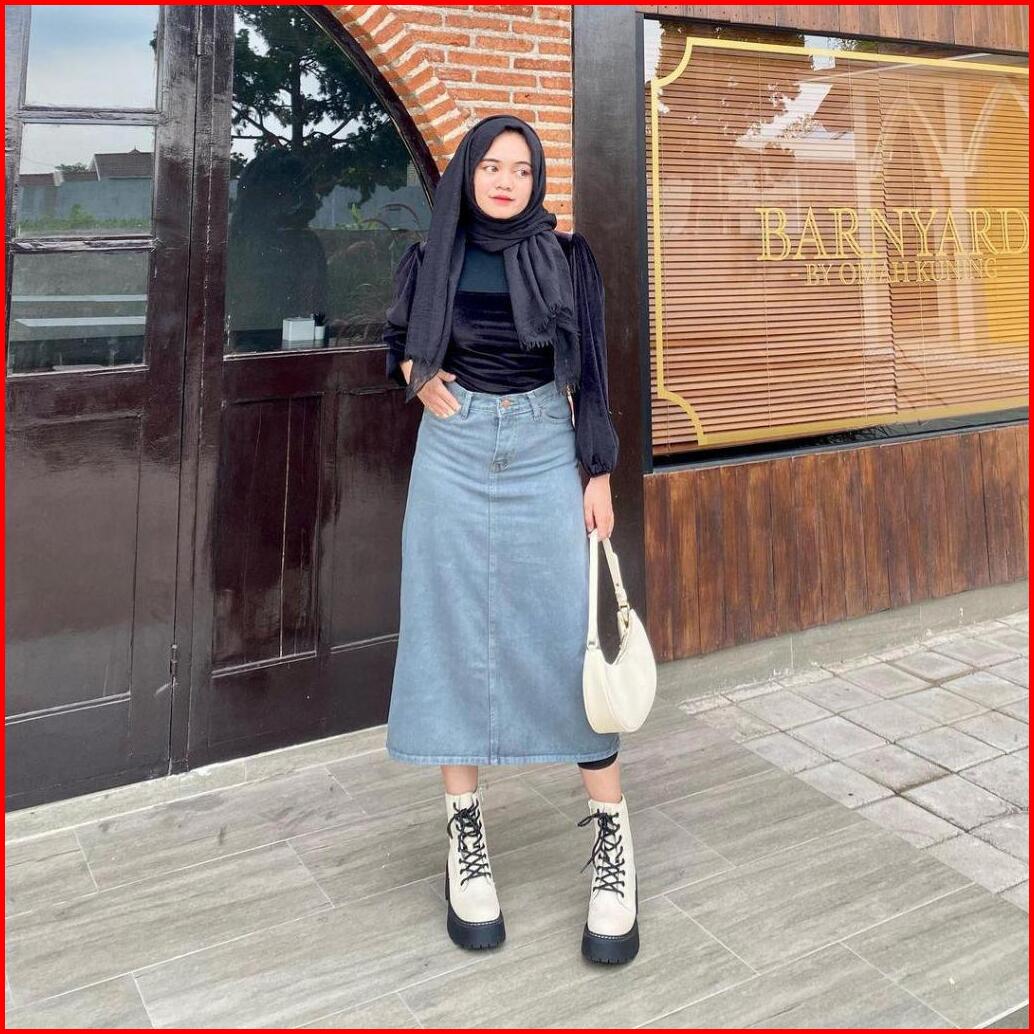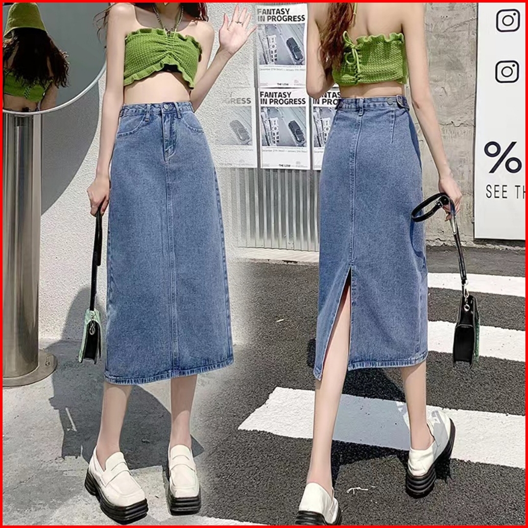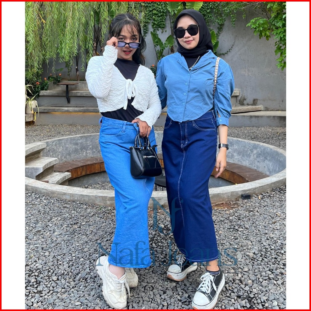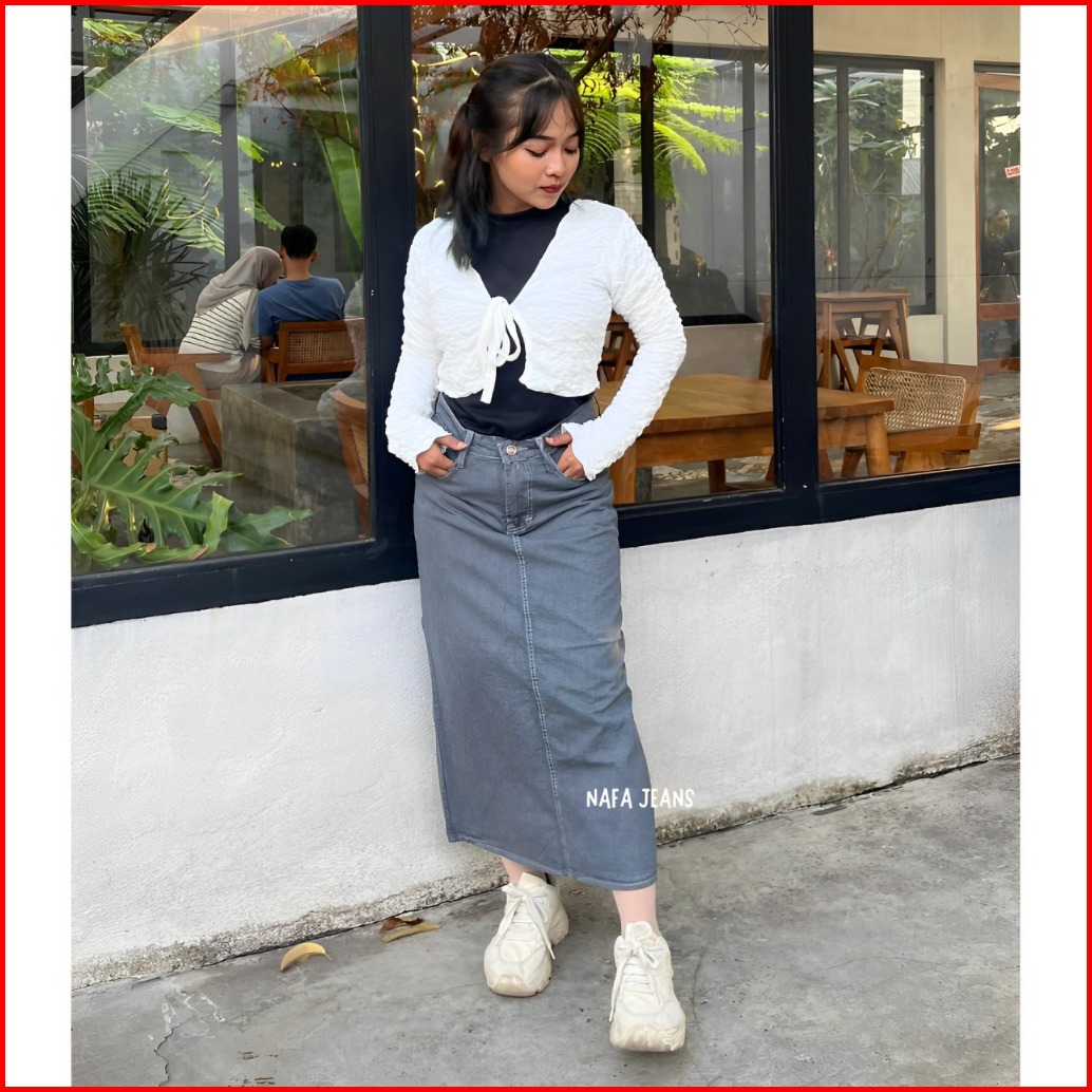 Rok Span Jeans- Rok Jeans Span Skirt- Rok Jeans Wanita Panjang Korean Style Rok Jeans