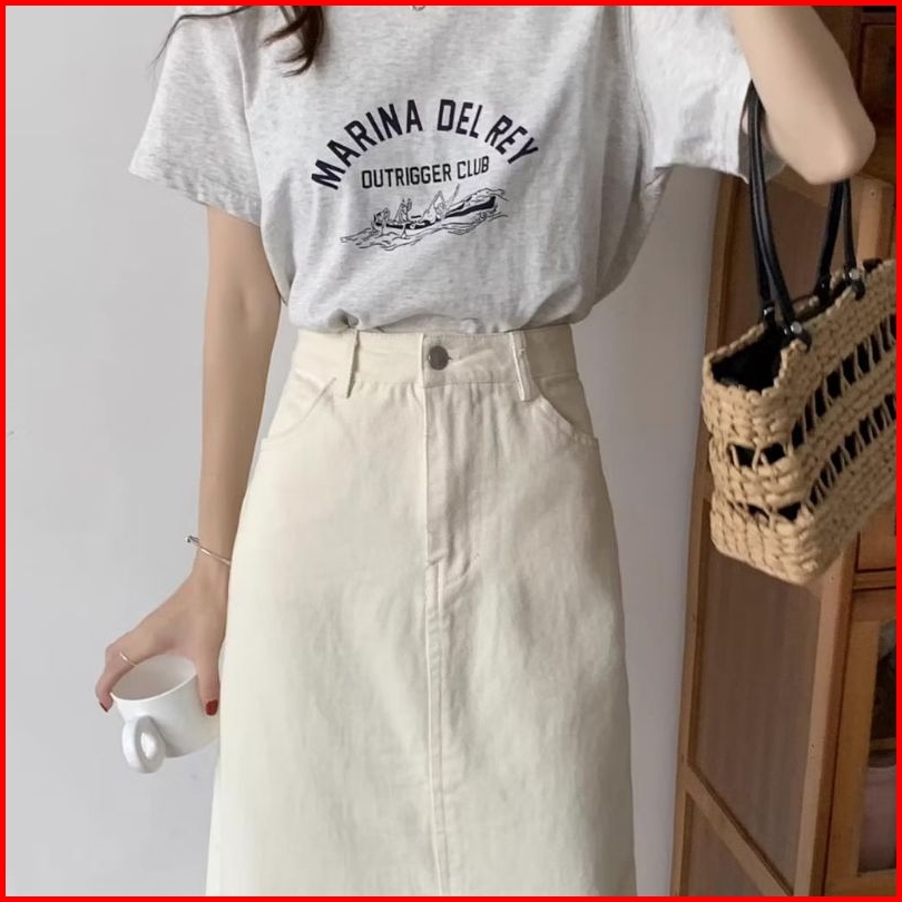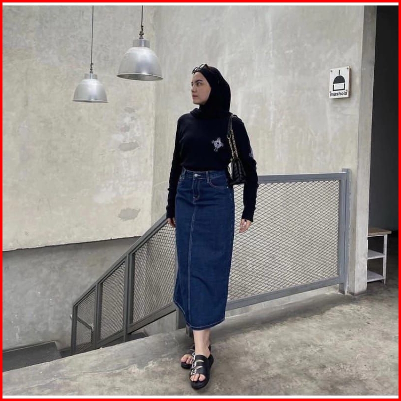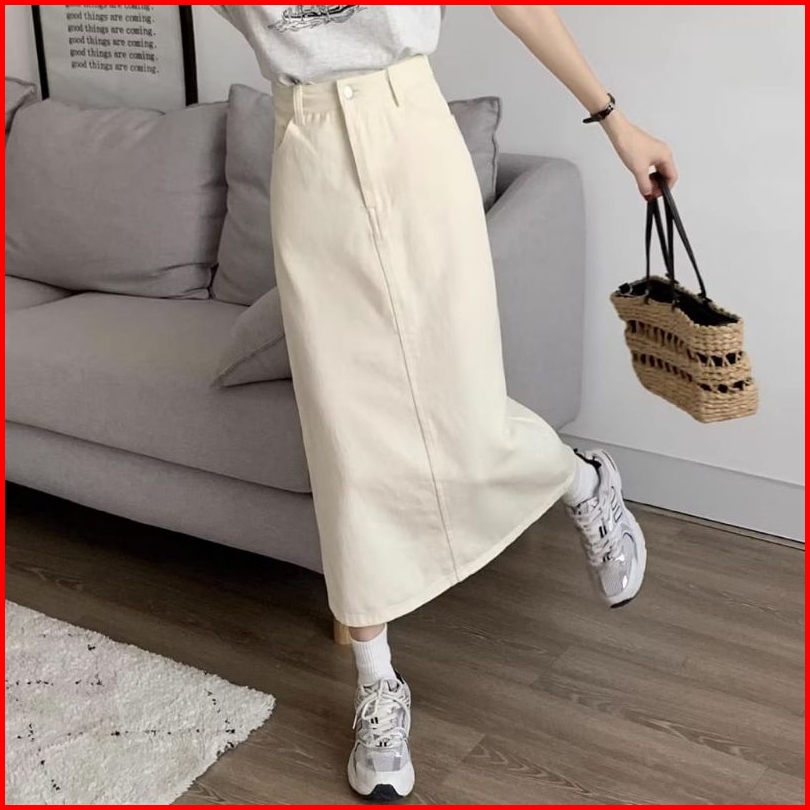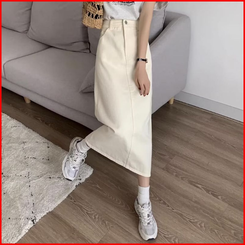 Rok Jeans Highwaist A-line Panjang 7 8 Cream Foll 2