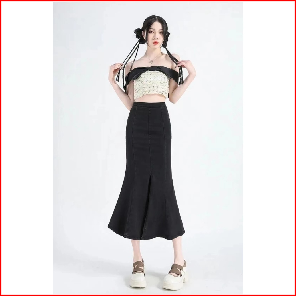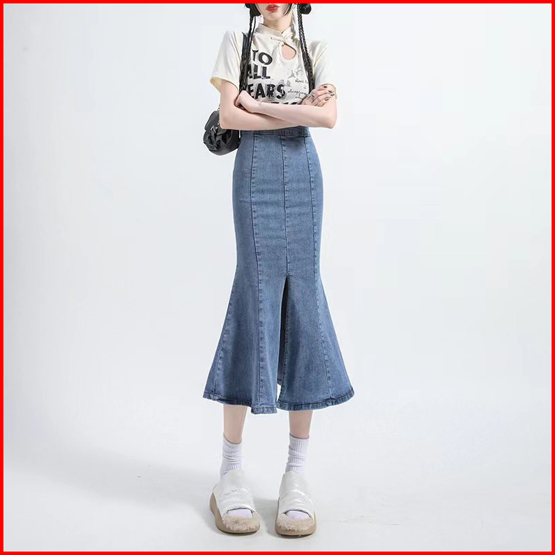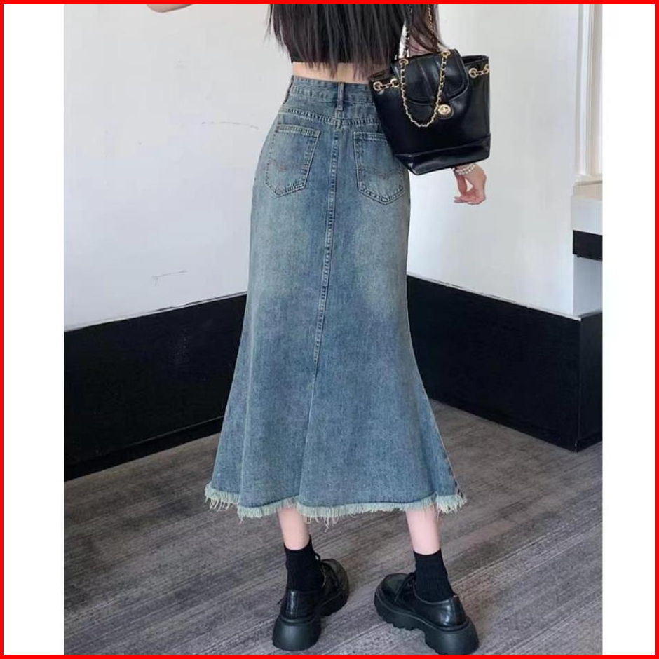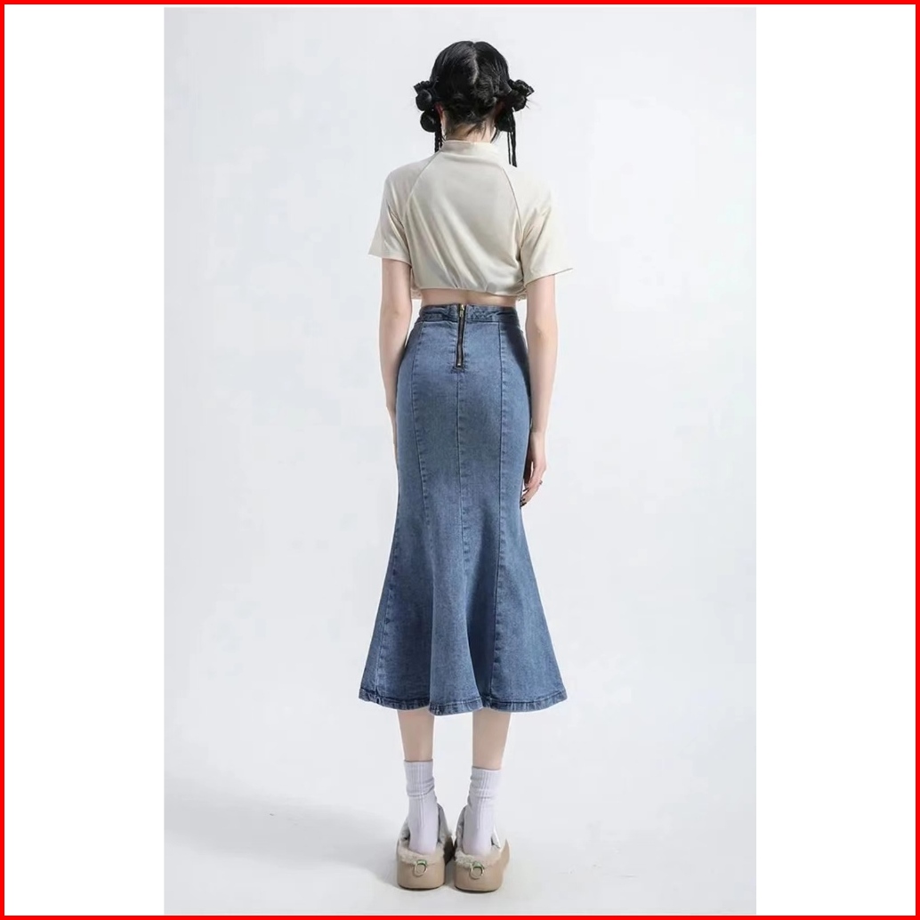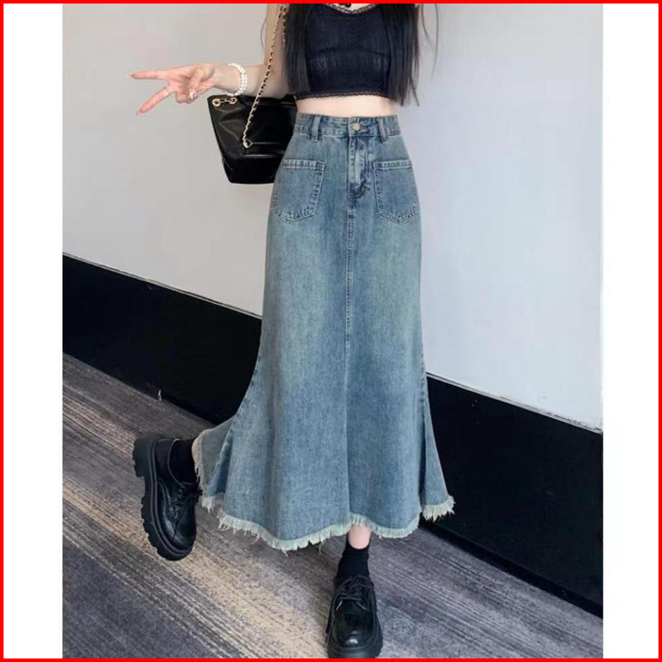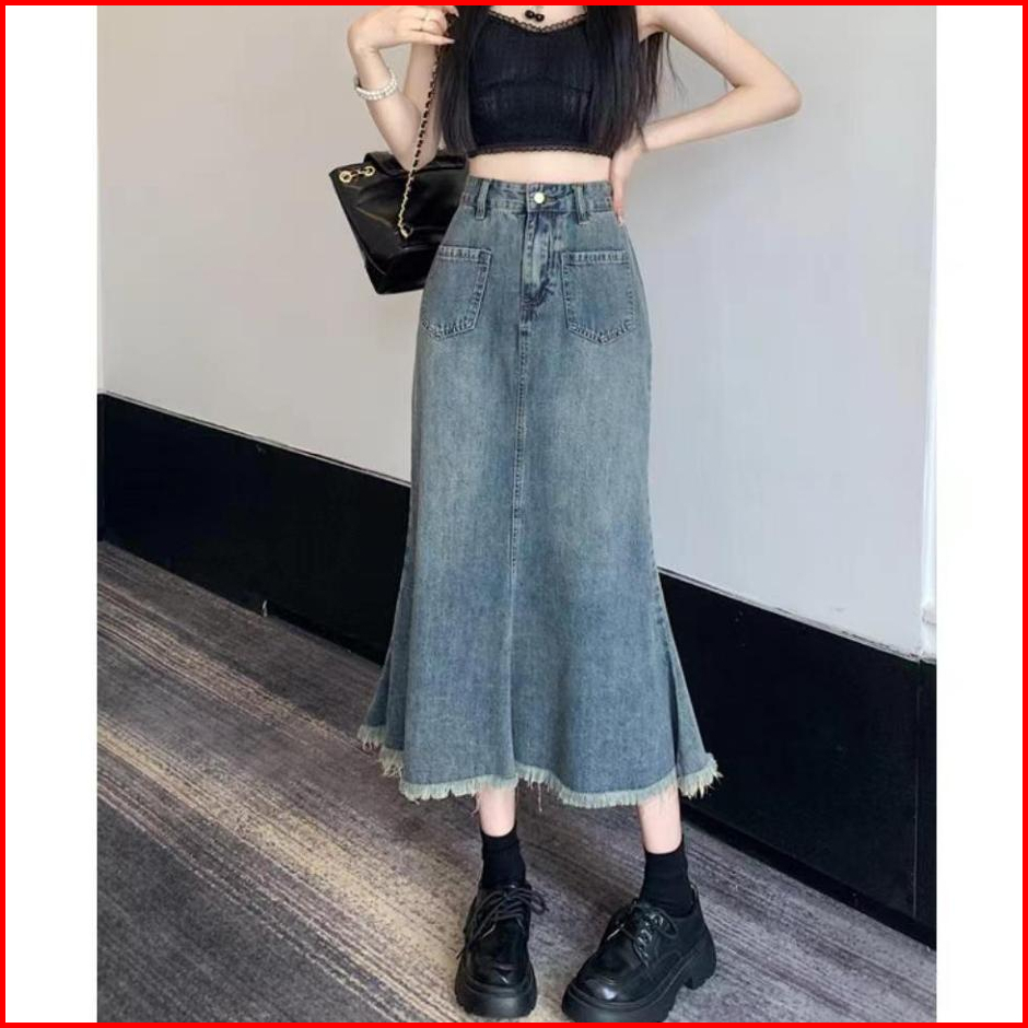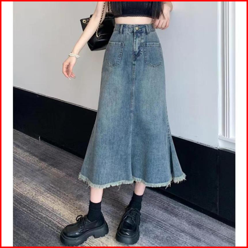 Boll.idbigsize Jumbo Rok Jeans Panjang Rok Korean Style Rok Jeans Wanita Highwaist Rok Dewasa Cewek Fishtail Rok Plisket
