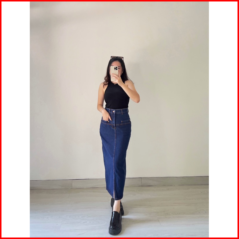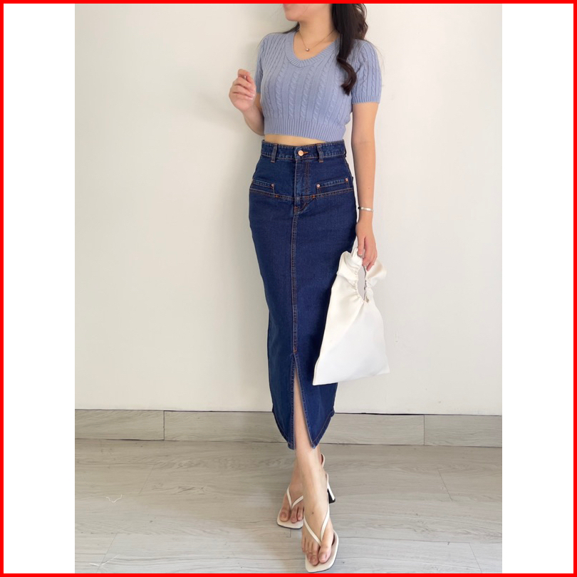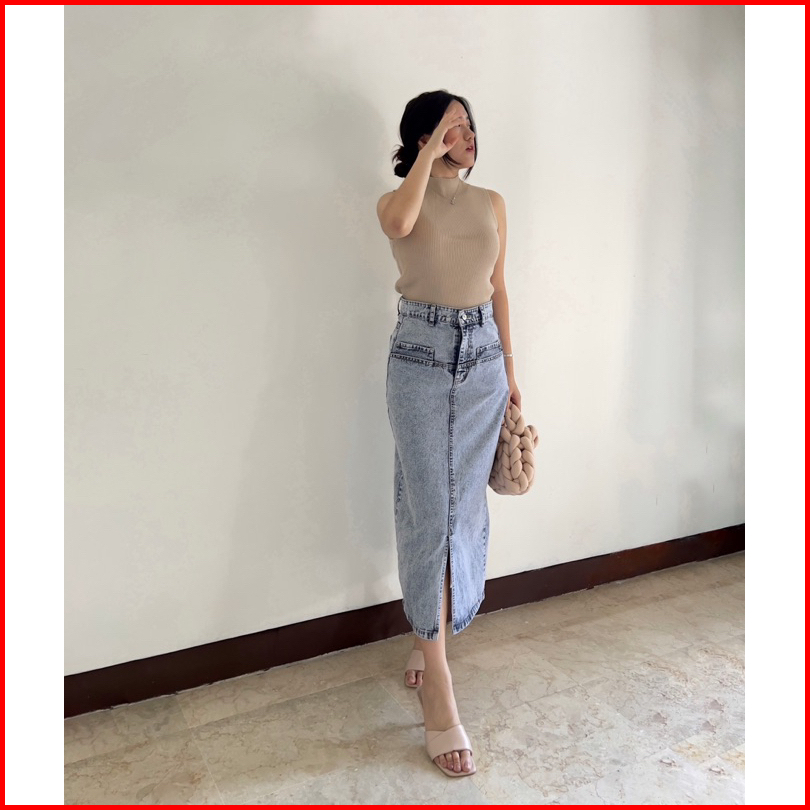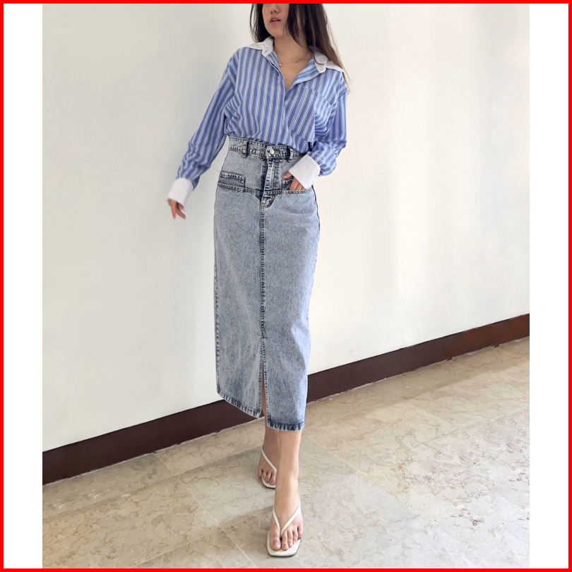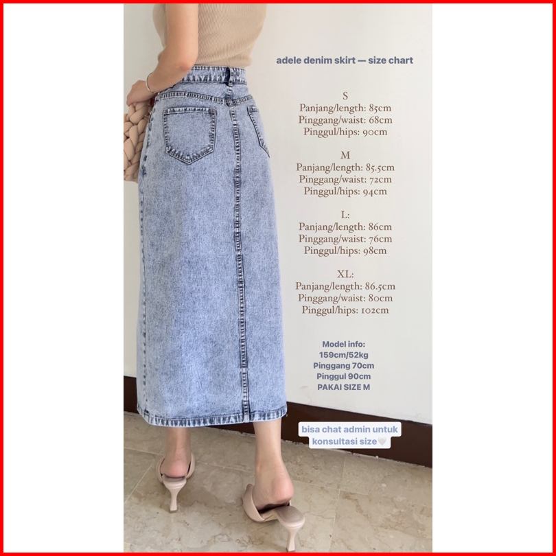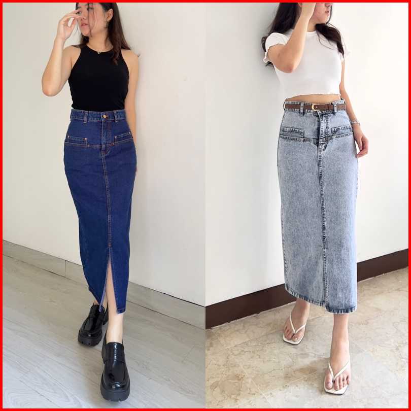 Klavee - Adele Denim Skirt Rok Jeans Maxi Wanita Korean Style Basic
