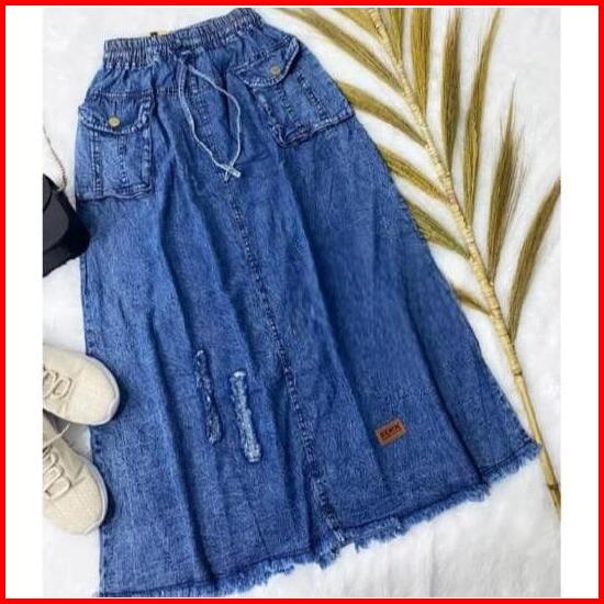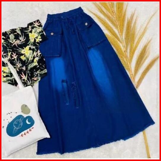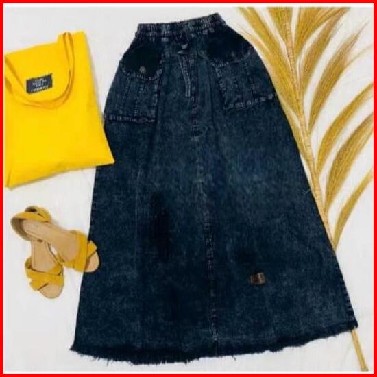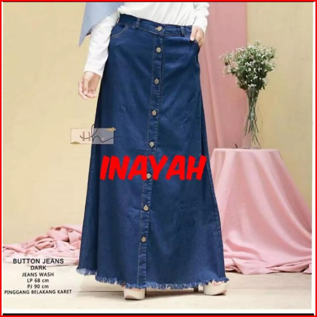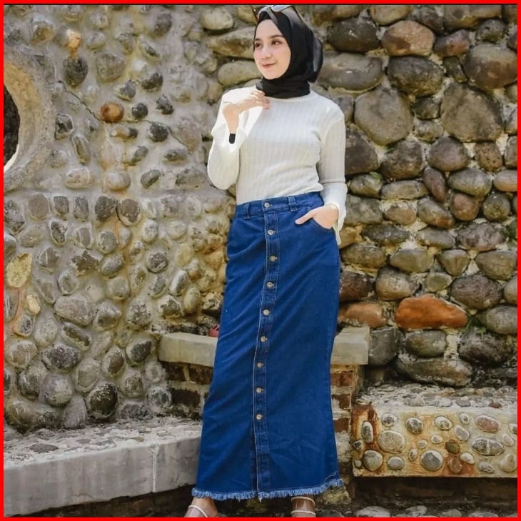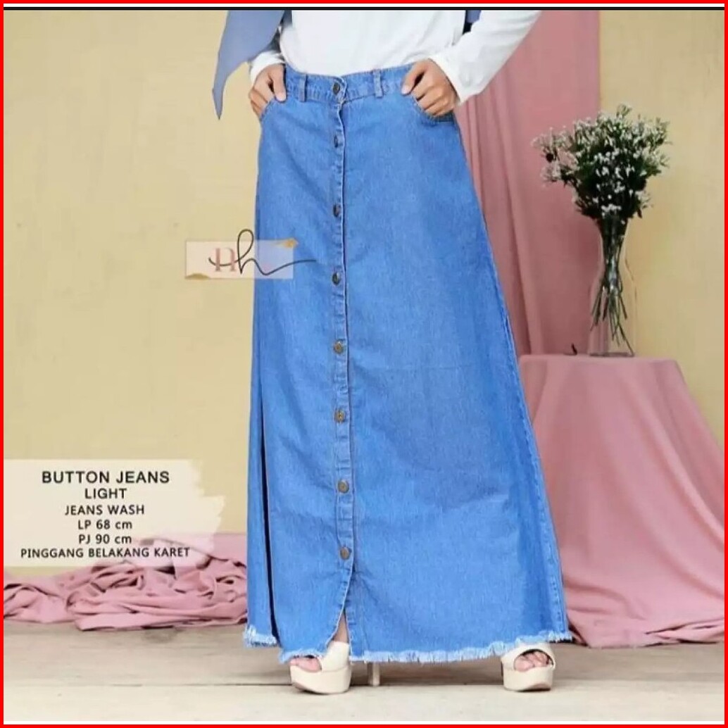 Rok Jeans Panjang Wanita Rok Button Up Terlaris 2024