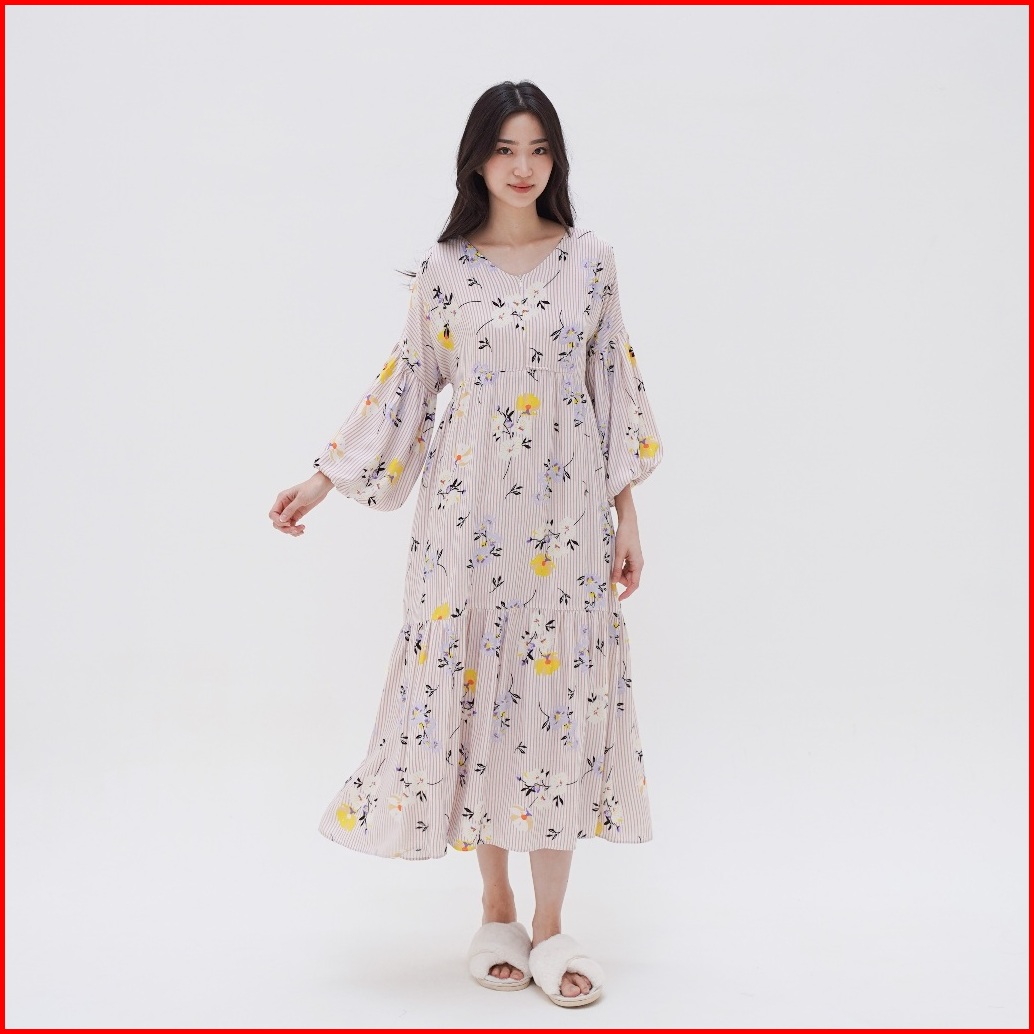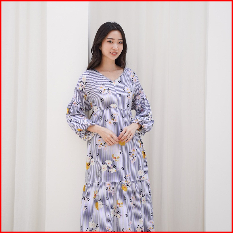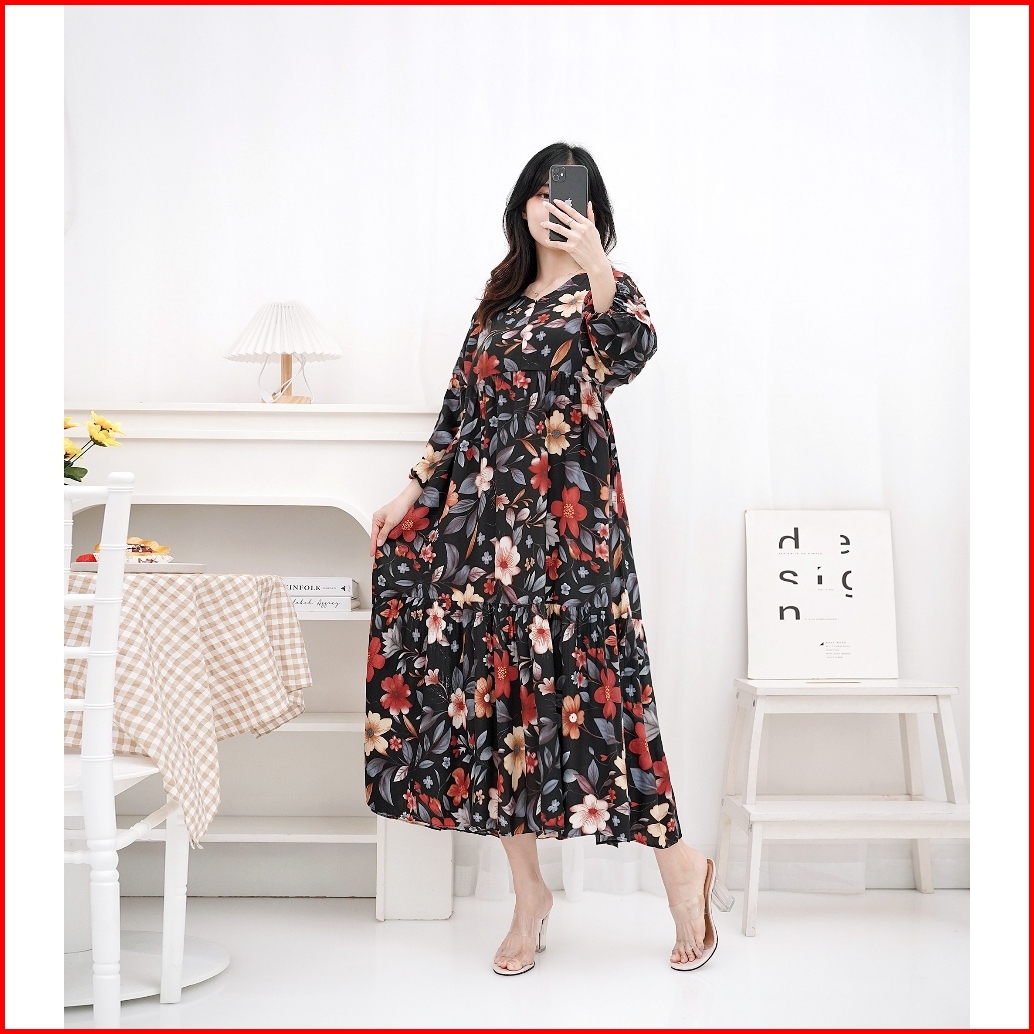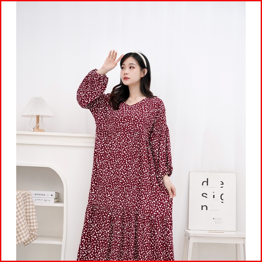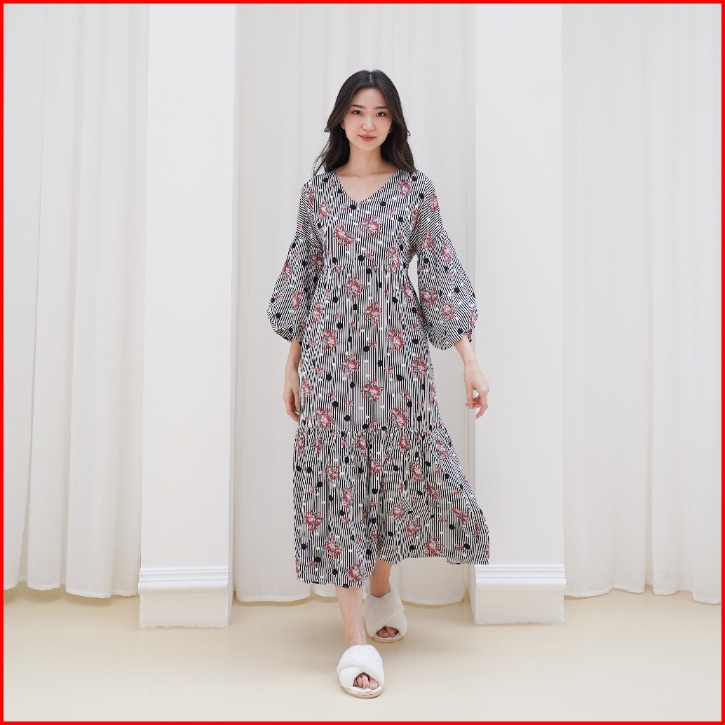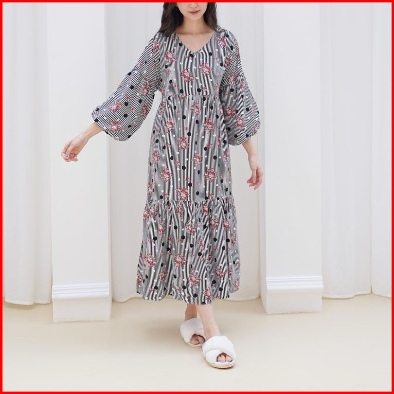 Aurae - Qirani Home Dress Rayon Motif Babydoll Daster Wanita Lengan Panjang