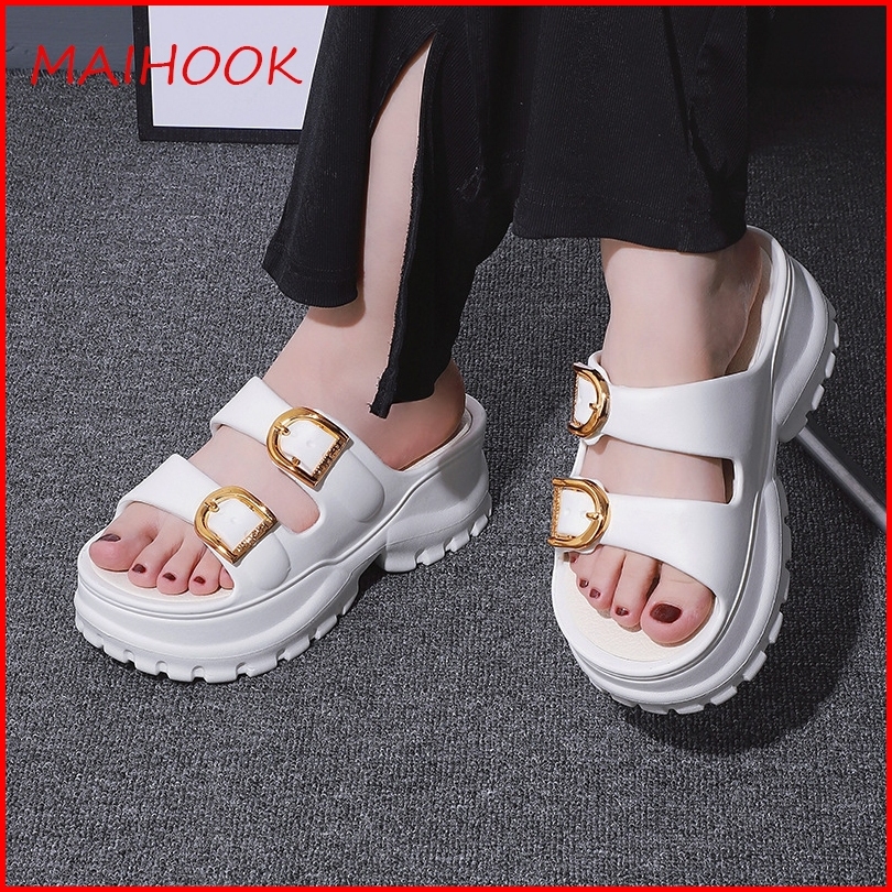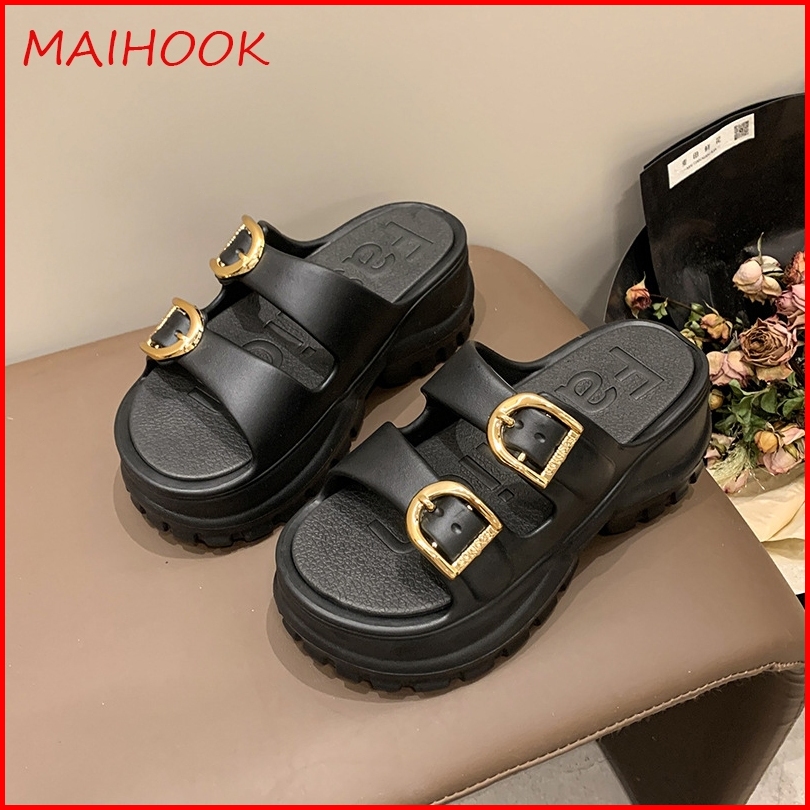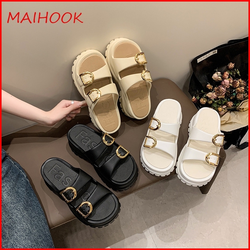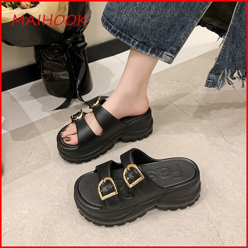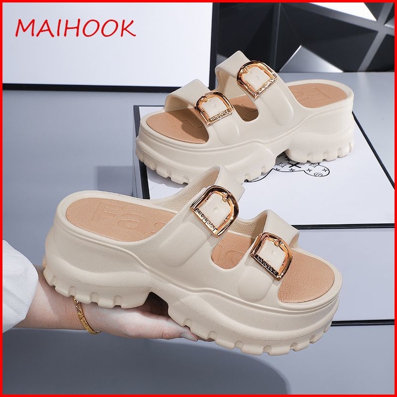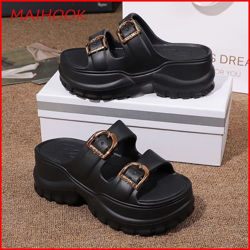 Maihook Sandal Wanita Kekinian Tinggi Sandal Fuji Wanita Wedges Korea Strap Dua Sandal Jelly Wanita Eva Rubber Ringan No