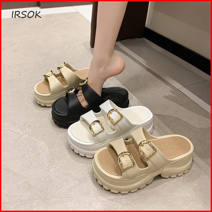 Irsok Sandal Wanita Wedges Tinggi Ringan Empuk Kokoh Lentur Gasper Sandal Kekinian Korean Eva Anti Slip Ringan