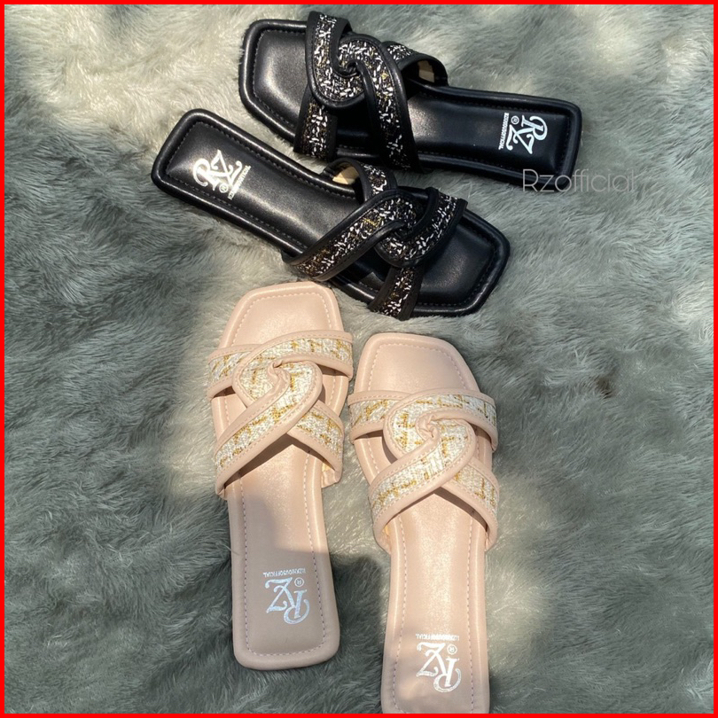 Sandal Teplek Wanita Terbaru Motif Kain Lucu Bahan Sintetis Di Lapisi Full Busa Empuk Model Trandy Kekinian Sendal Cewe