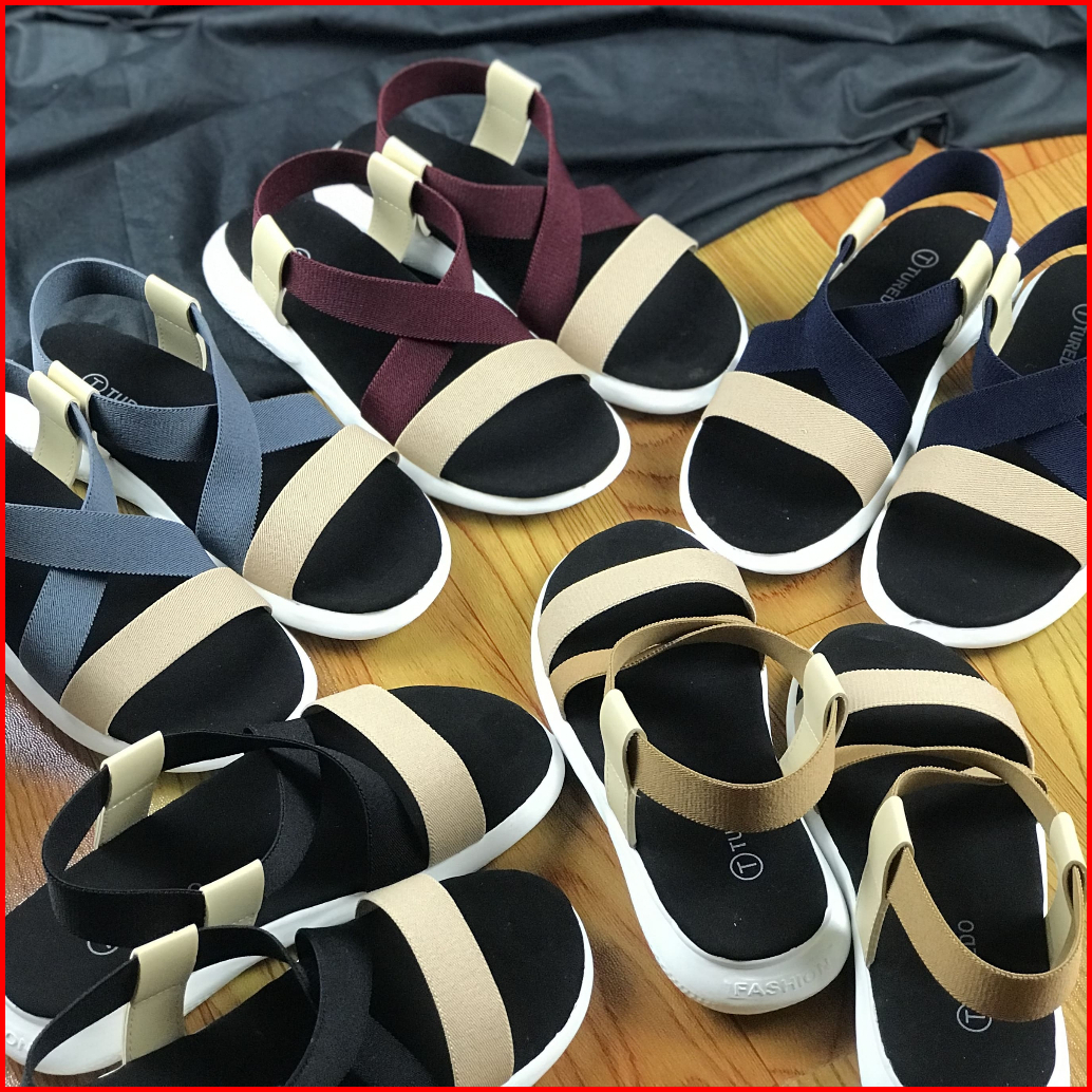 Yellow Jafna - Sandal Wanita Tali Silang Karet Elastis Anti Slip - Nyaman Dipakai Harian