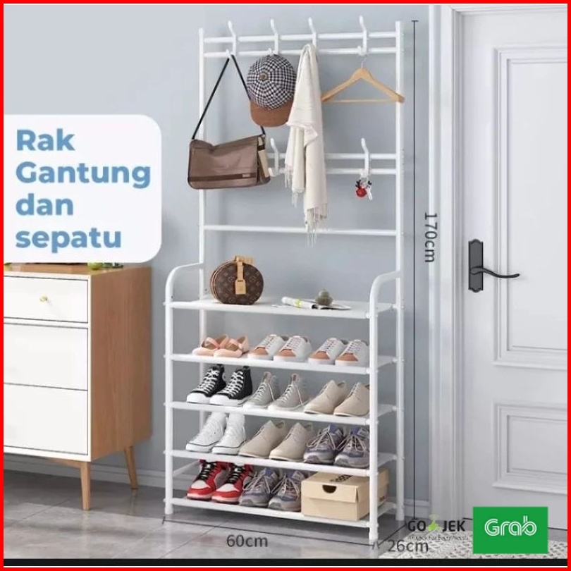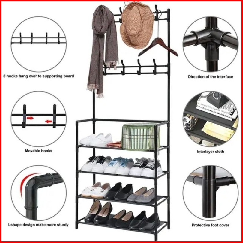 Stand Hanger Rak Sepatu Penyimpanan Tempat Topi Serbaguna Rak Gantung Baju Tas