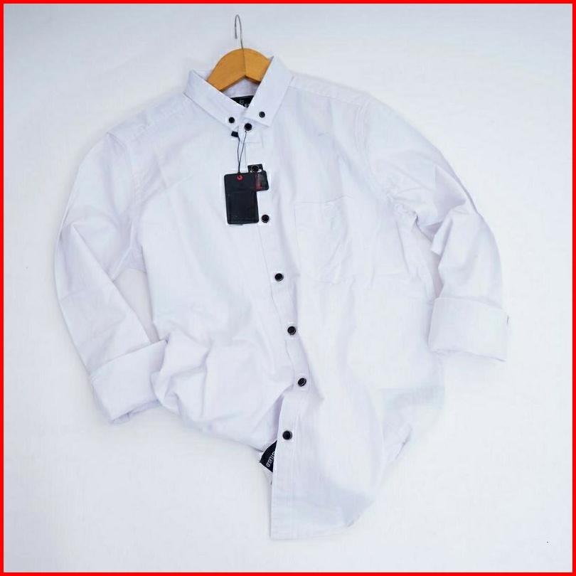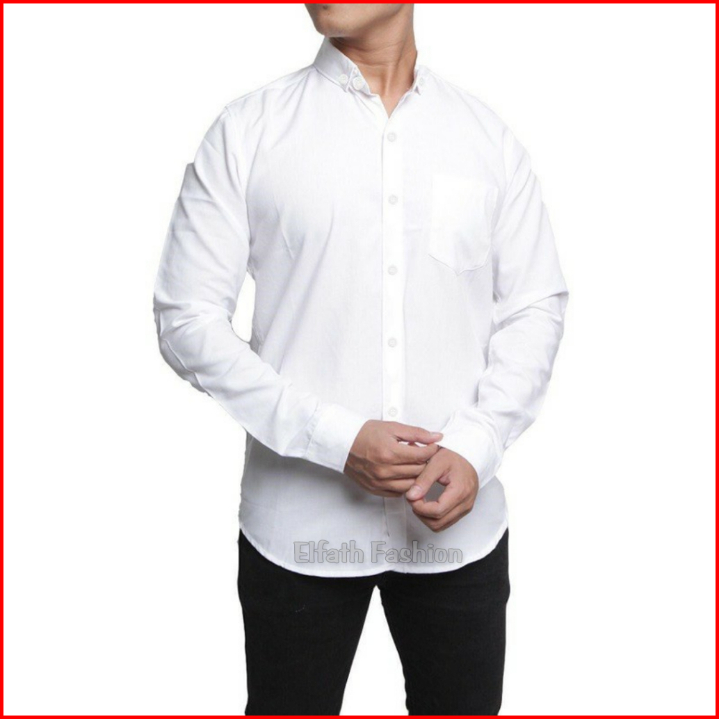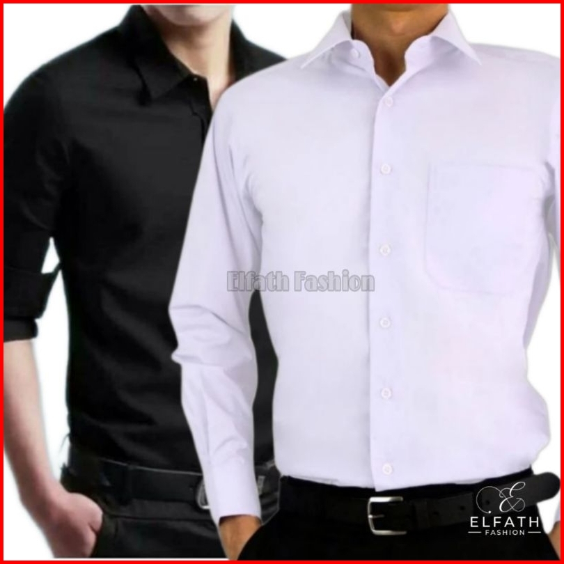 Kemeja Cowok Polos Lengan Panjang Slimfit Hem Pria Kantor Hitam Navy Putih
