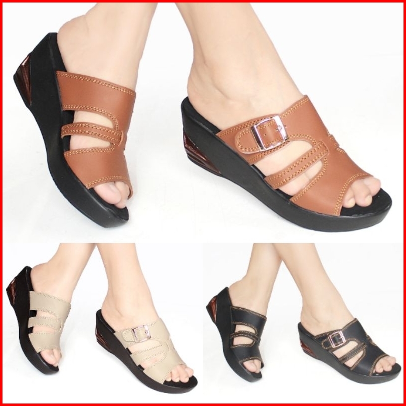 Sandal Wanita Wedges Selop Slop Tinggi Hak Heels Kondangan Kekinian Terbaru Terlaris Karet Ws01
