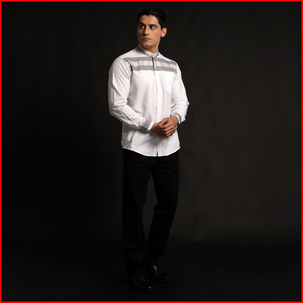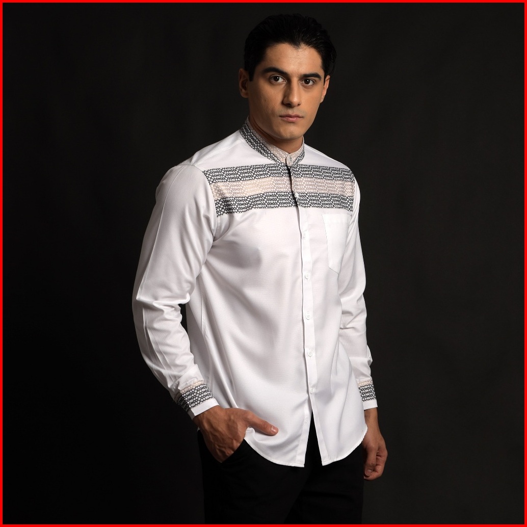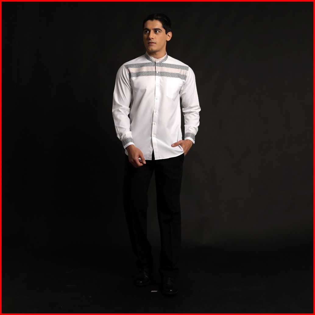 Casella Baju Koko Pria Lengan Panjang Horizontal Design Koko Lengan Panjang Hadid 9905 White
