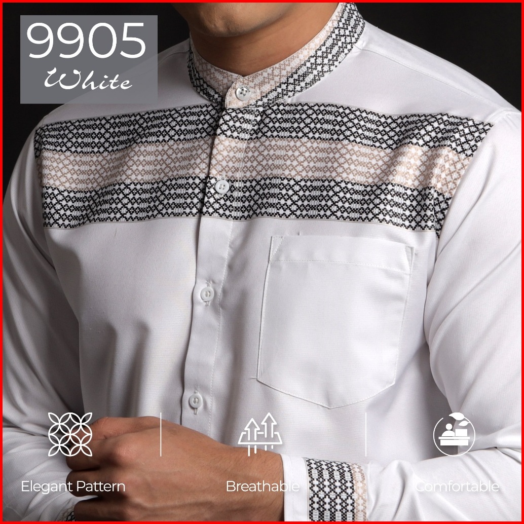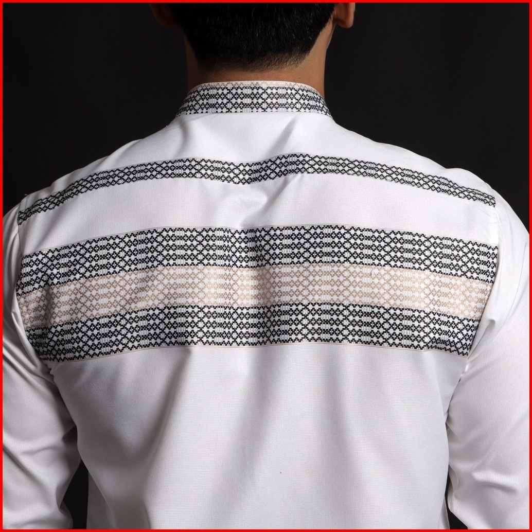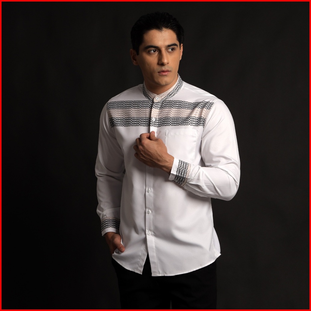 Casella Baju Koko Pria Lengan Panjang Horizontal Design Koko Lengan Panjang Hadid 9905 White