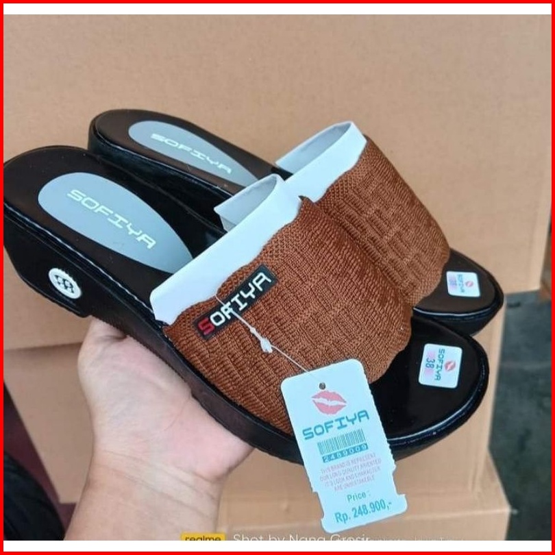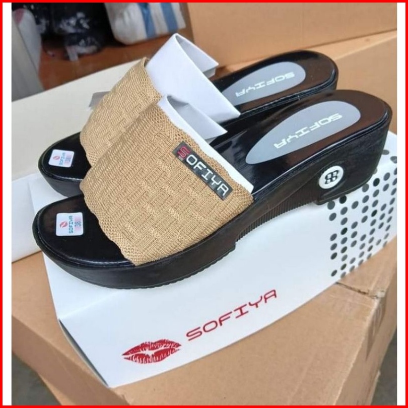 Sandal Sofiya Wedges Wanita Rajut Kekinian 5cm Free Box Sofiya