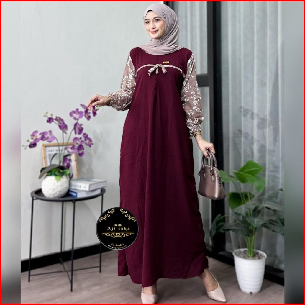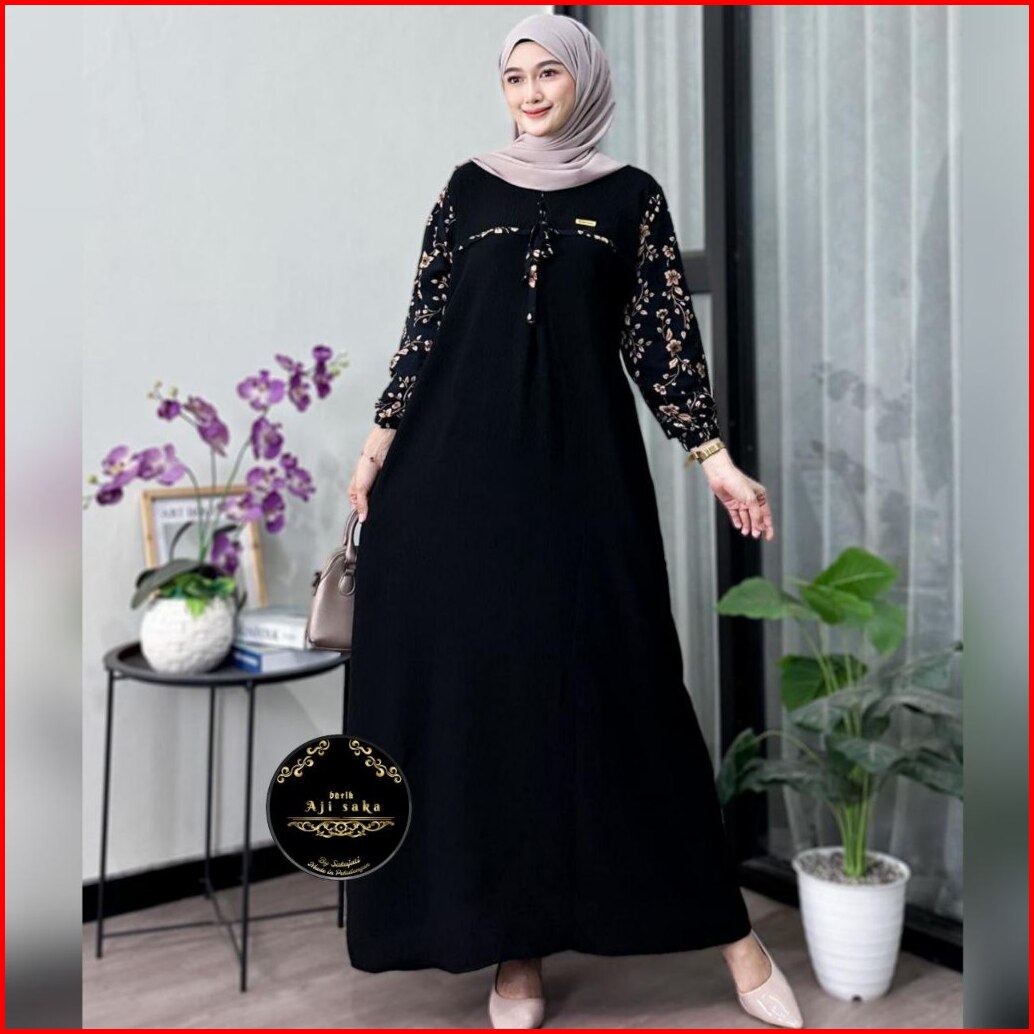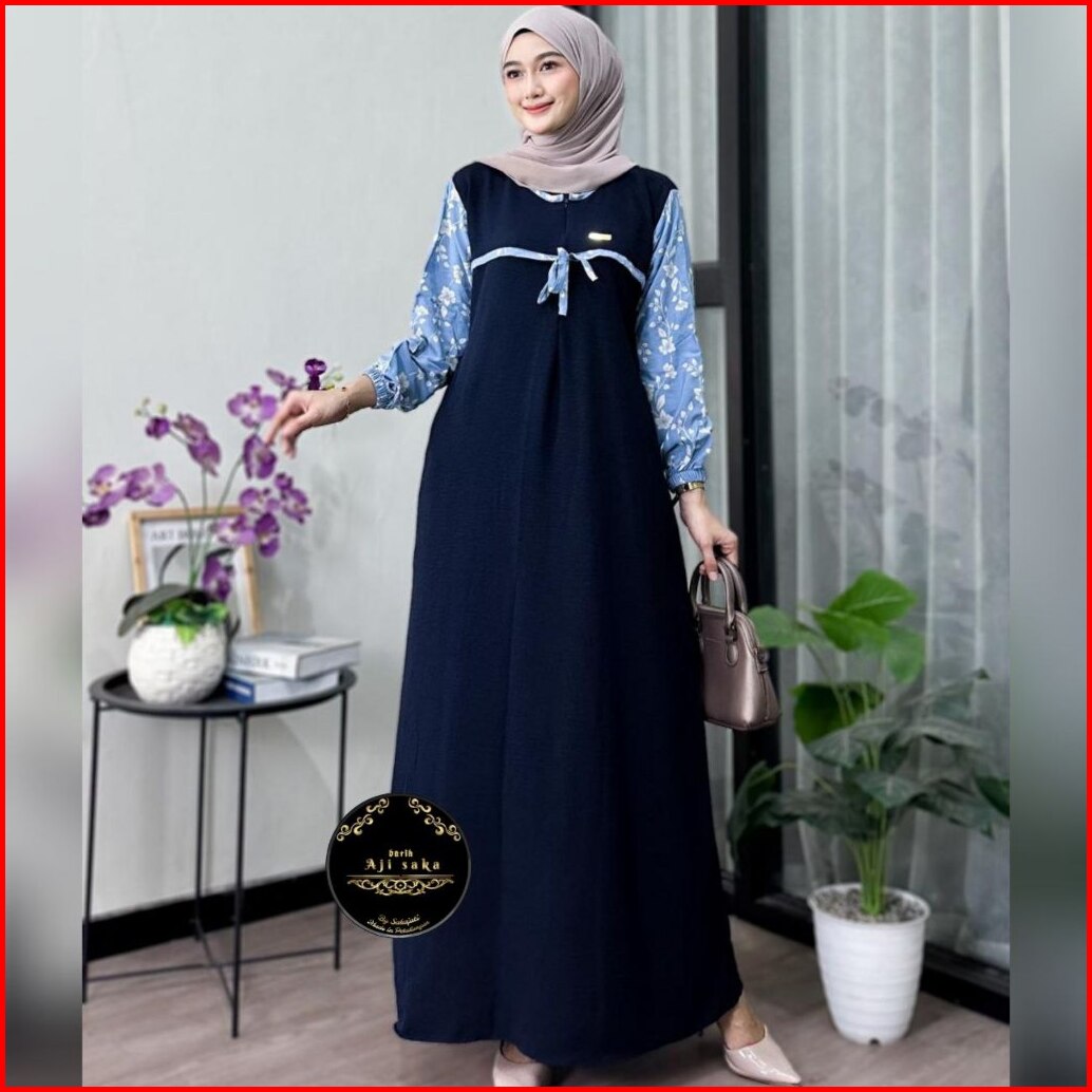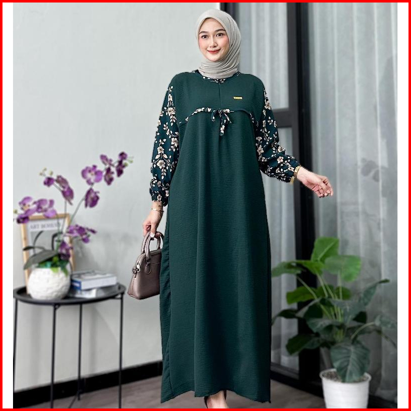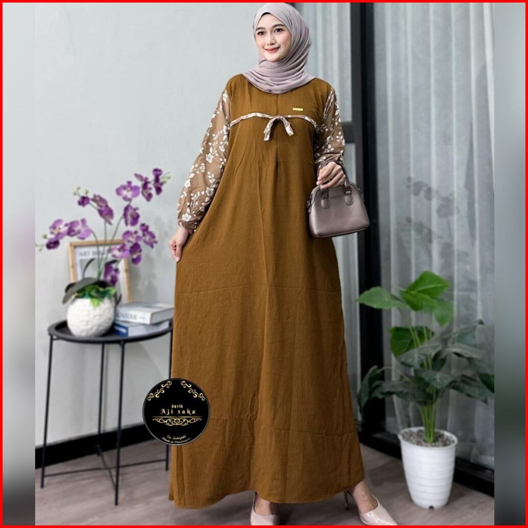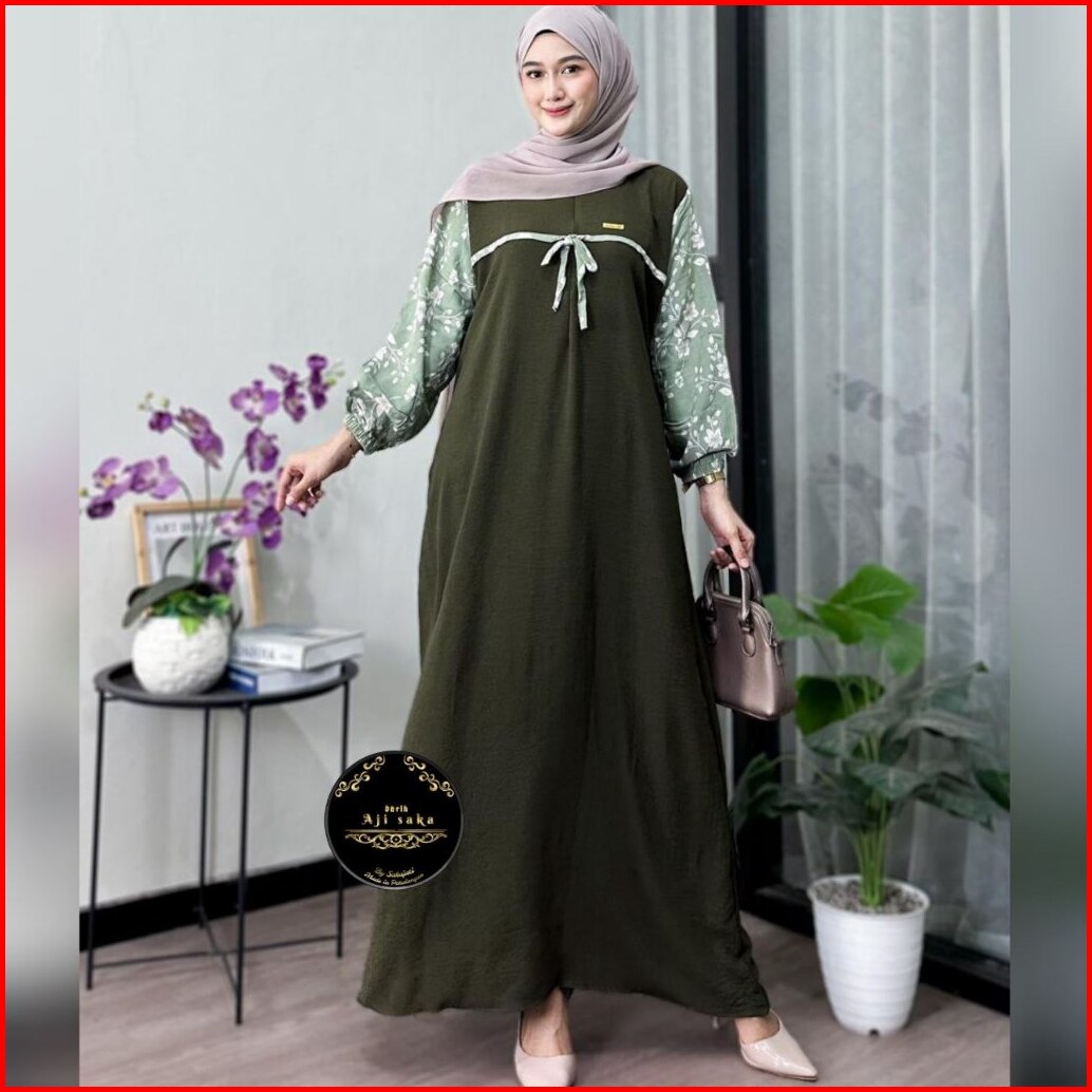 Dress Gamis Arafah Cringkle Airflow Kombinasi Rayon Super Adem Halus Tebal Nyaman Ld 120 Pb 130 Resleting Depan Busui Fr