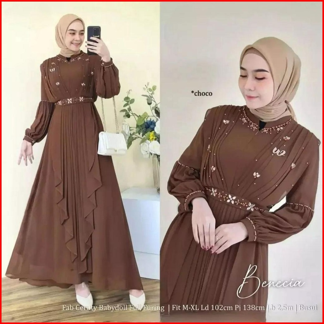 Payet Benecia Dewasa Dress Muslimah Wanita Matt Ceruty Babydoll Full Puring Gamis Wanita Aksen Payet Mewah Ssf