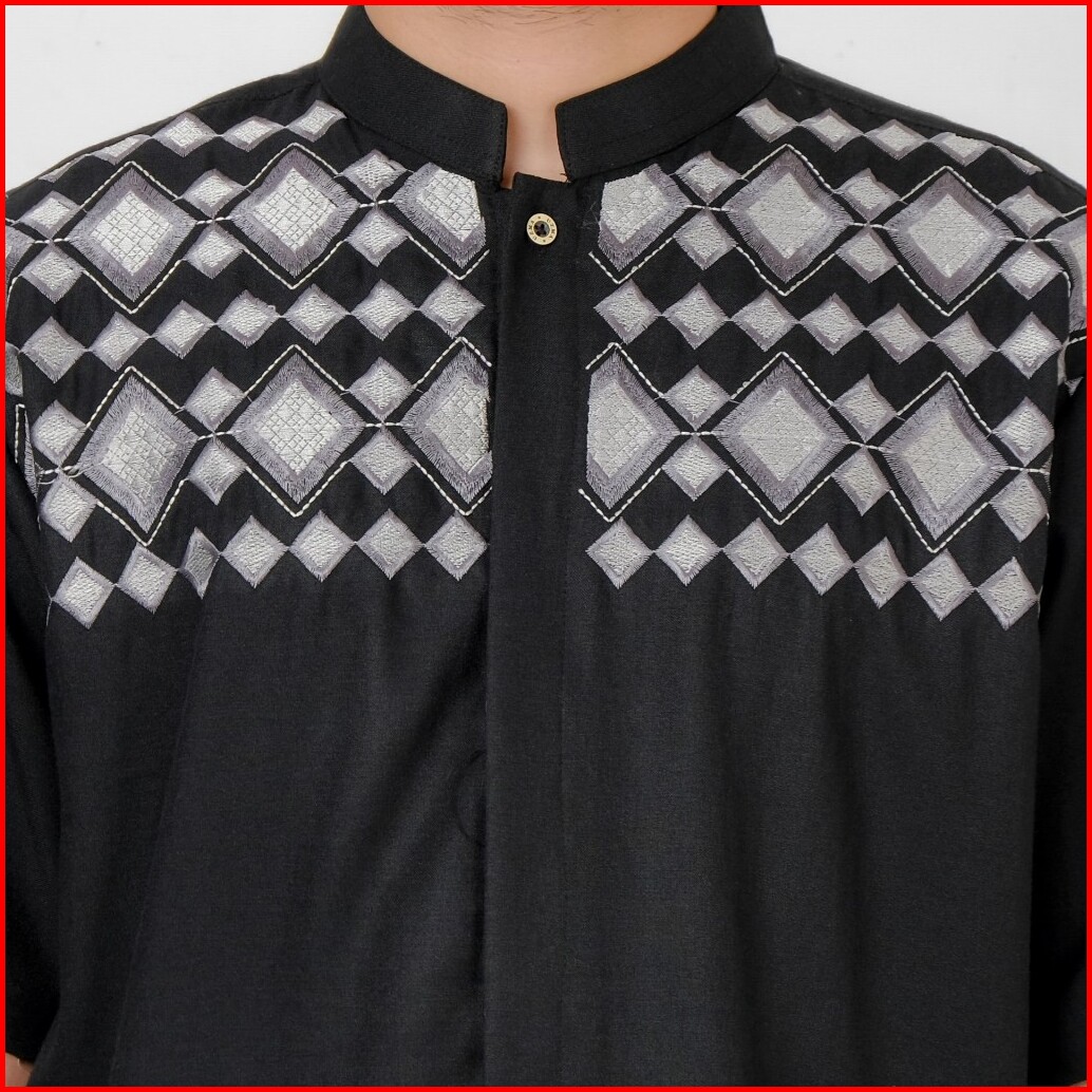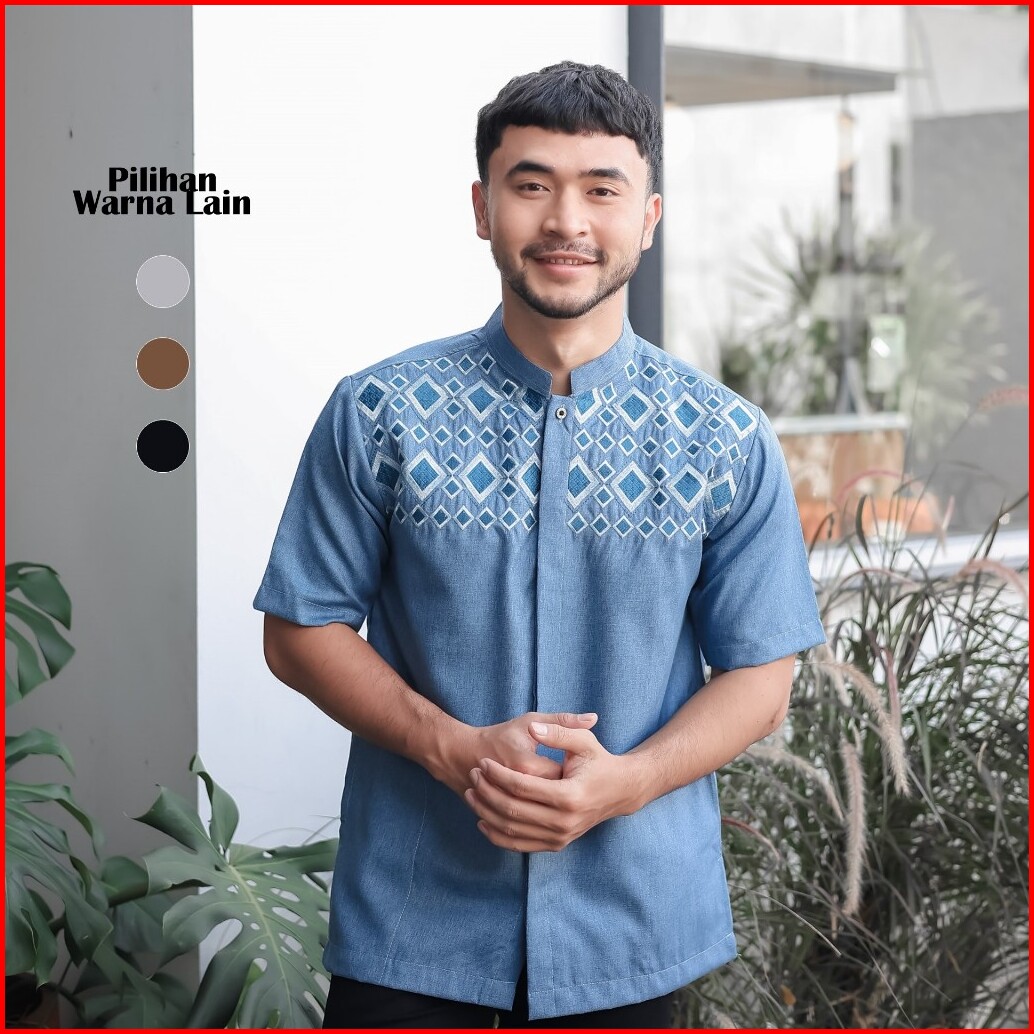 Uzma Baju Koko Pria Dewasa Tangan Pendek Bordir Koko.uzma Cr003 Coklat Biru Abu Hitam