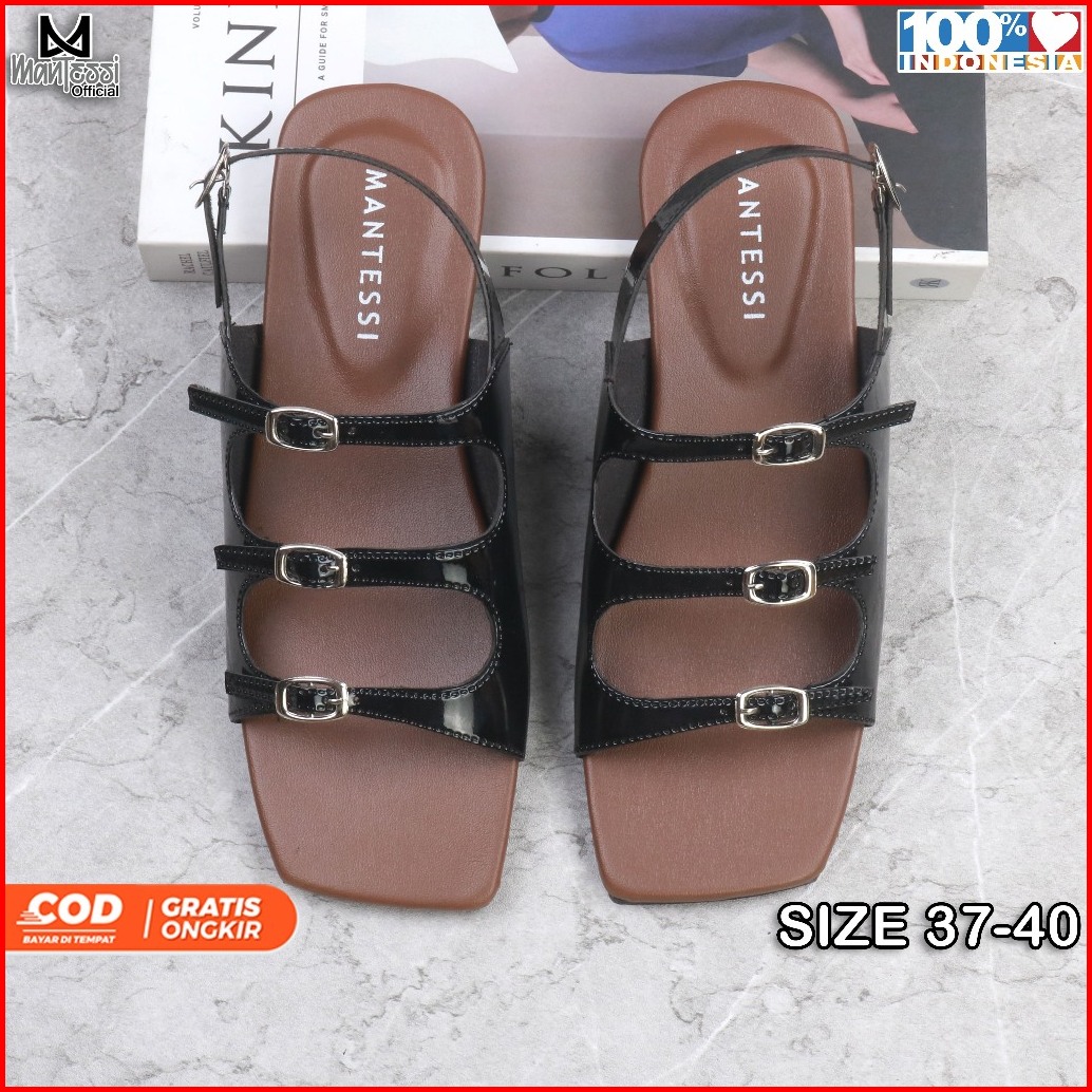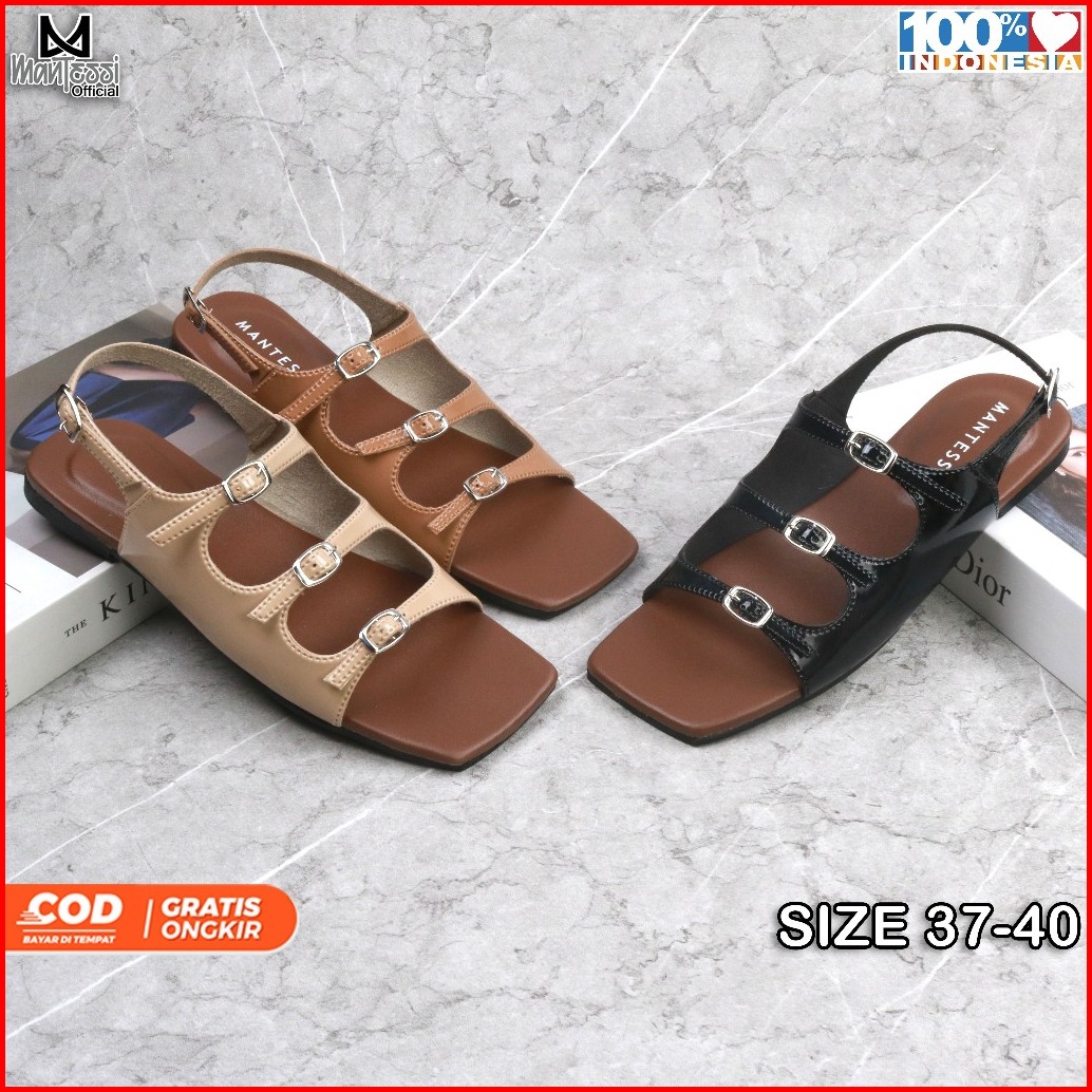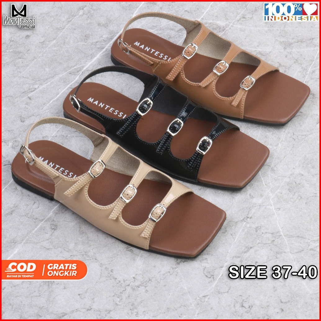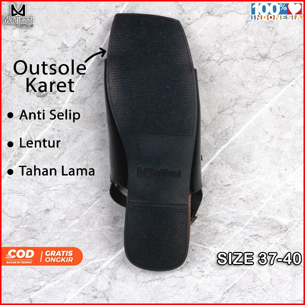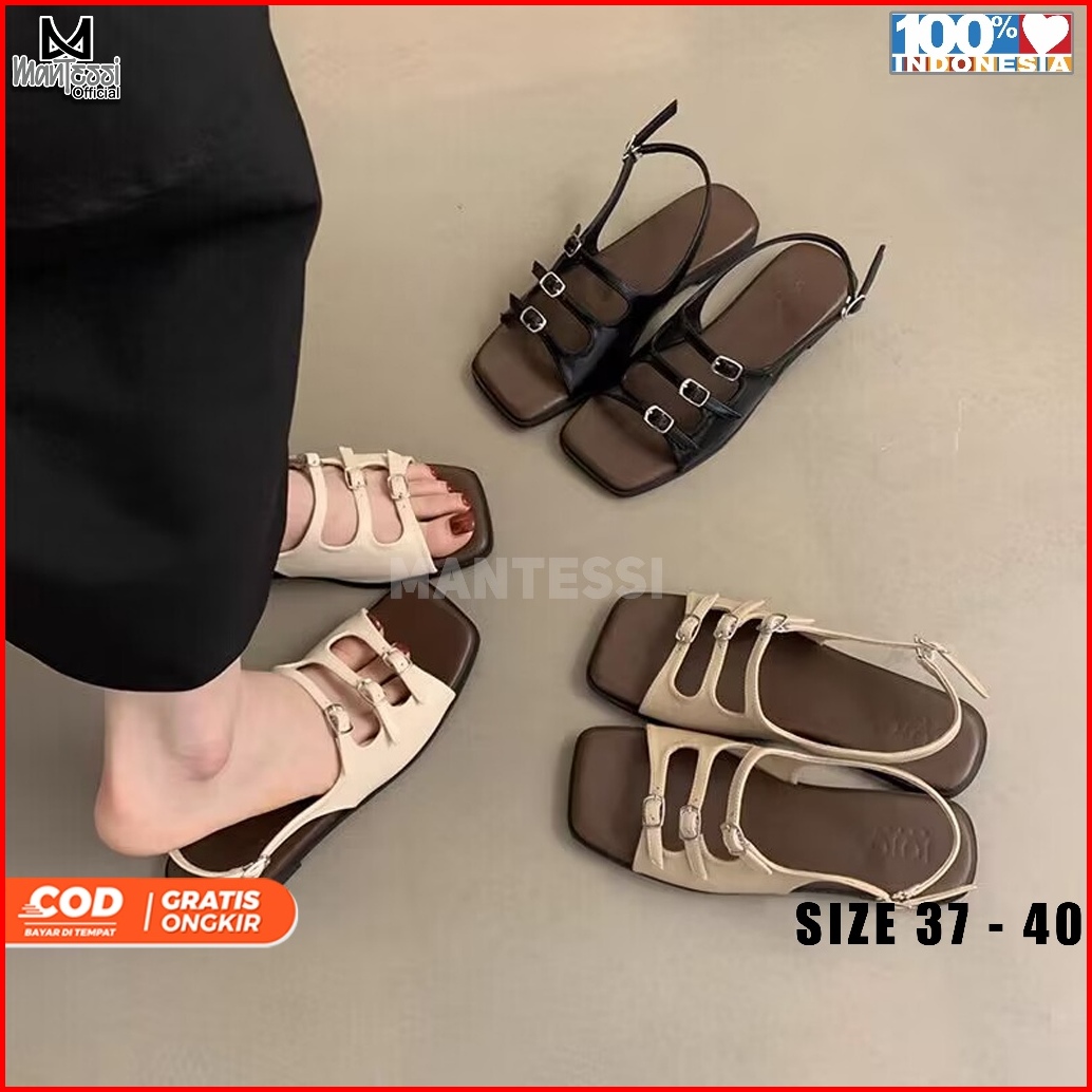 Mantessi Sandal Teplek Wanita Runnika Model Terbaru Dengan Gesper Tali Belakang - Karet Flat Shoes Hak 1cm