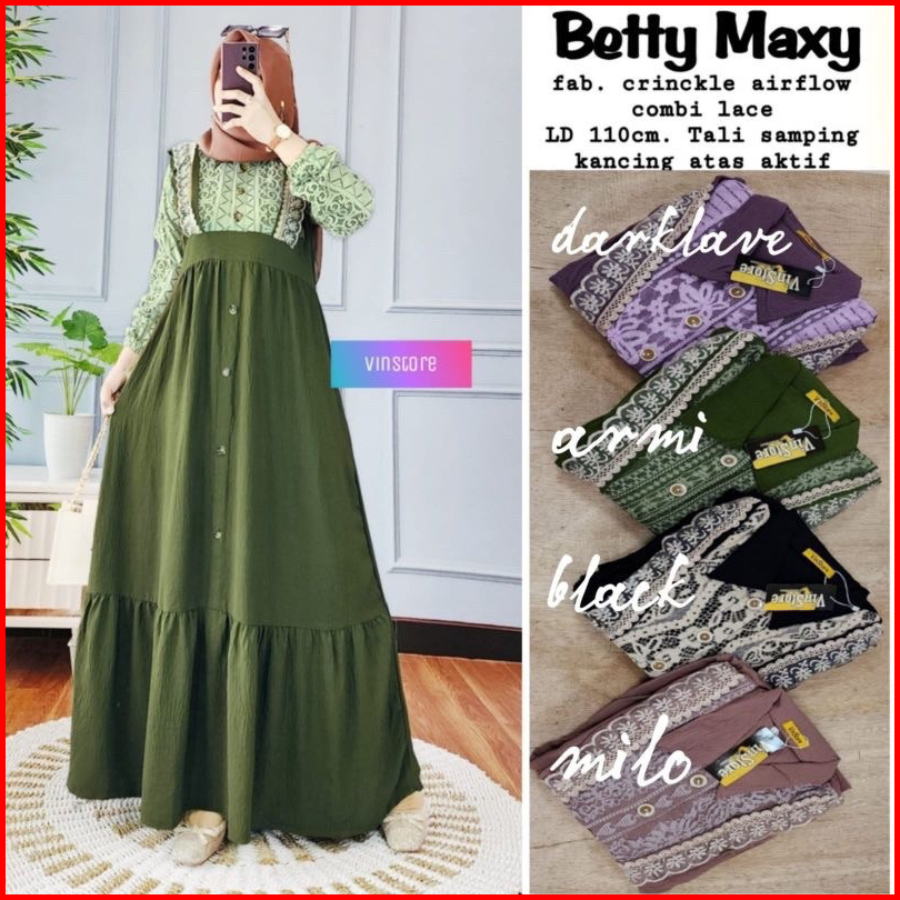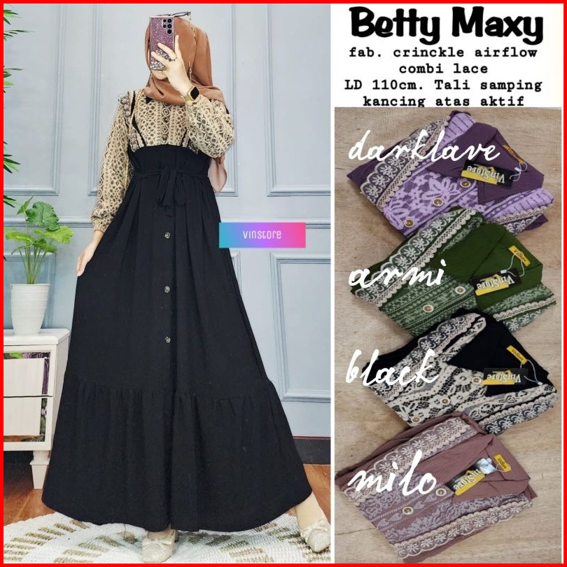 Betty Maxy Ori Gamis Renda Full Brukat Cringkle Airflow Premium Gamis Maxy Dress Gamis Wanita Gamis Lebaran Terbaru