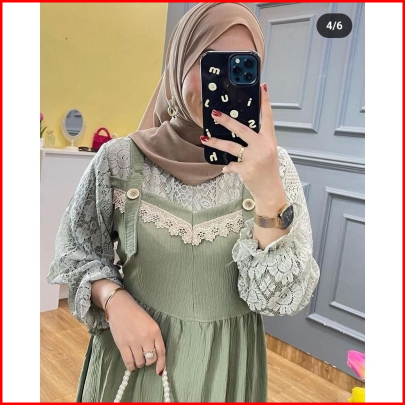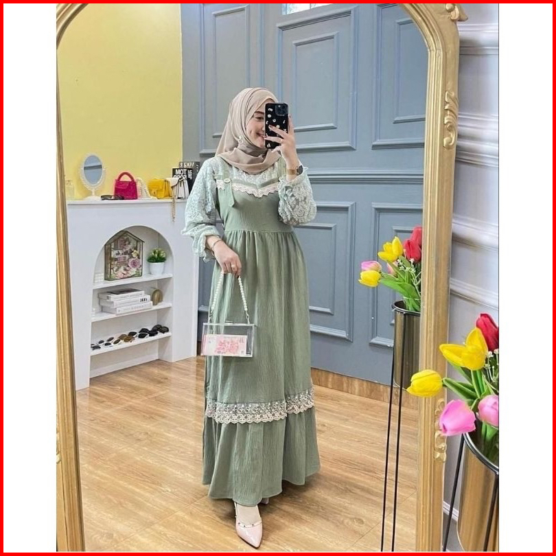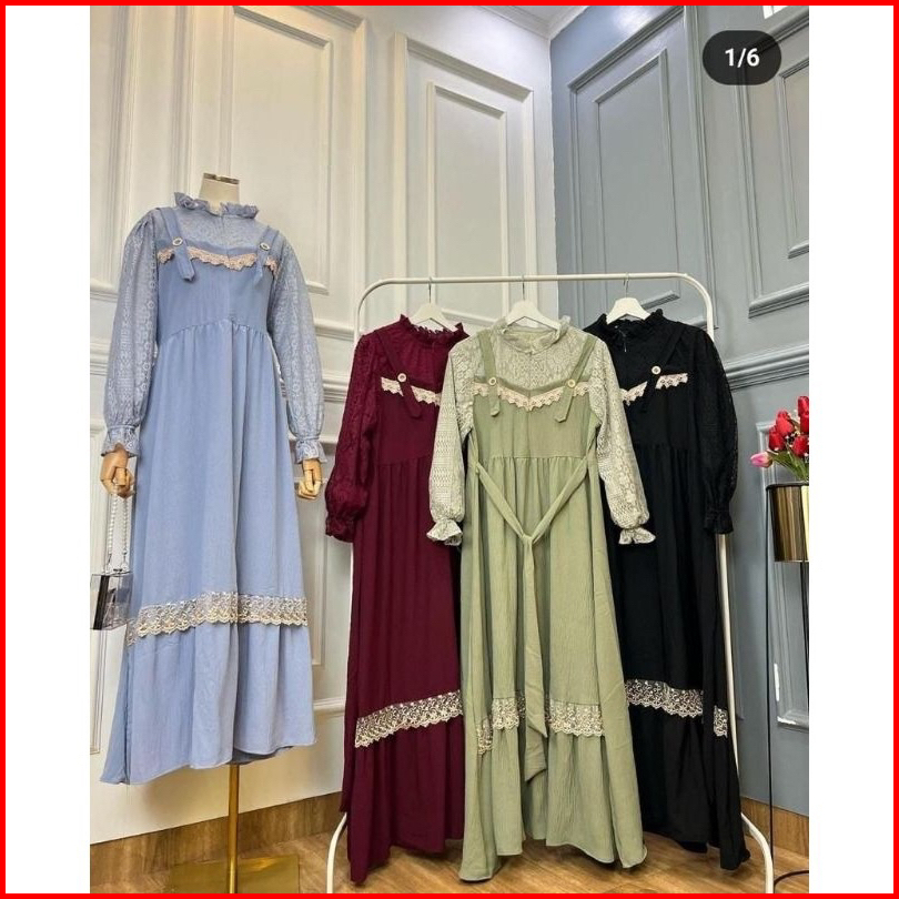 Gamis Renda Brukat Chintia Cringkle Airflow Premium Model Kekinian