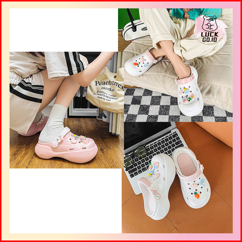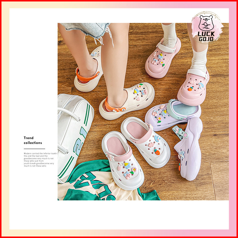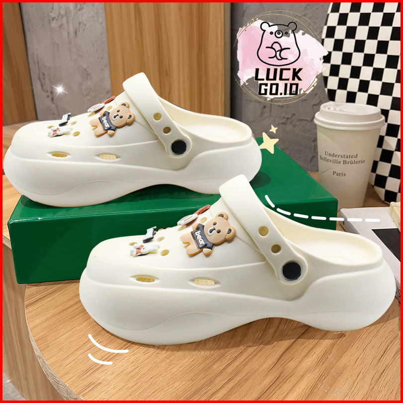 Sandal Fuji Wanita Wedges Import Terbaru Platfrom Tebal Jibbitz Sandal Selop Kekinian Sendal Cewek Perempuan Baim Lucu R
