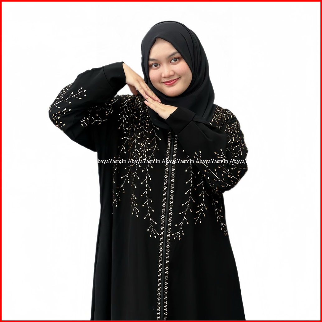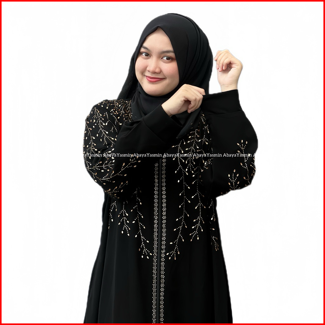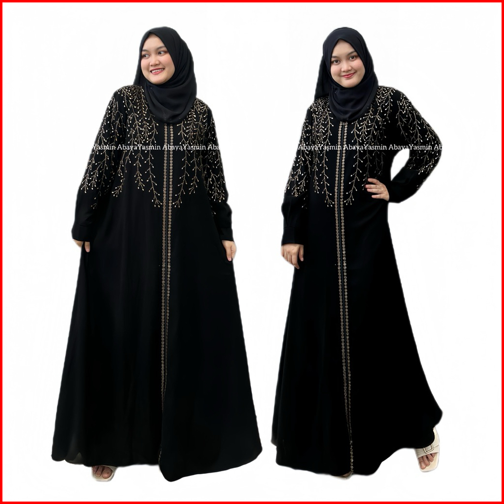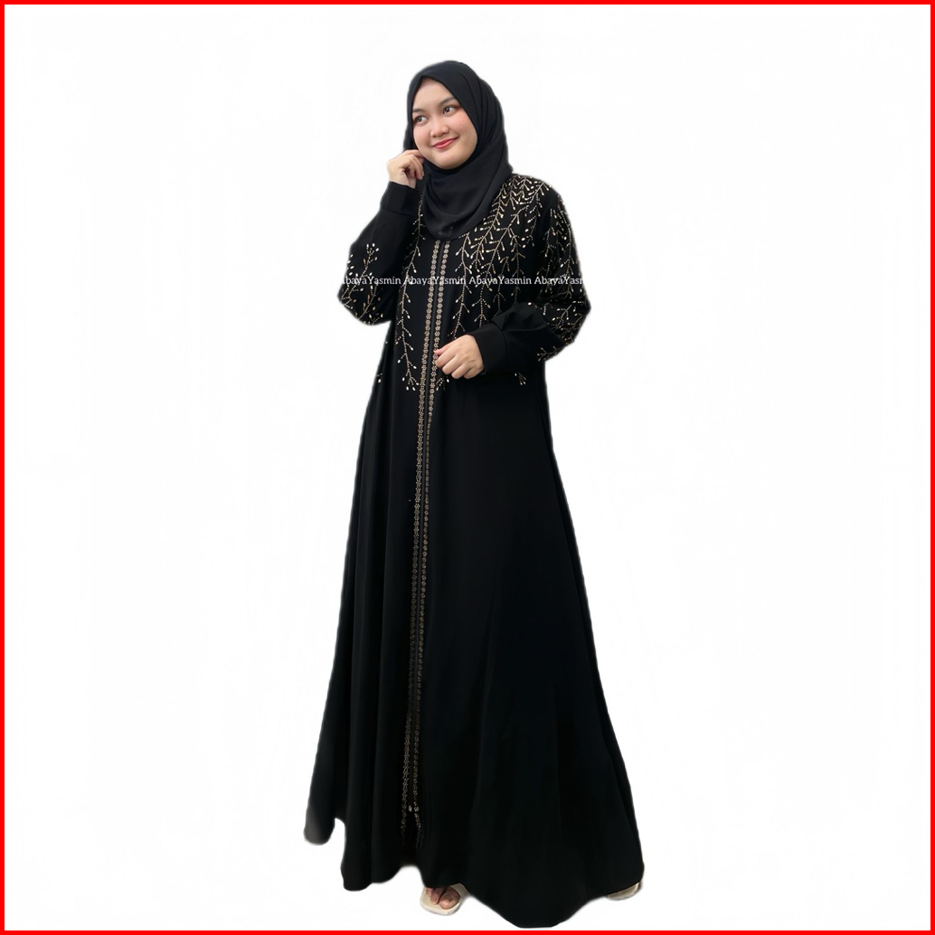 Abaya Yasmin Gamis Tsamira Kc 515 Bahan Jetblack Premium Terlaris