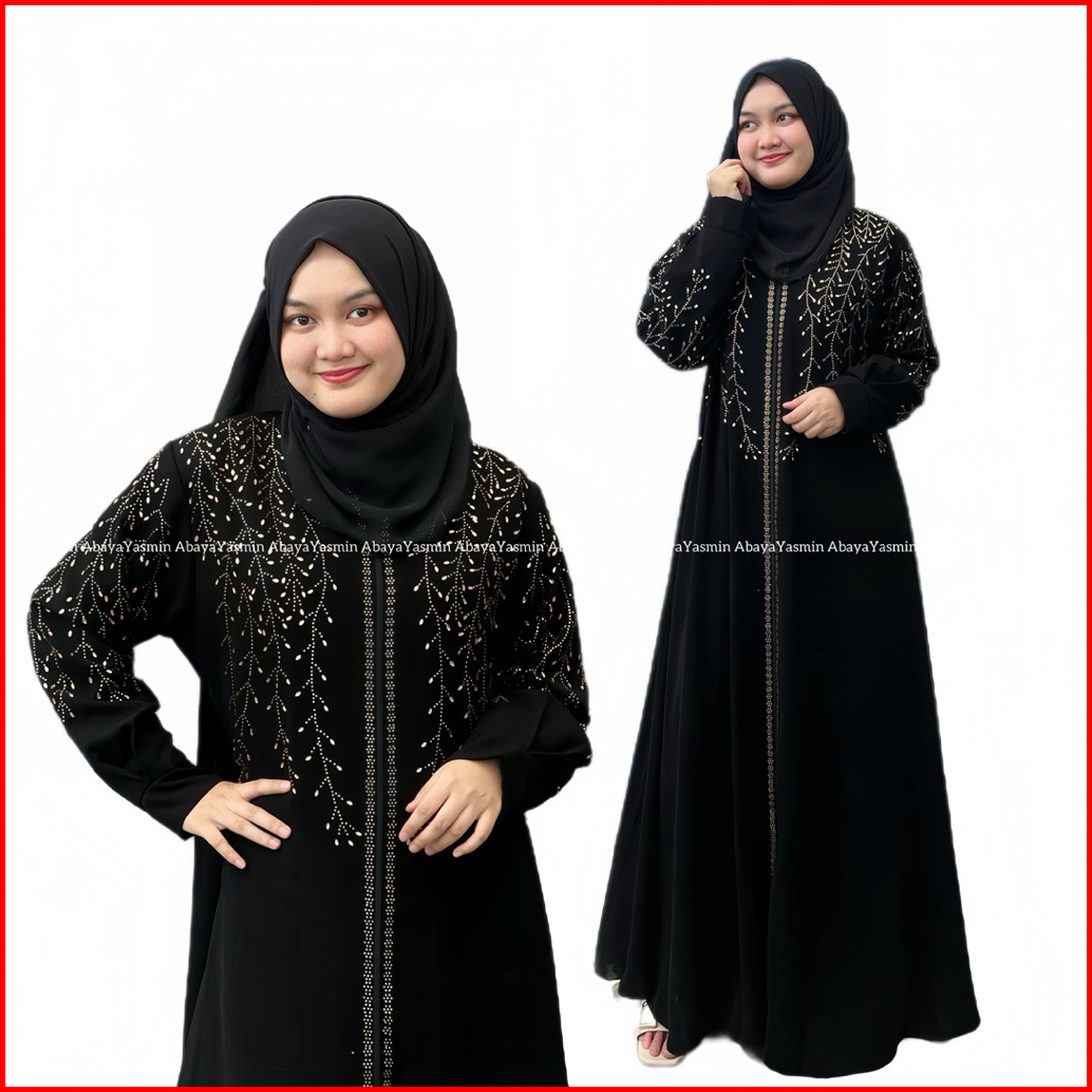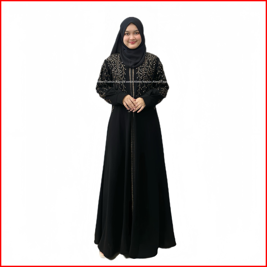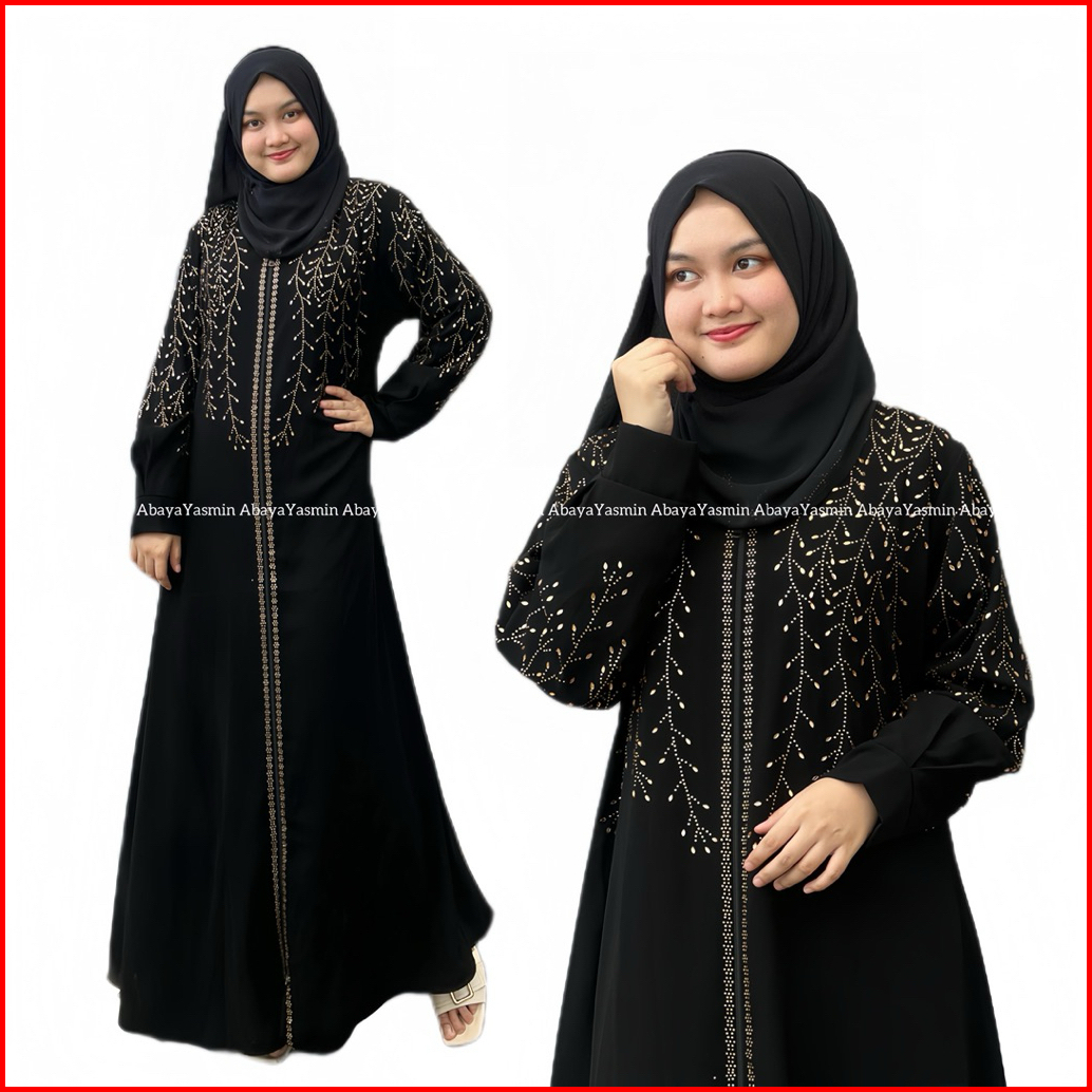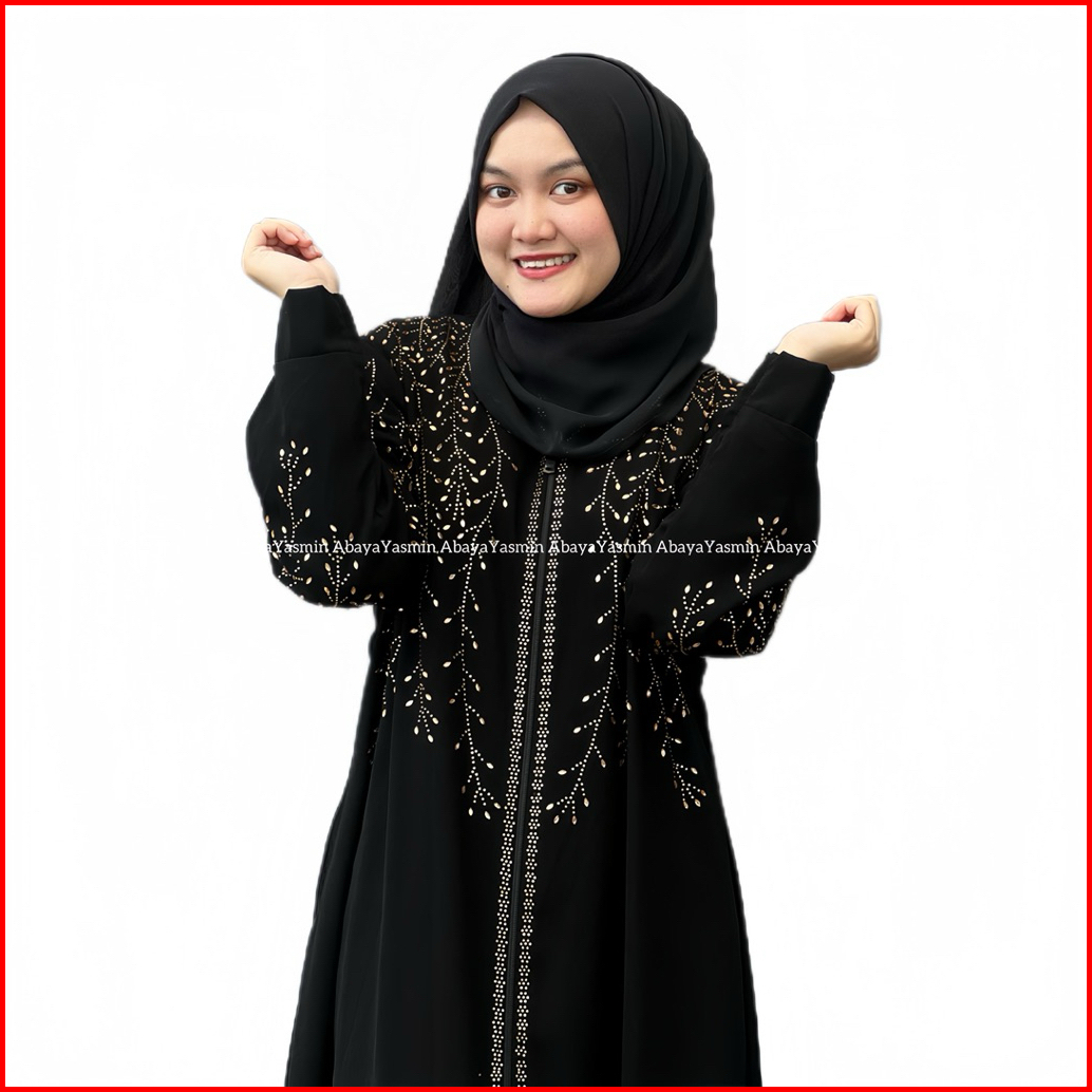Abaya Yasmin Gamis Tsamira Kc 515 Bahan Jetblack Premium Terlaris