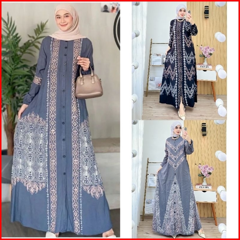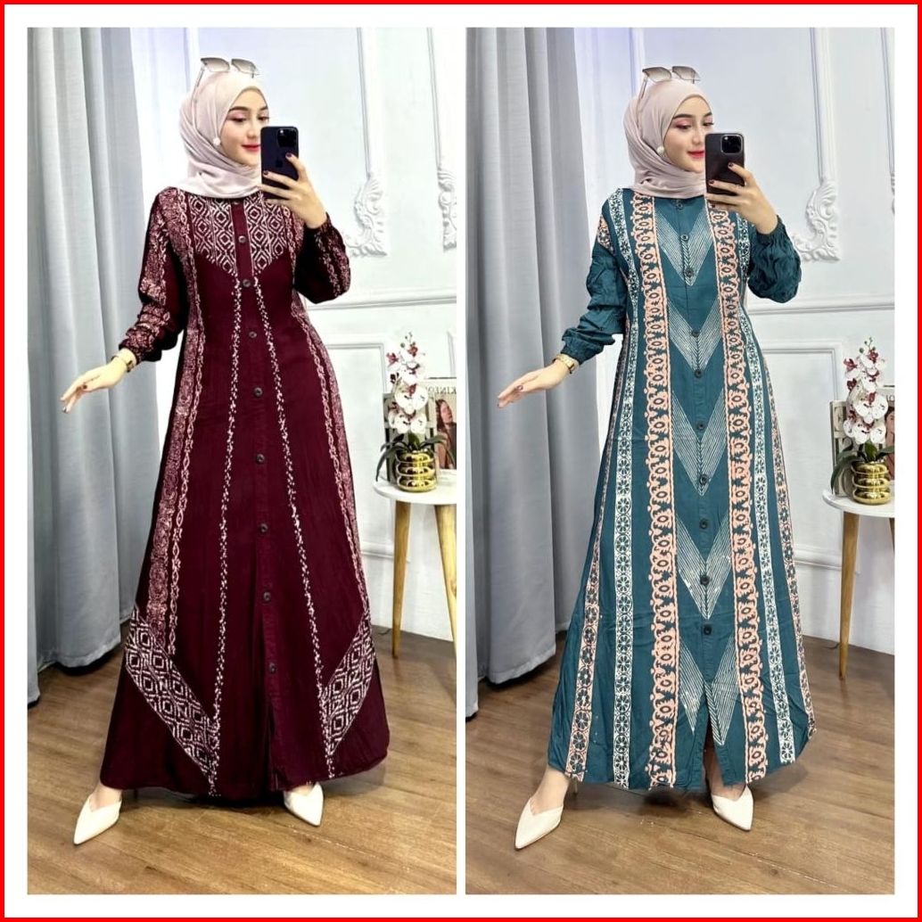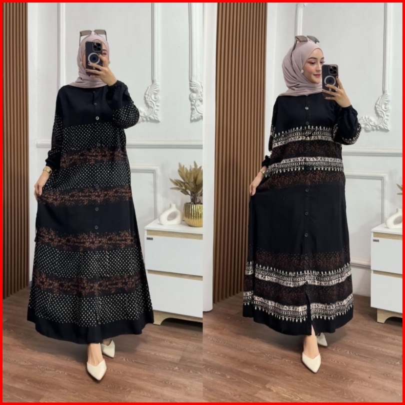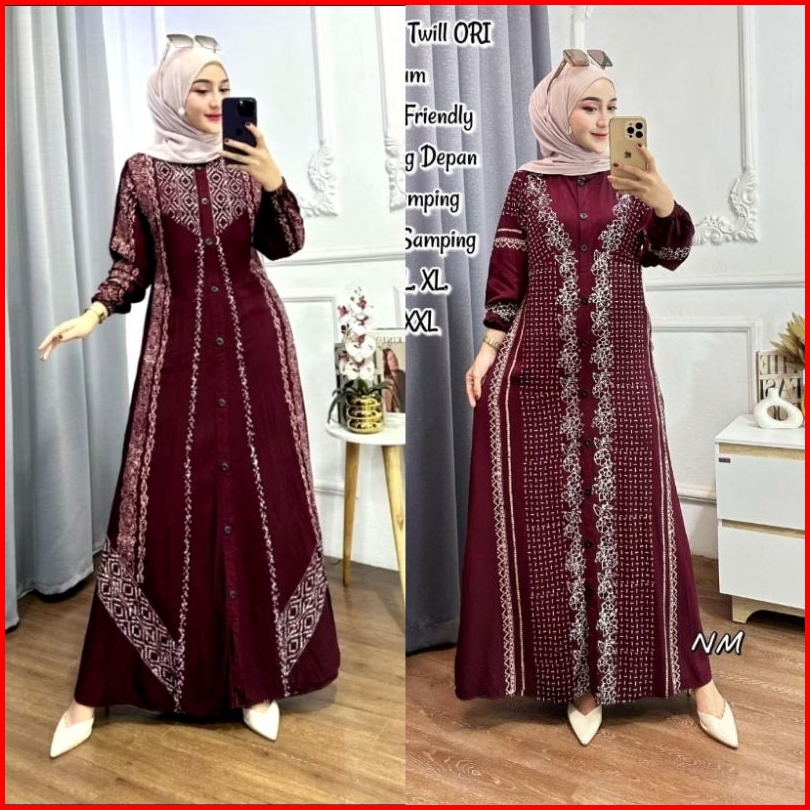 Batik Arsyad - M L Xl Xxl Gamis Twill Rayon Premium Full Kancing Motif Cap Malaman Standar Jumbo