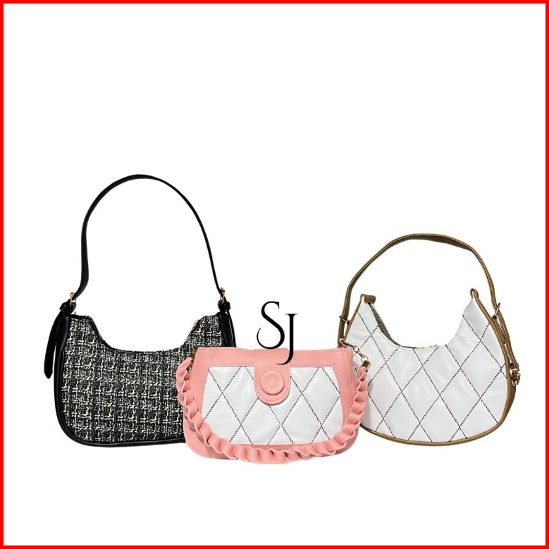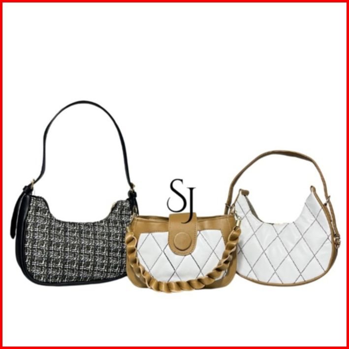 Paket Bundling 3 Pcs Tas Selempang Wanita Tartan Bordir Kepang Azka