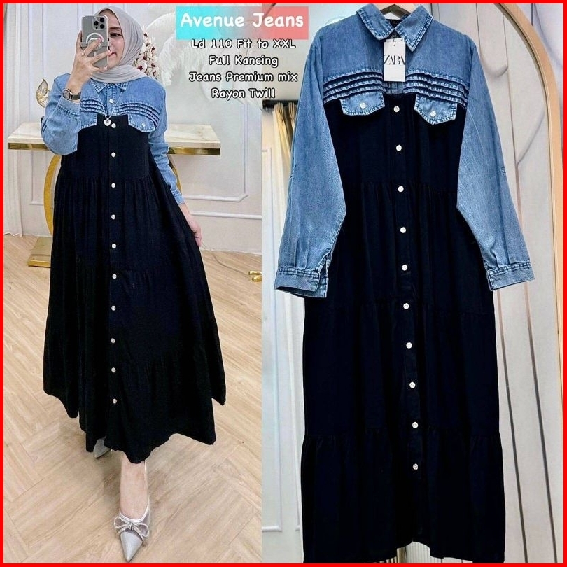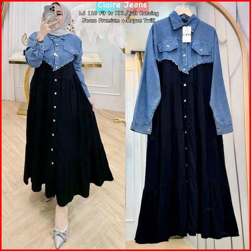 Avenue Dan Claire Midi Dress Wanita Jeans Premium Mix Rayon Twill Style Casual Daily Best Seller