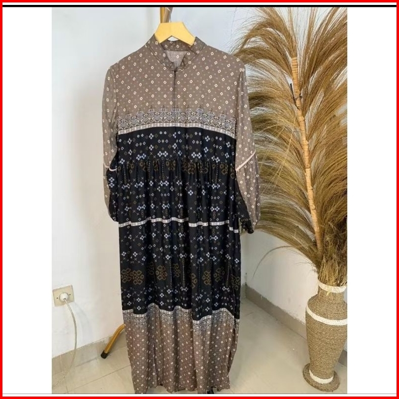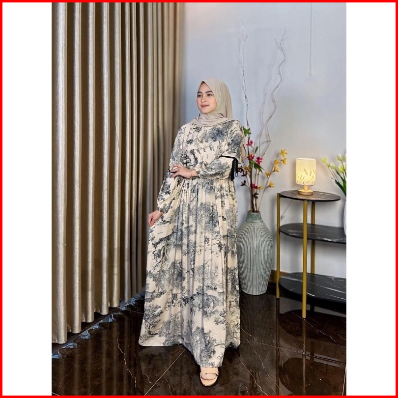 Anjani Midi Dress Rayon Premium Motif Bunga Terbaru Gamis Midi Pita Busui Friendly