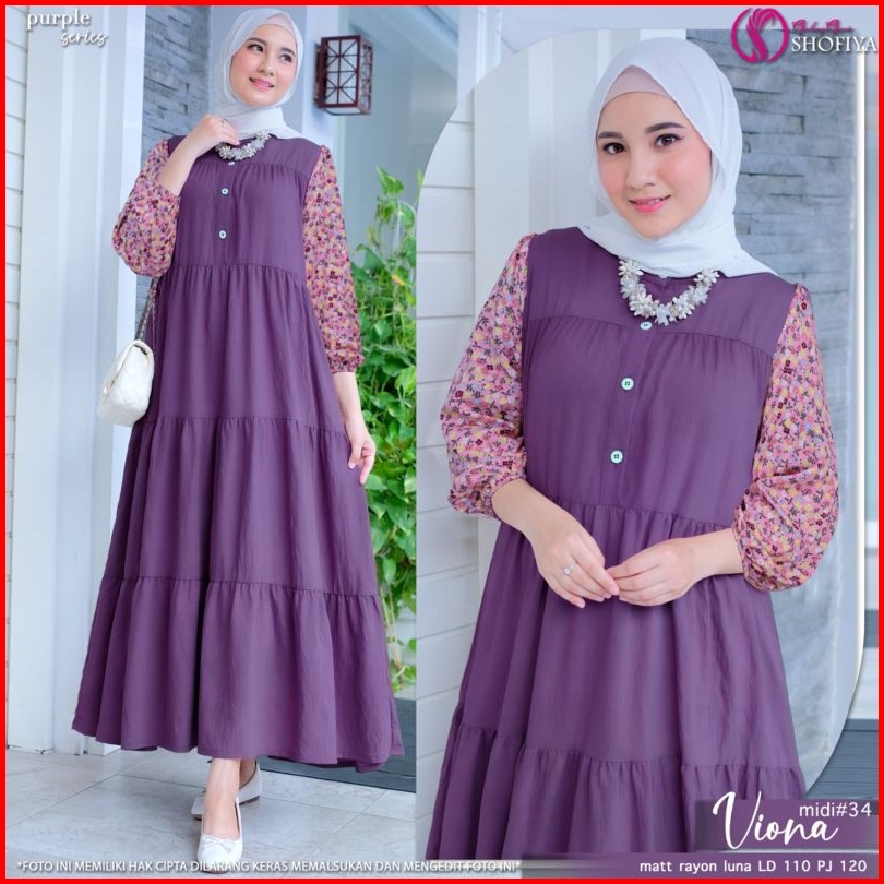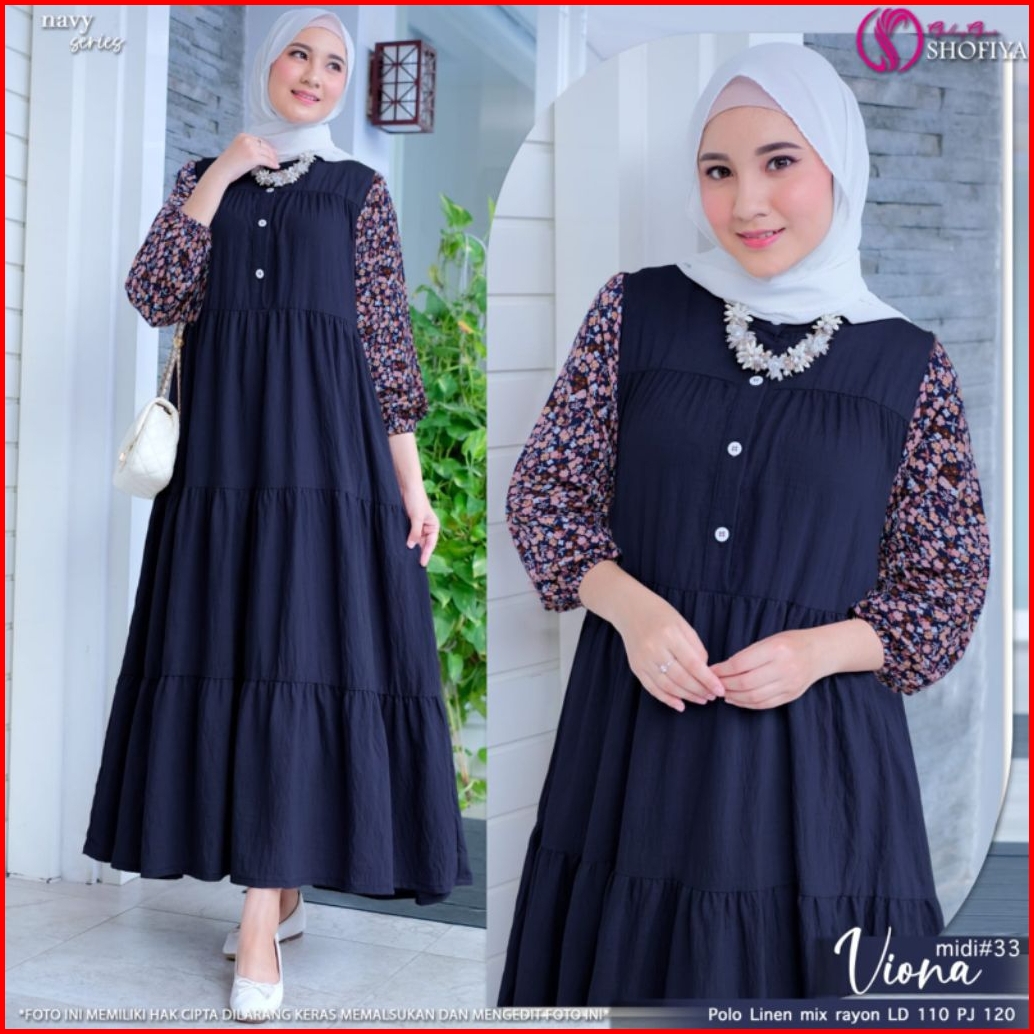 New Midi Dress Wanita Fashion Muslim Agata - Viona Midi By Shofiya