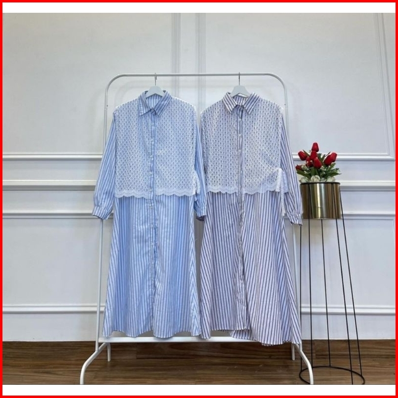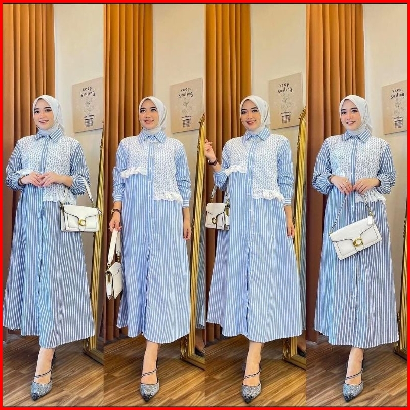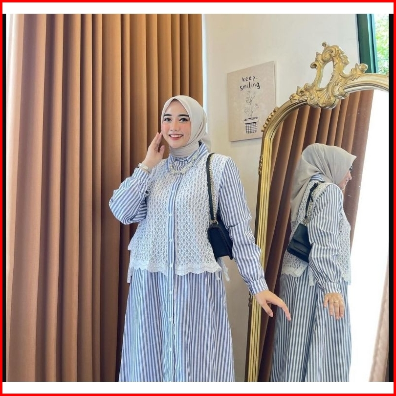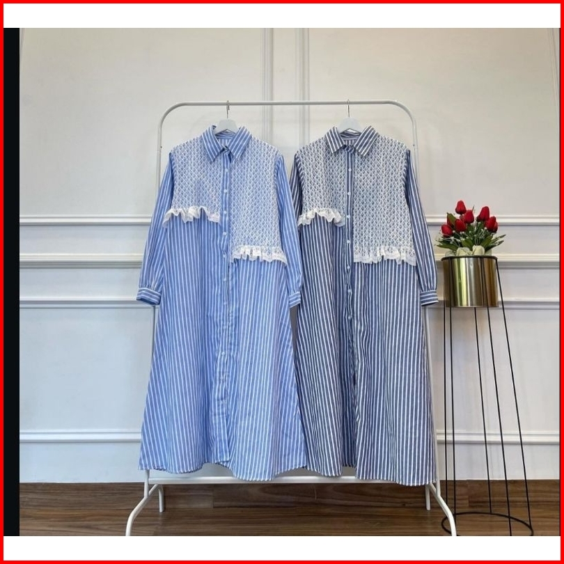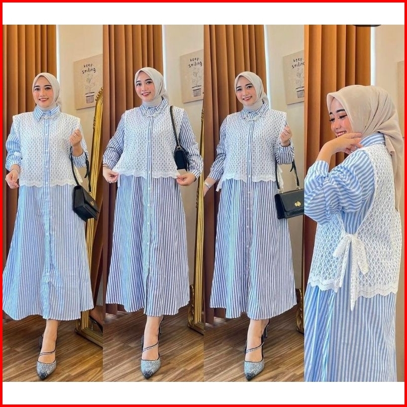 Promo Midi Katun Salur Renda Premium Wanita Korean Style Midi Busui Friendly Salur Renda Terkini Premium Wanita