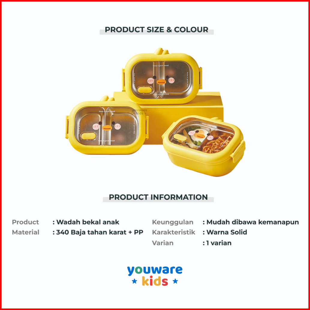 Youware - Megumi Character Duck Lunch Box Kotak Bekal Makanan Stainless Karakter Bebek Wadah Makan Siang Anak Food Stora