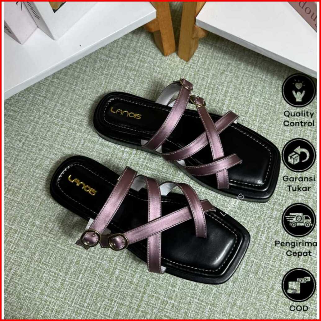 Lanois Sendal Platform Sandal Tali Gesper Wanita 3 Variasion Elegant Kekinian Full Busa Empuk