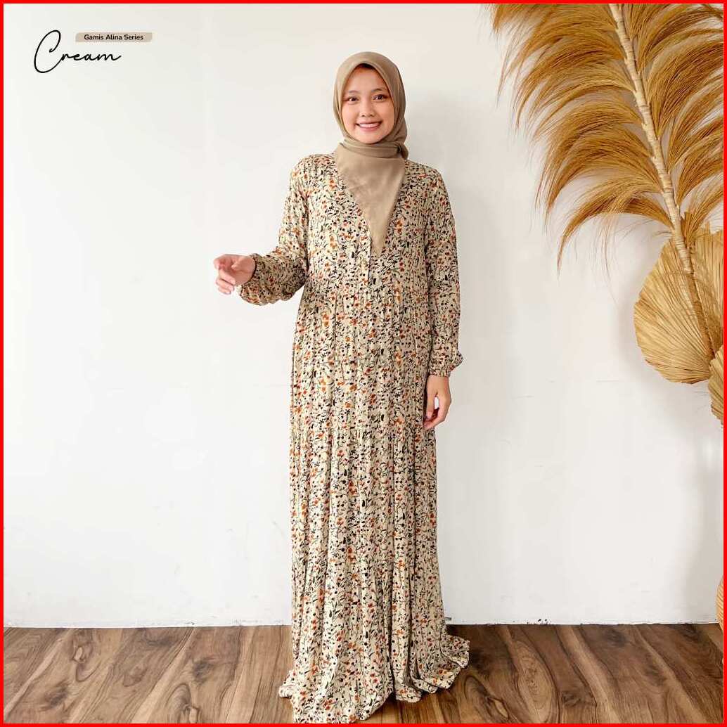 Gamis Dewasa Motif Alina Series By Gamisa.id - Bahan Rayon Viscose Gamis Adem Nyaman