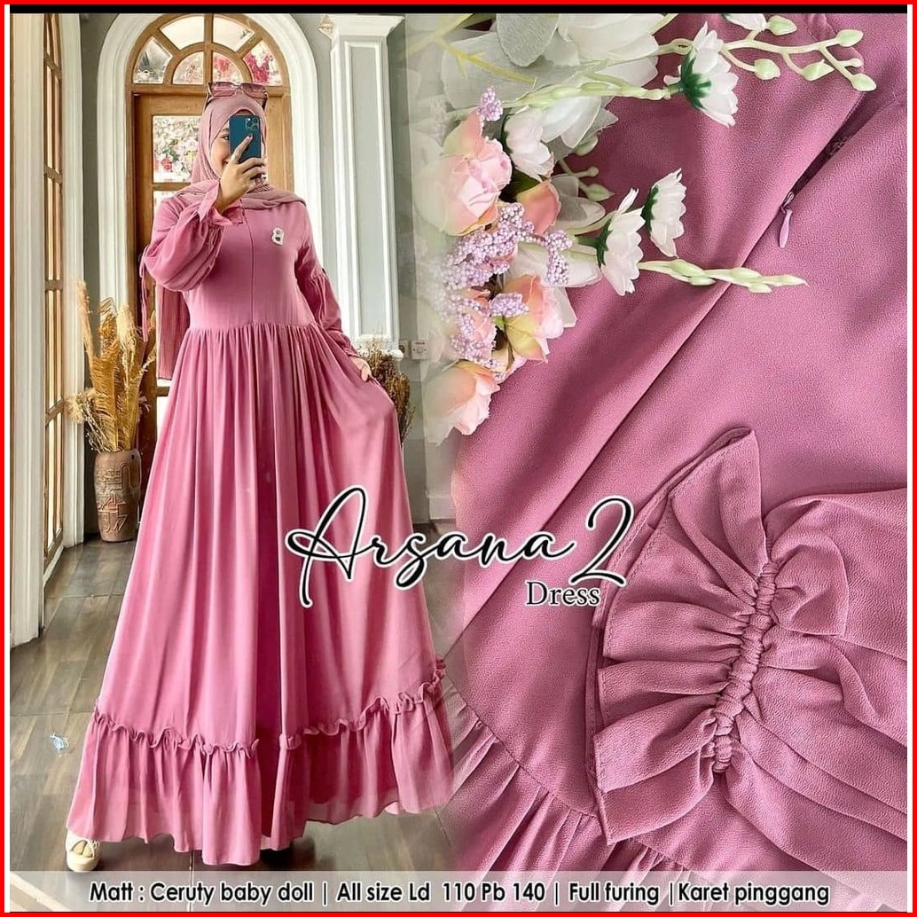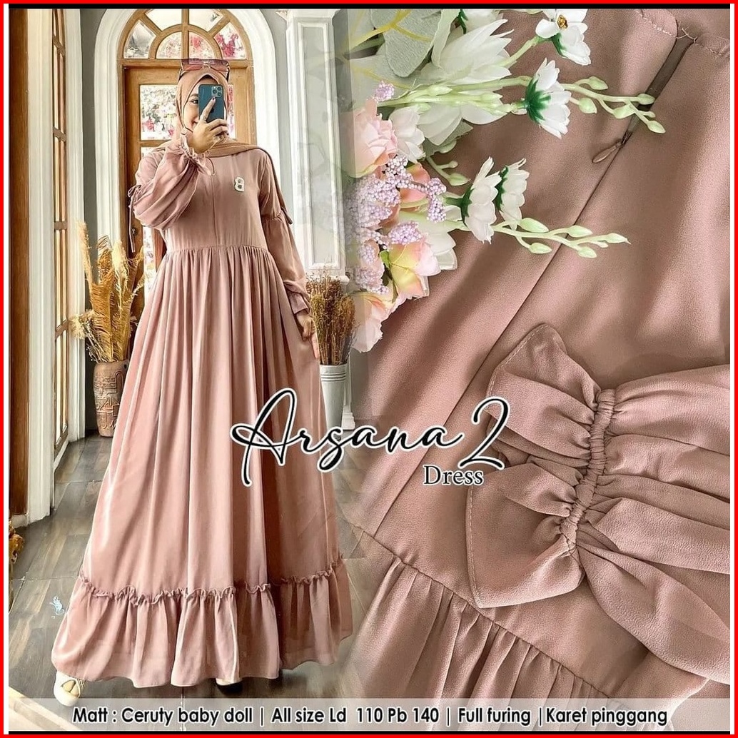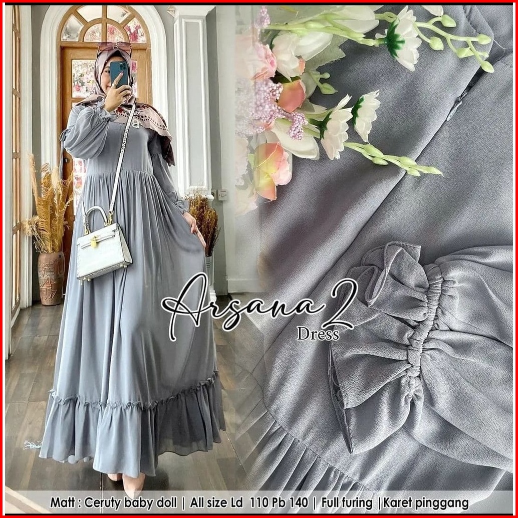 Arsana Dress Gamis Ceruty Gamis Ceruty Babydoll Gamis Ceruty Polos Gamis Ceruty Jumbo Dress Muslimah Ceruty Dress Muslim