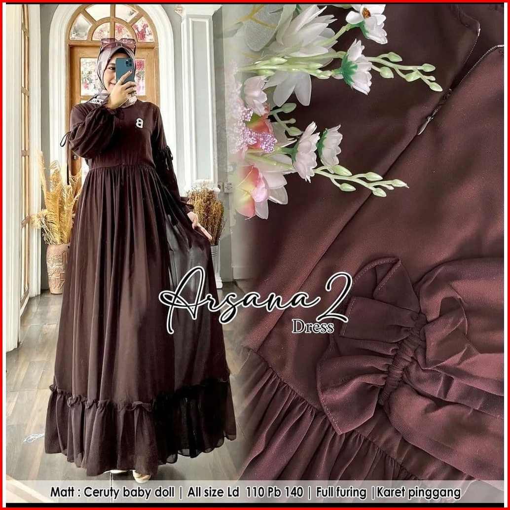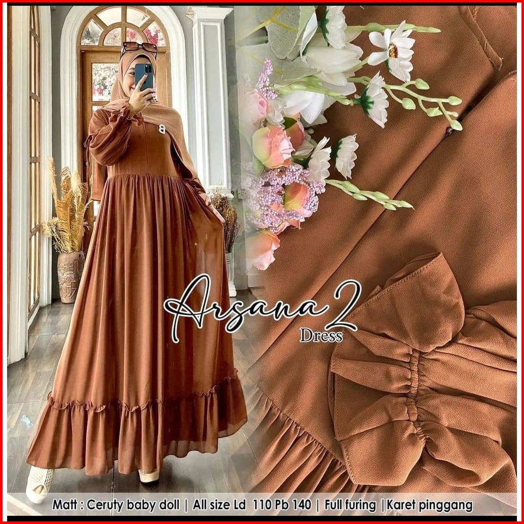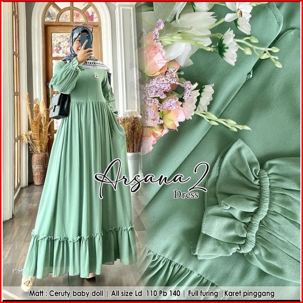 Arsana Dress Gamis Ceruty Gamis Ceruty Babydoll Gamis Ceruty Polos Gamis Ceruty Jumbo Dress Muslimah Ceruty Dress Muslim
