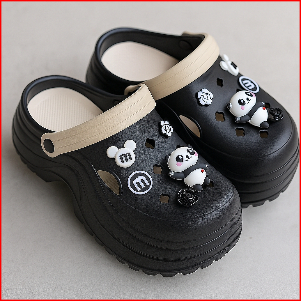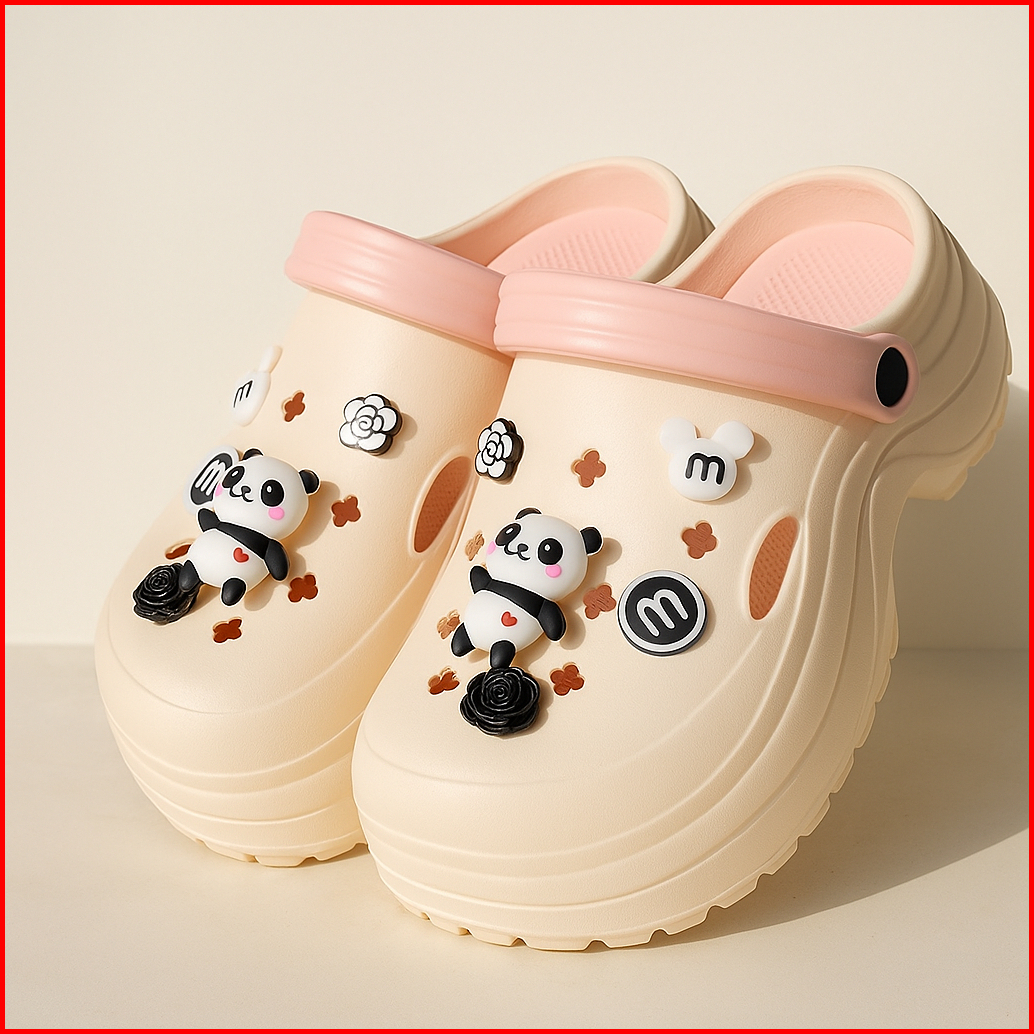 Sandal Baim Crocs Wanita Dewasa Terbaru Hiasan Boneka Panda Tinggi 7 Cm