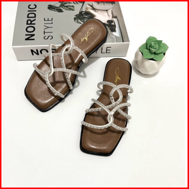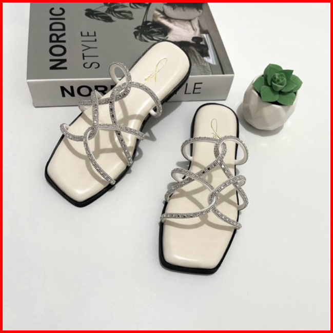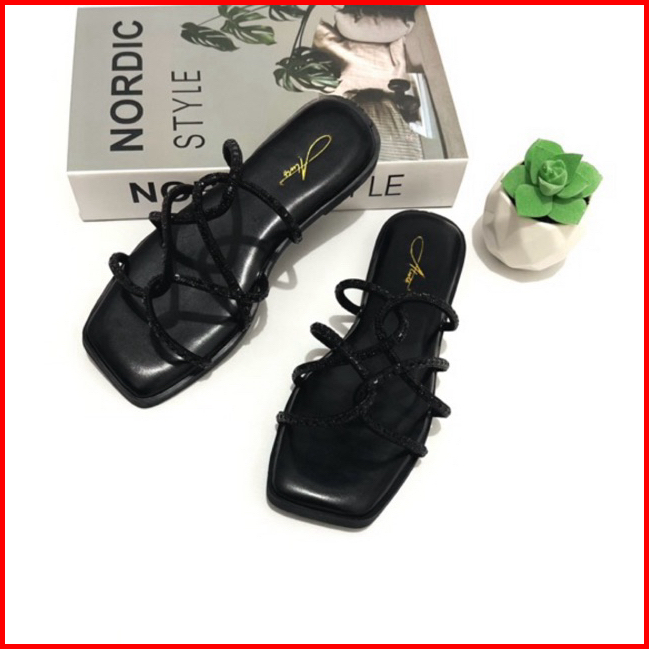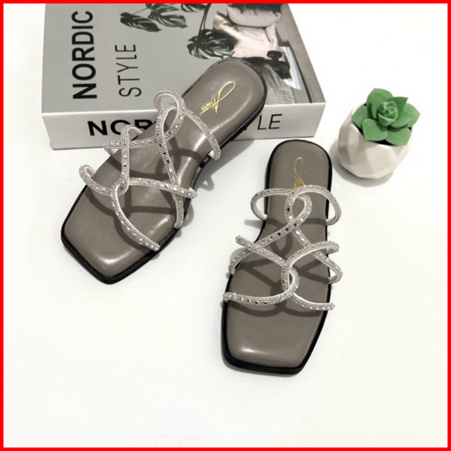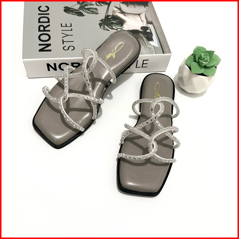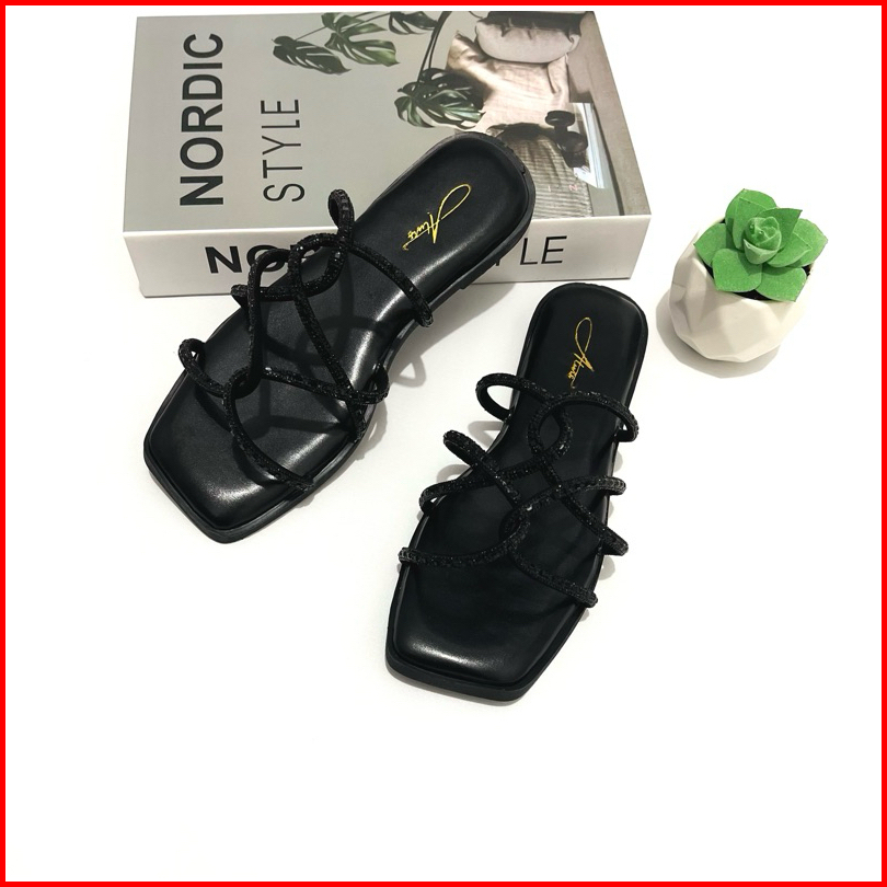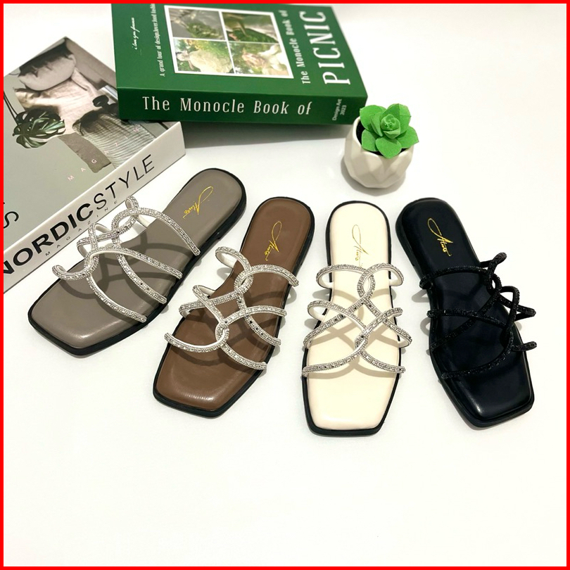 Alwisshoes - Agatha Sandal Flat Wanita Blink-blink Pesegi Sendal Kekinian Korea Stylis Trendy Teplek Cewek