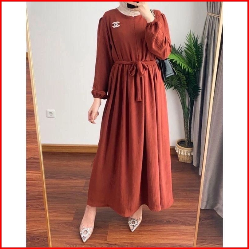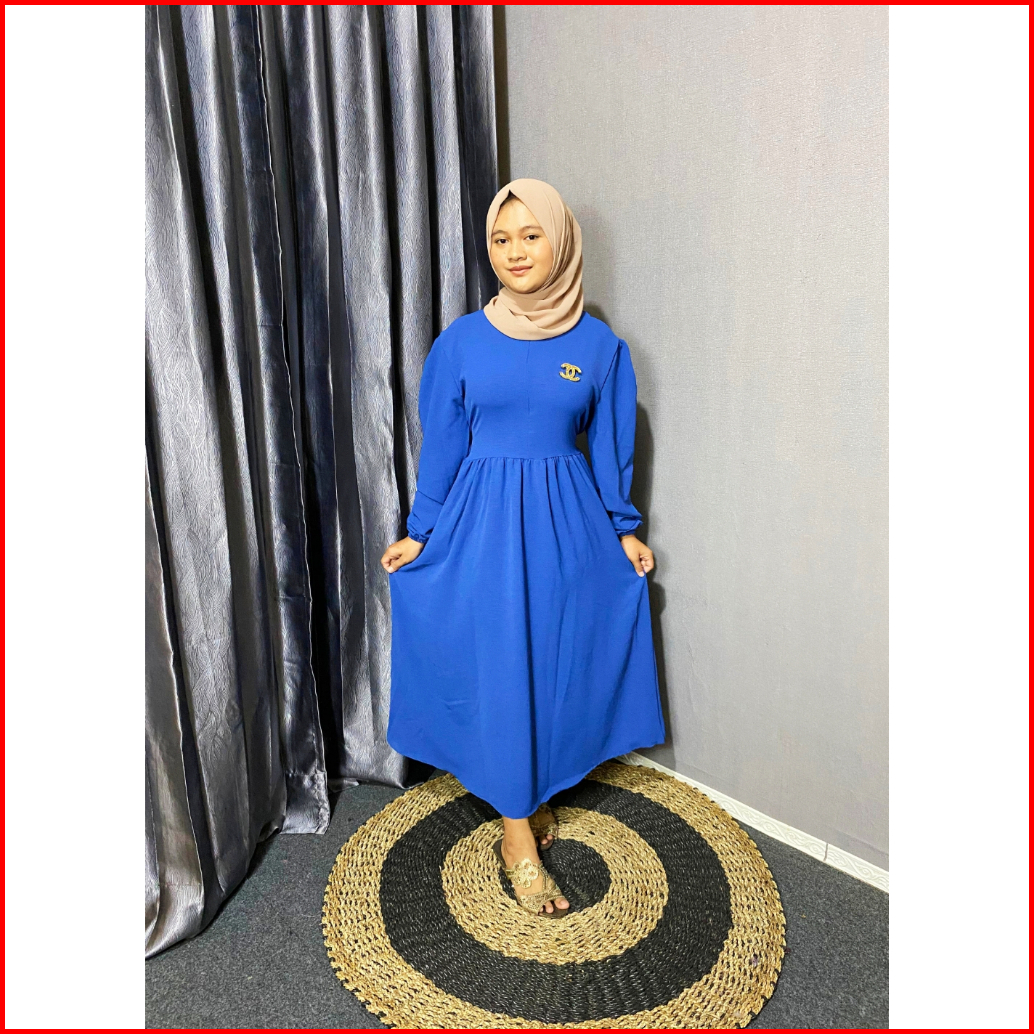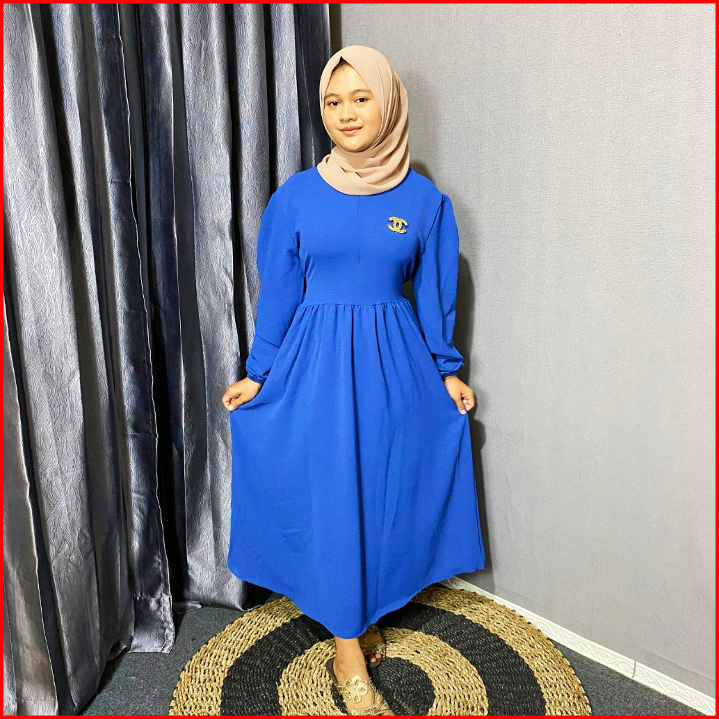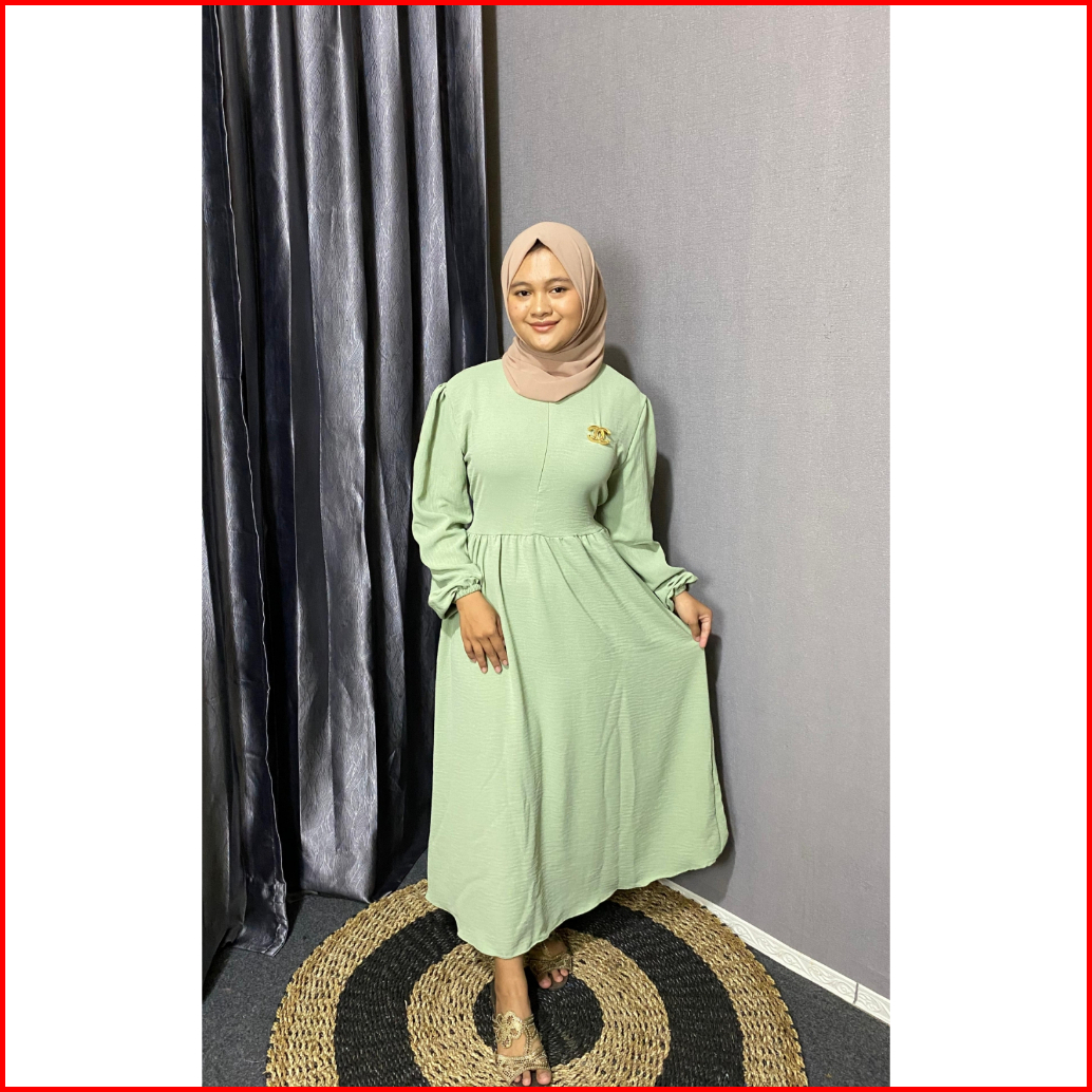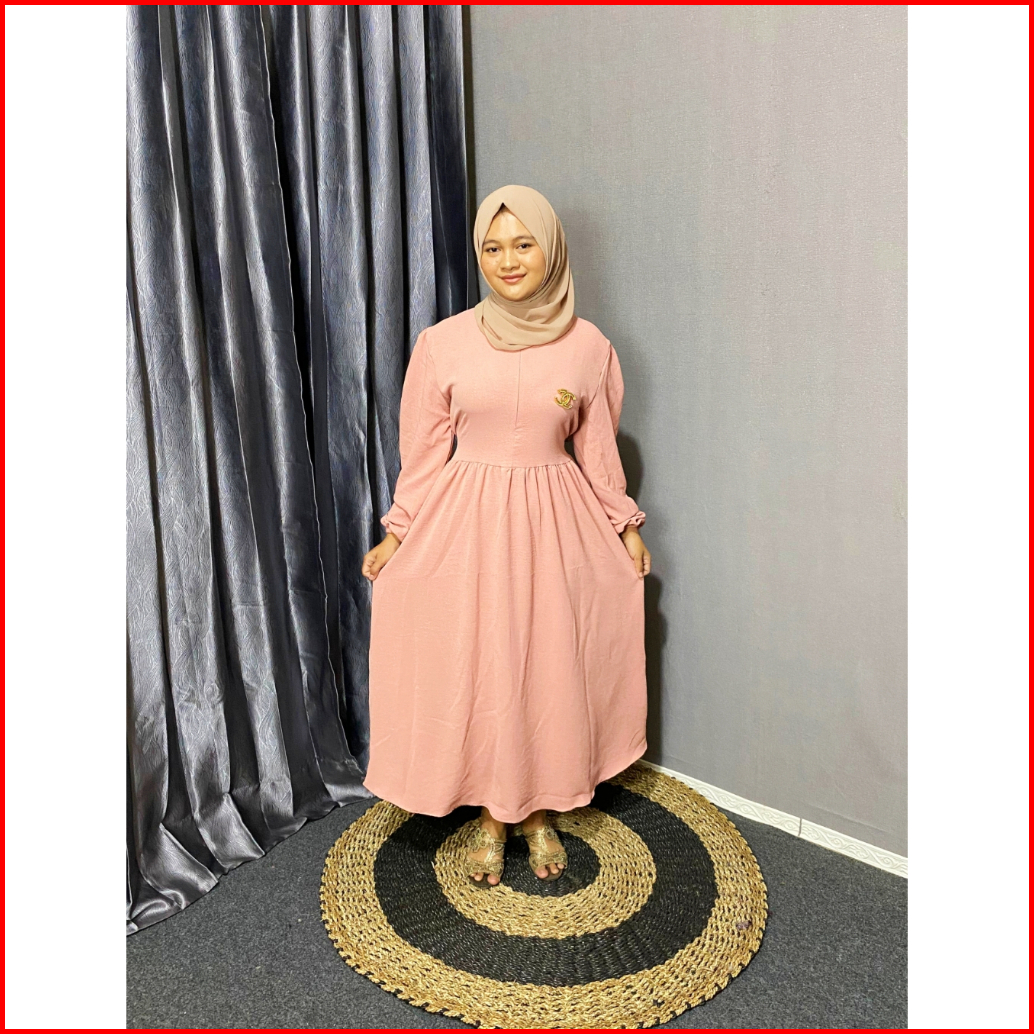 Midi Dress Bavina Bahan Cringkle Murah Jumbo Ld 90-120