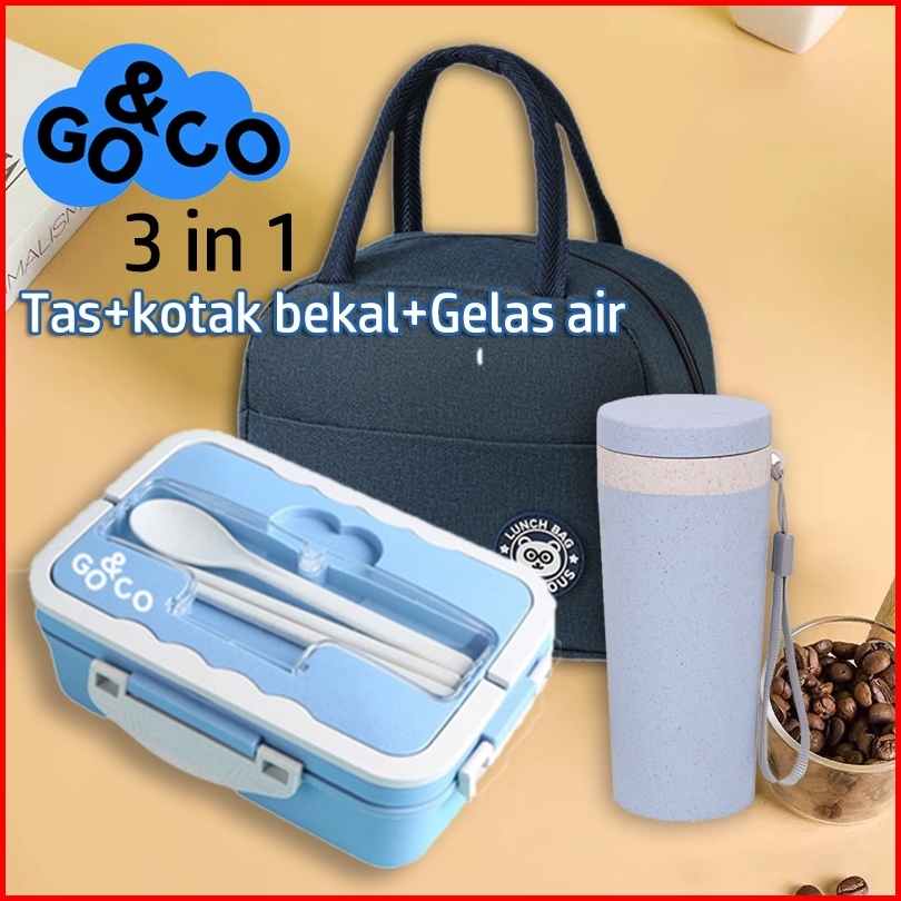 Go Co Paket 3 In 1 Kotak Makan Botol Minum Bag - Lunch Box Set