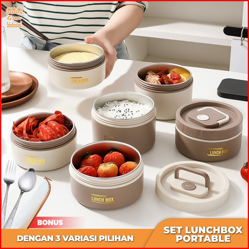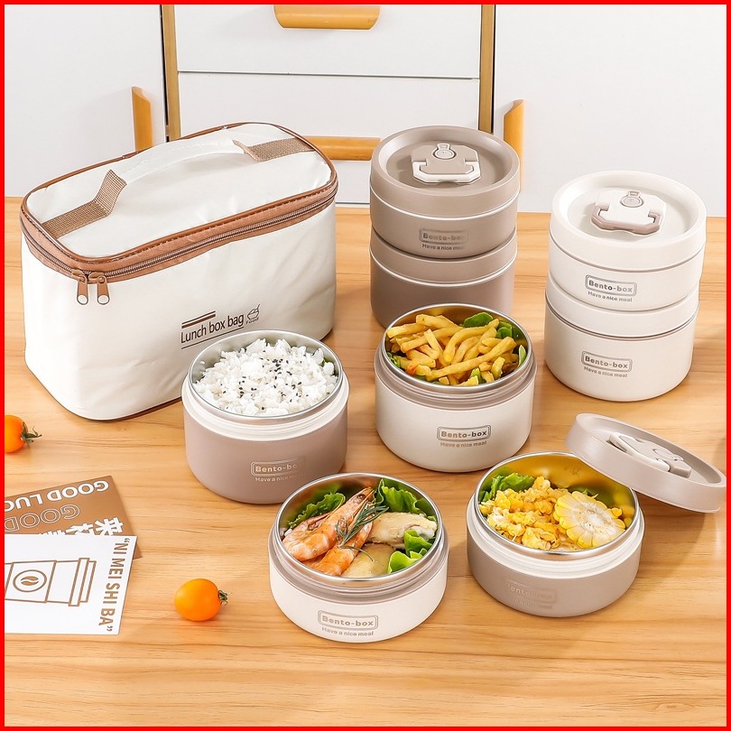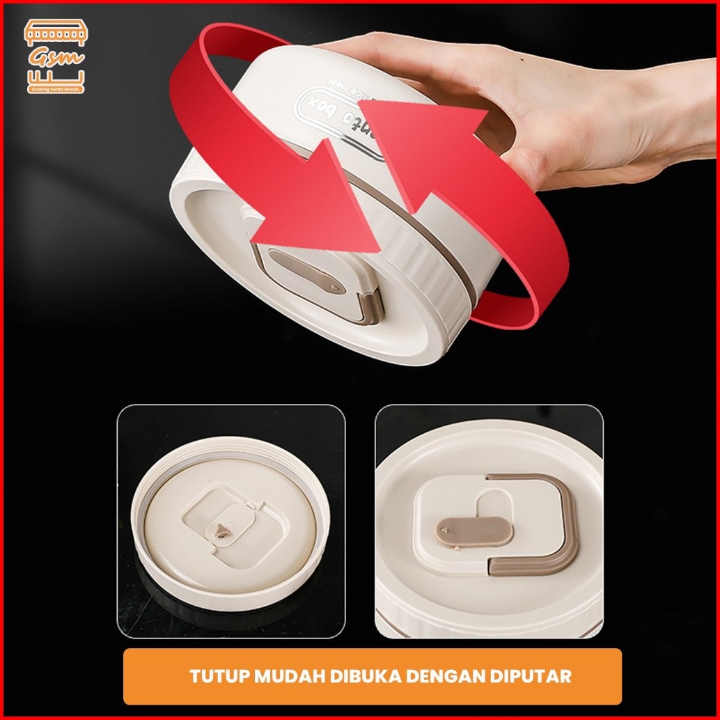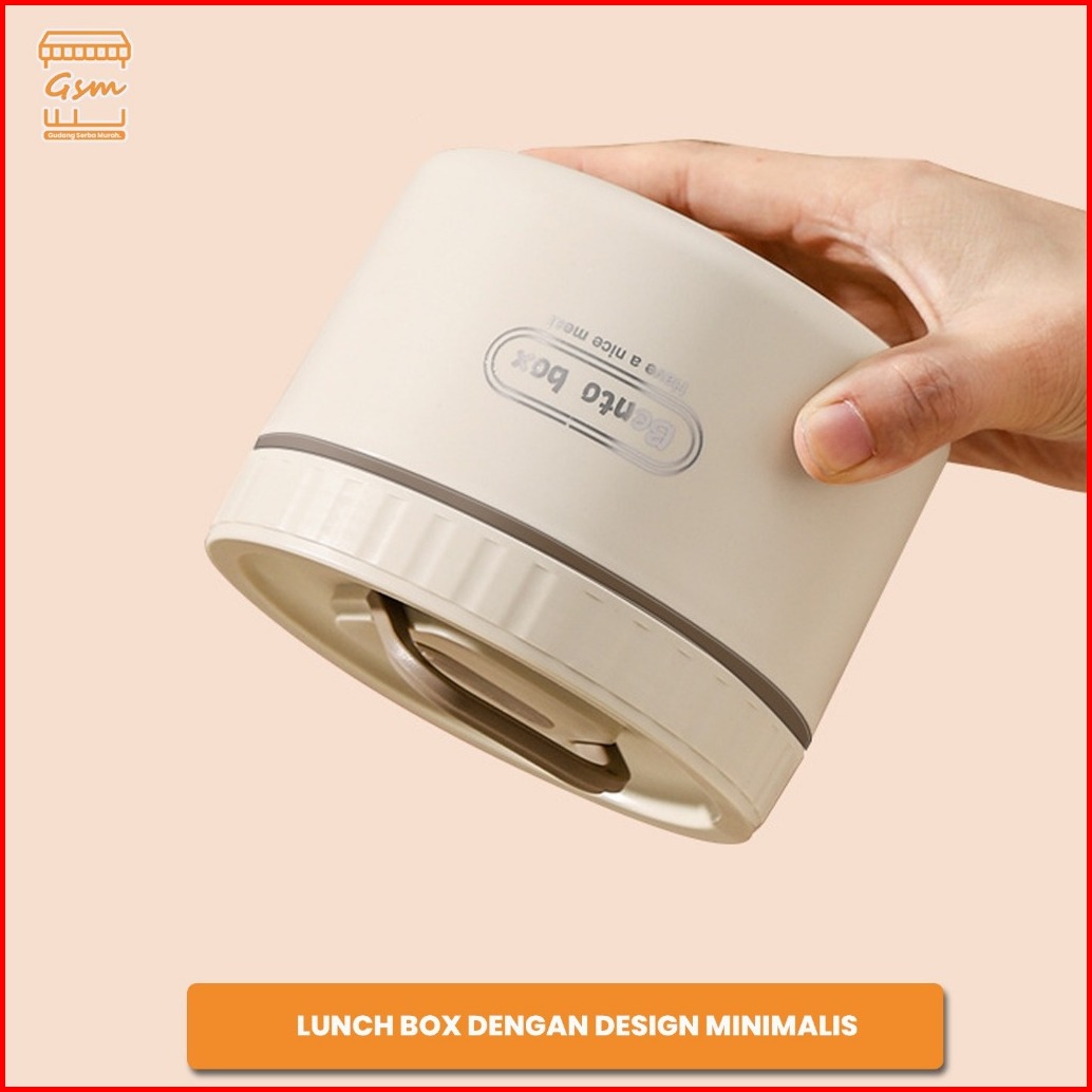 Gsm Kotak Makan 1 Set 304 Lunch Box Bento Portabel Tahan Bocor Gaya Jepang Round Stainless Lunch Box Cream Rice Containe