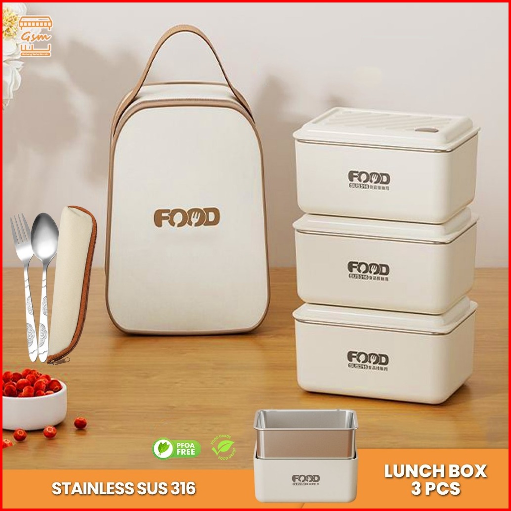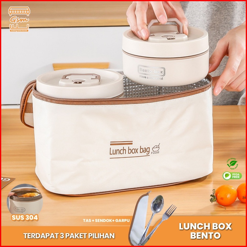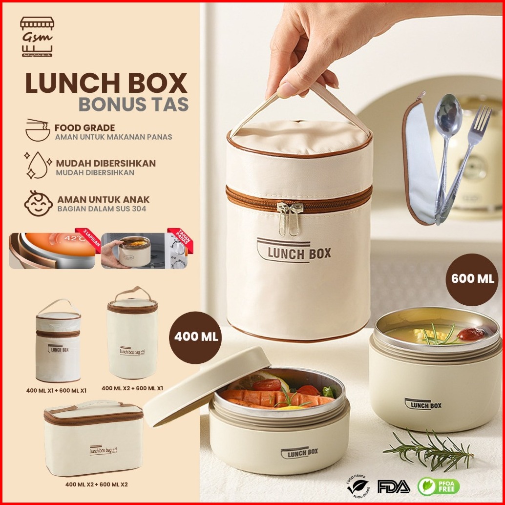 Gsm Kotak Makan 1 Set 304 Lunch Box Bento Portabel Tahan Bocor Gaya Jepang Round Stainless Lunch Box Cream Rice Containe