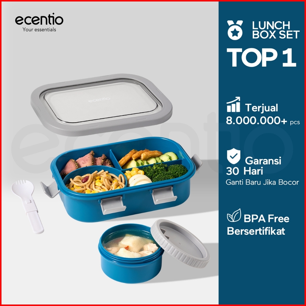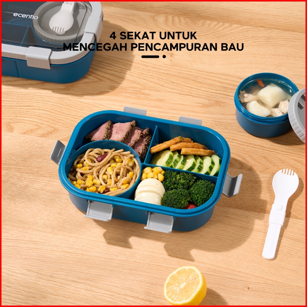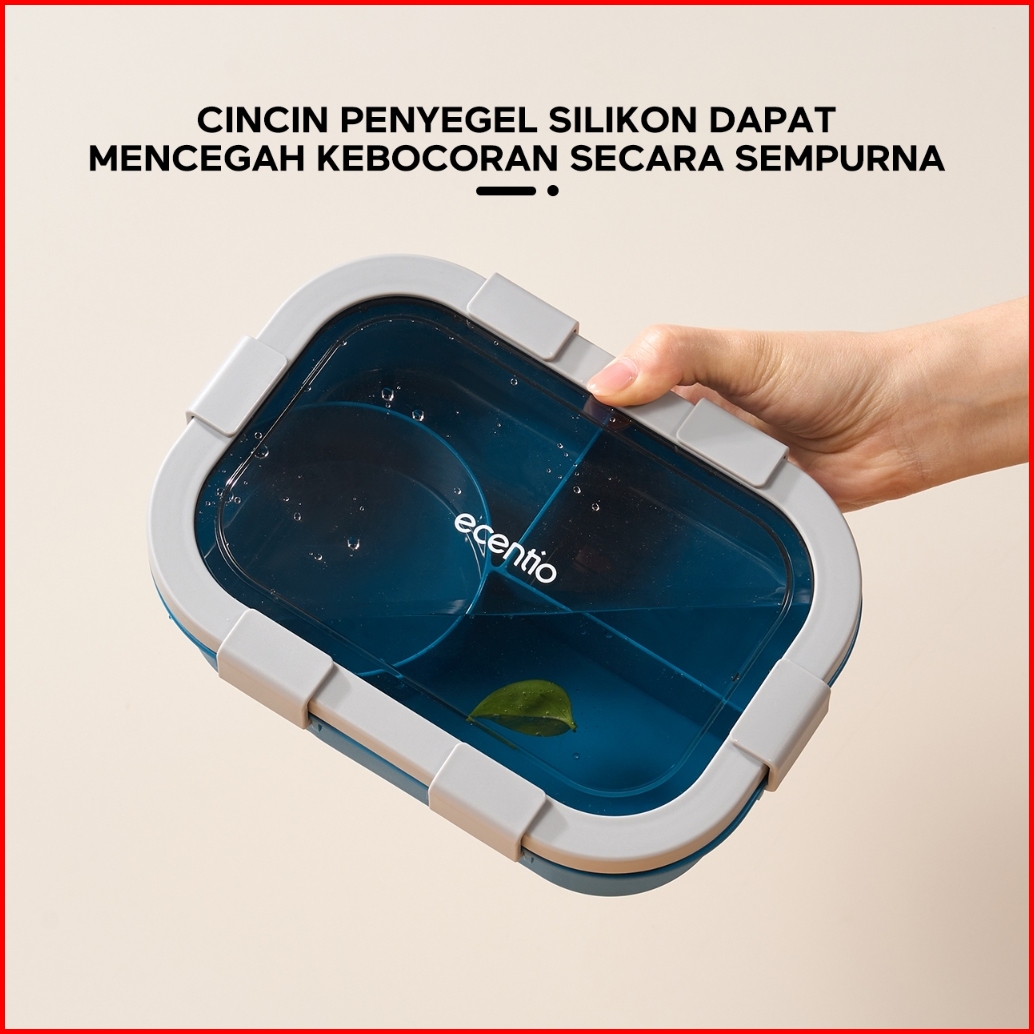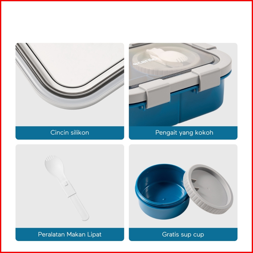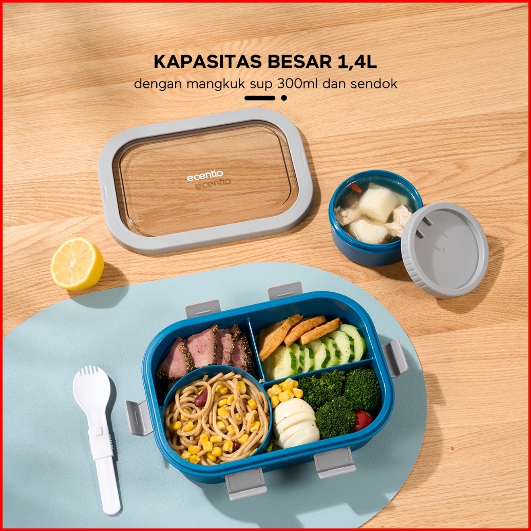 Ecentio Tempat Makan Kotak Makan Lunch Box Anti Tumpah 1.4l Mangkuk Sup Sendok Bpa Free