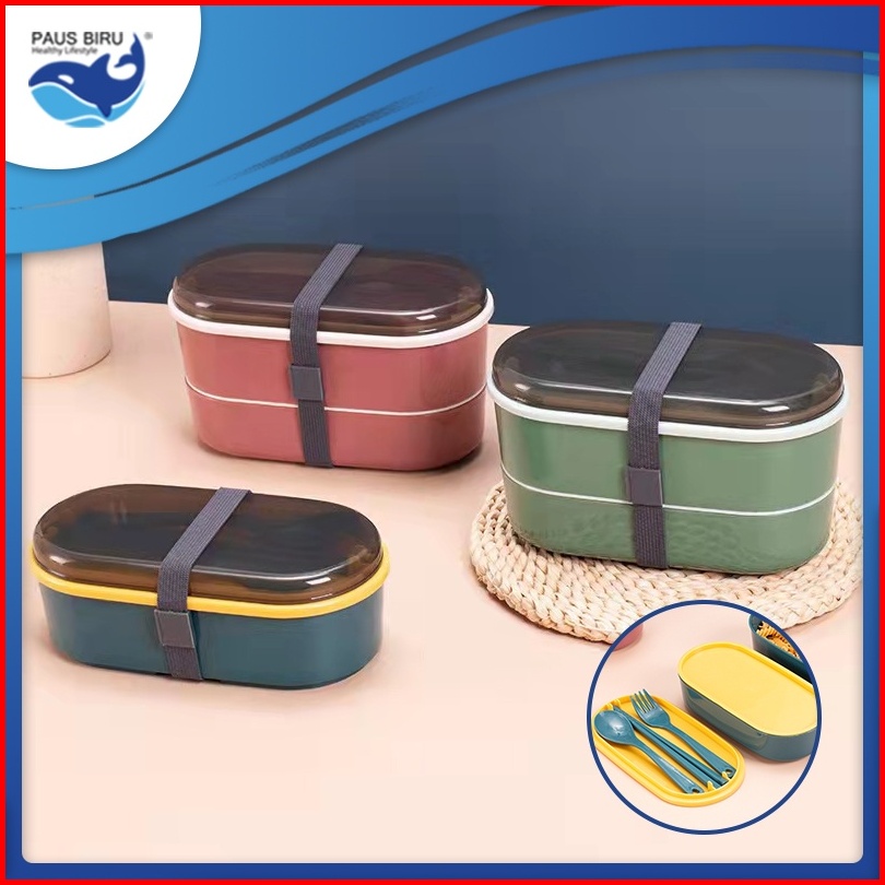 Paus Biru - Lunch Box Kotak Makan Tingkat Dengan Set Sendok Tempat Makan Nasi Wadah