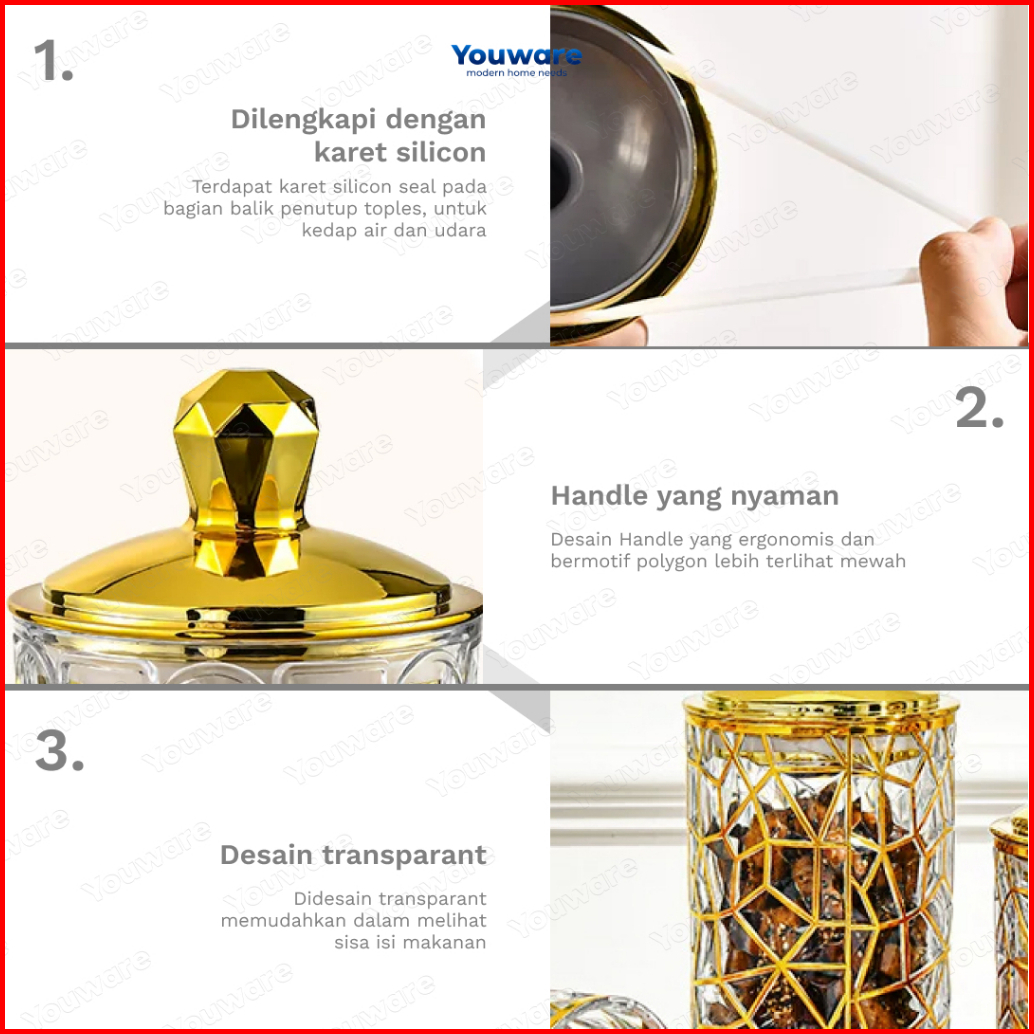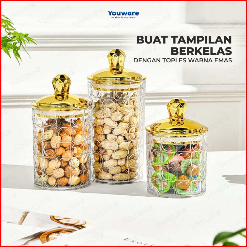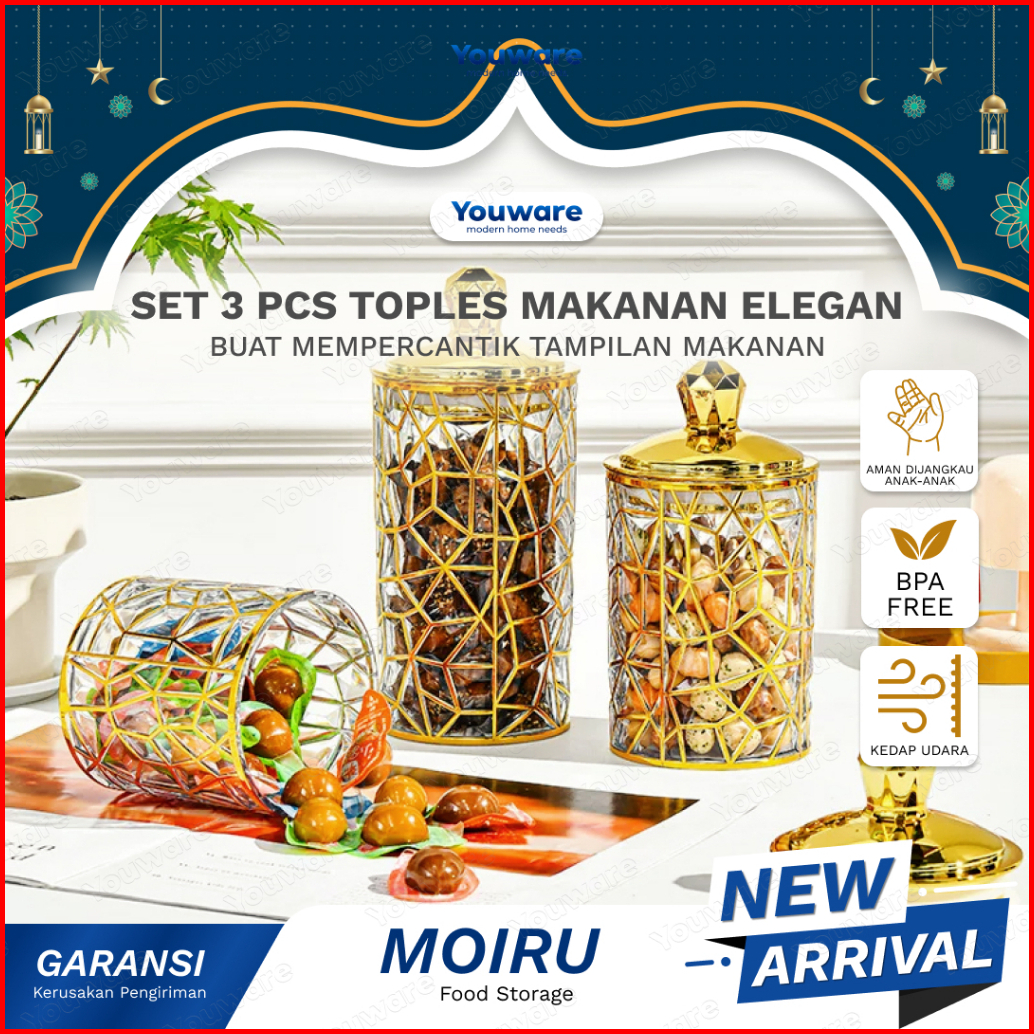 Youware - Moiru Toples Kue Lebaran 1 Set Isi 3 Pcs Aksen Mewah Wadah Snack Cemilan Makanan