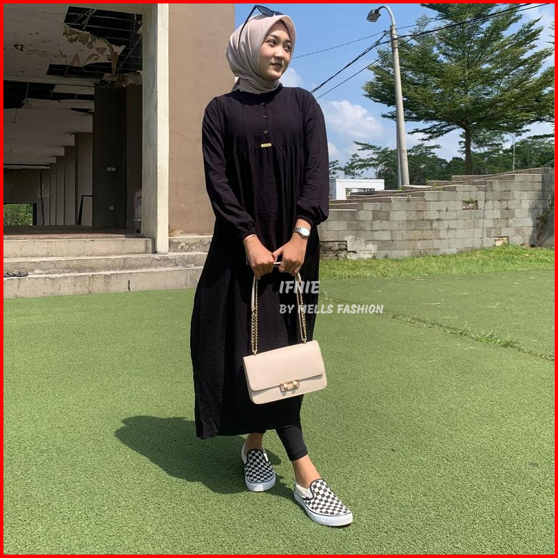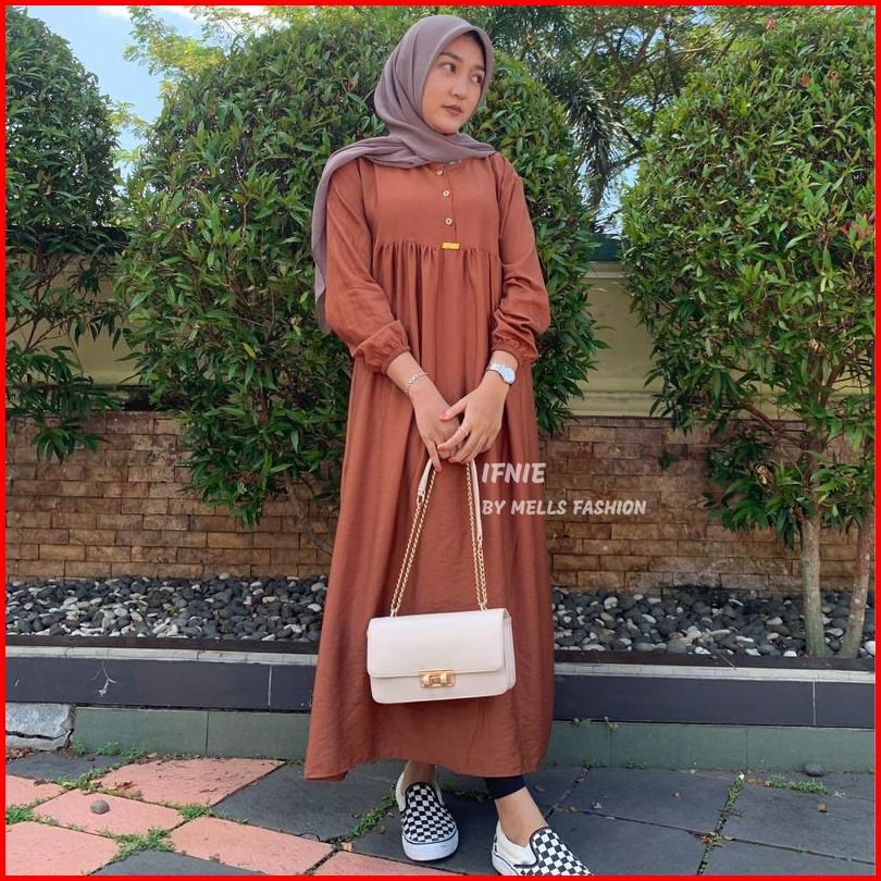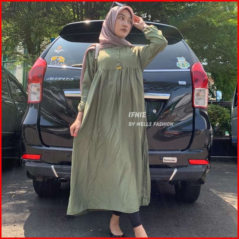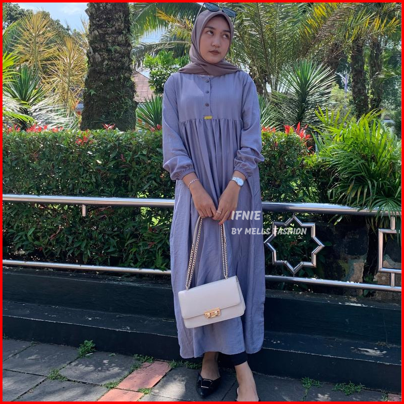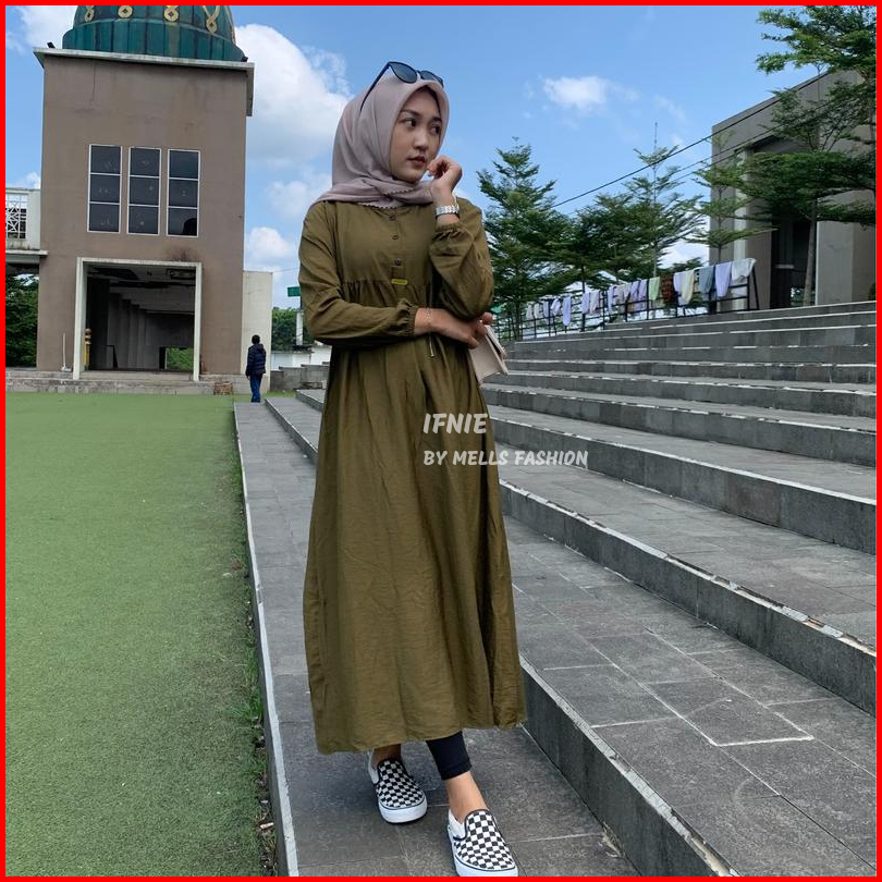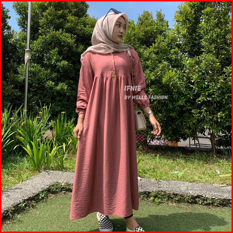 Ifnie Fashion Wanita Midi Dress Polo Linen Premium