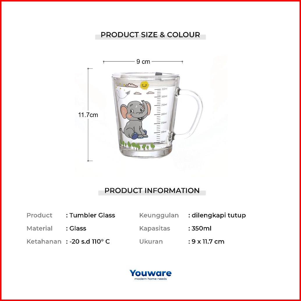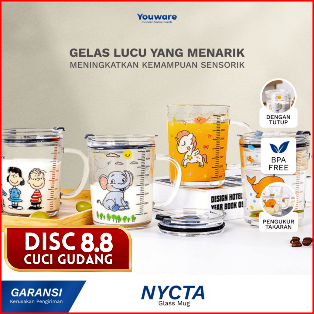 Youware - Nycta Gelas Aesthethic Minum Anak Bpa Free Dengan Sedotan Dan Anti Tumpah 350ml