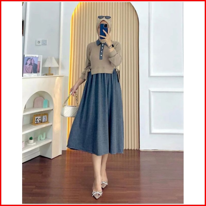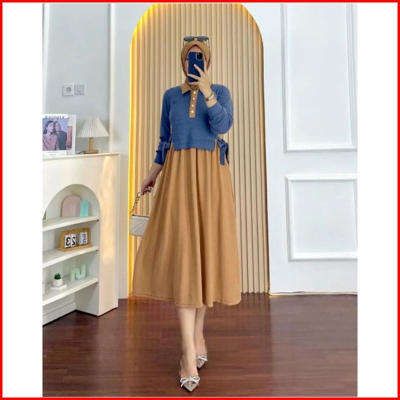 Maura Midi Dress Korean Style Gamis Viral Gamis Wanita Terkini Gamis Casual Terbaru 2024 Ik