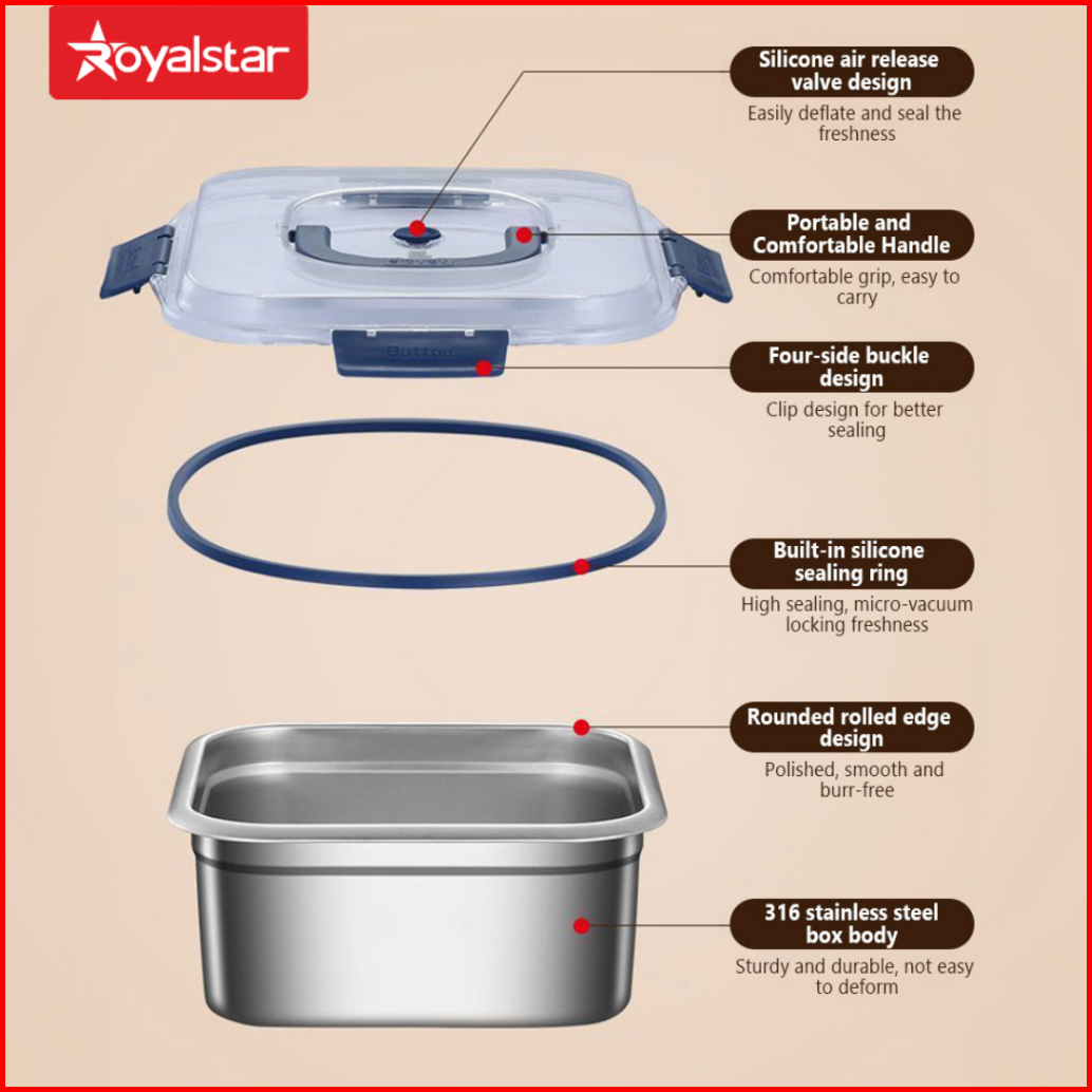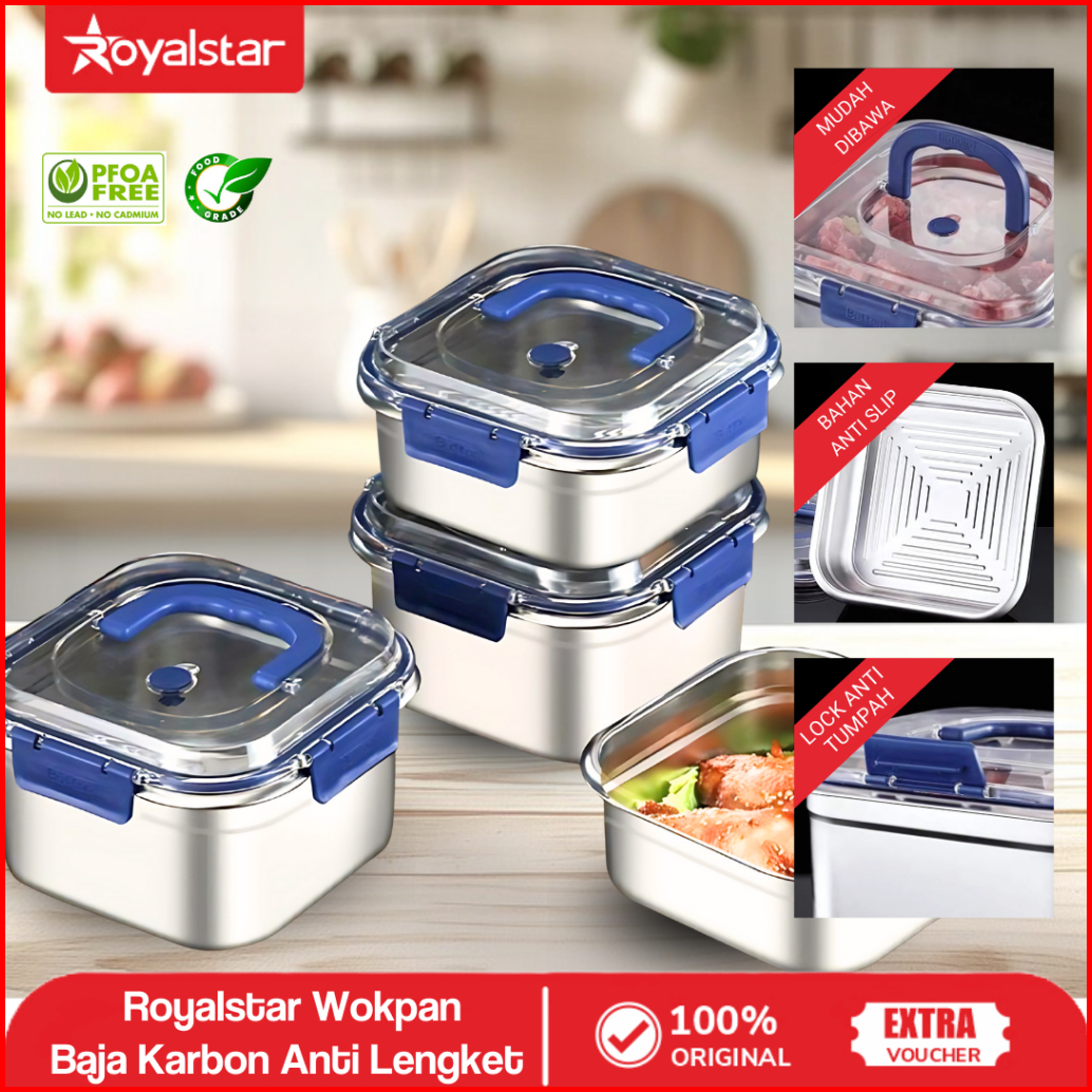 Royalstar Lunch Box Kotak Makan Stainless Steel Foodgrade Penutup Klip Anti Tumpah Tahan Panas