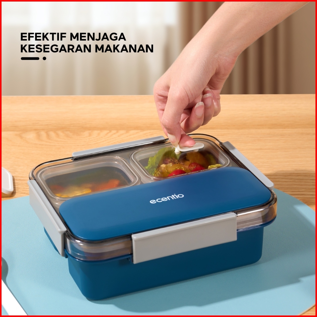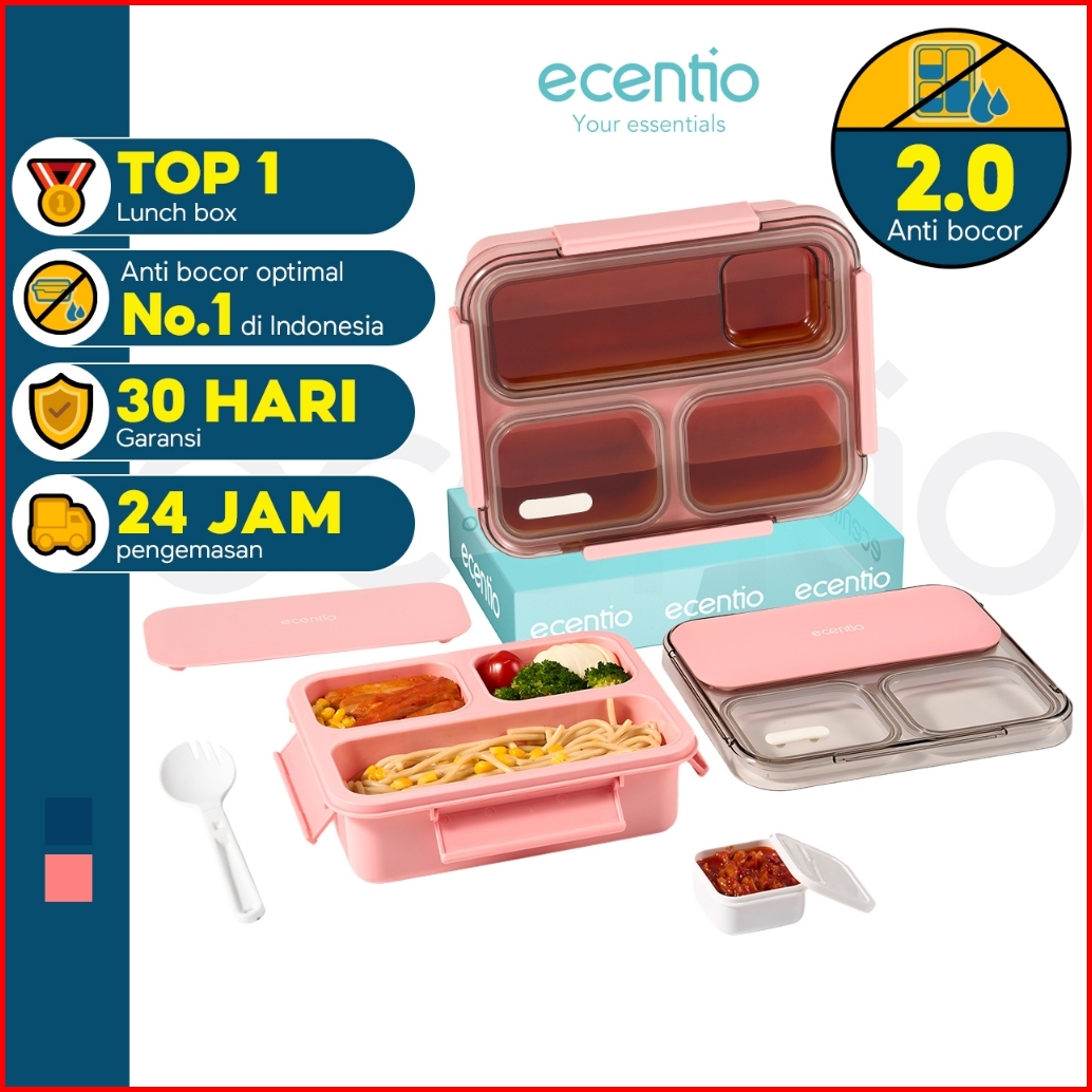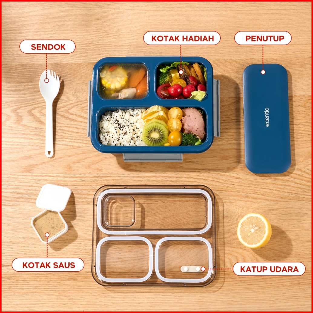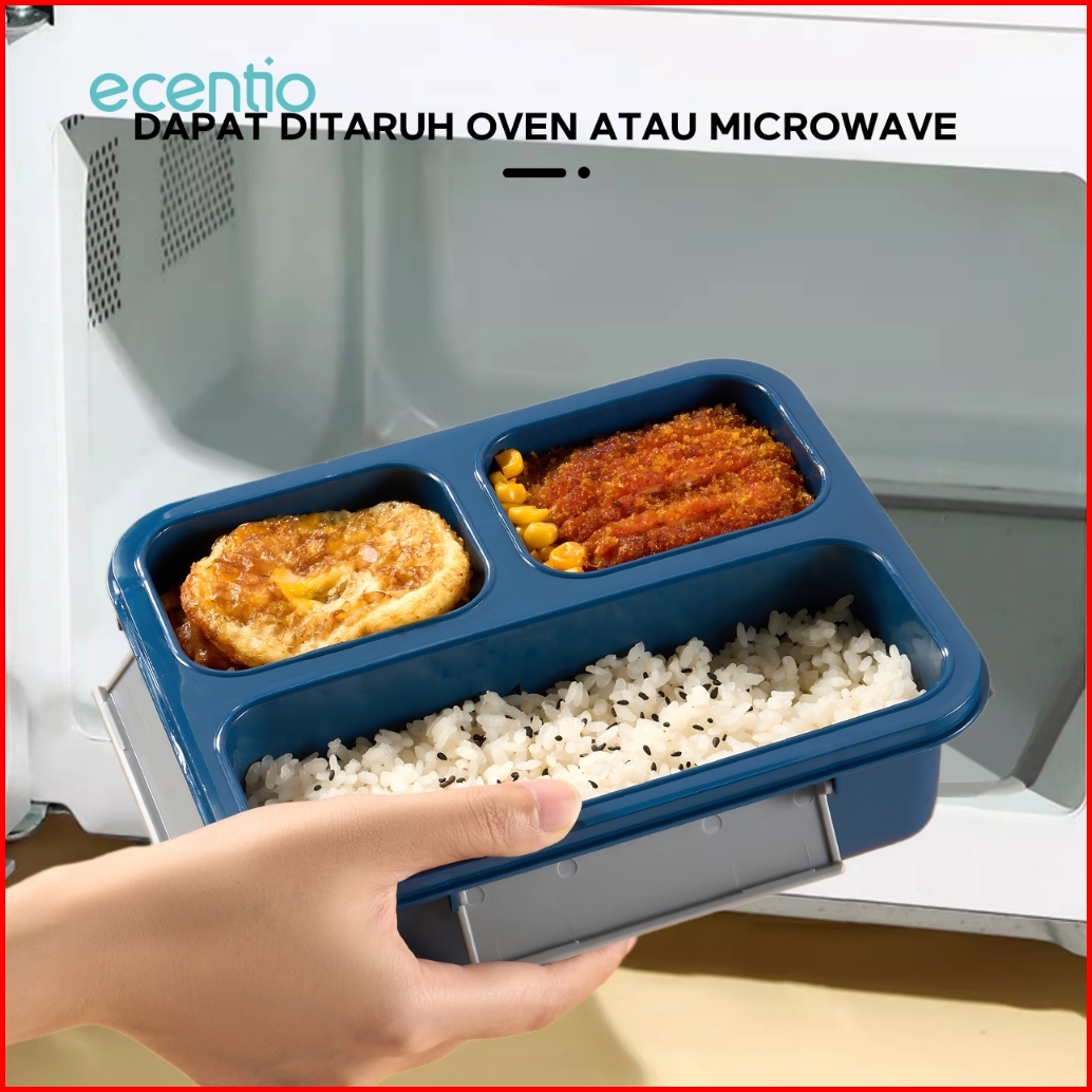 Ecentio Lunch Box Anti Tumpah 1150ml Sekat 3 Dengan Kotak Sauce Bpa Free Tempat Makan